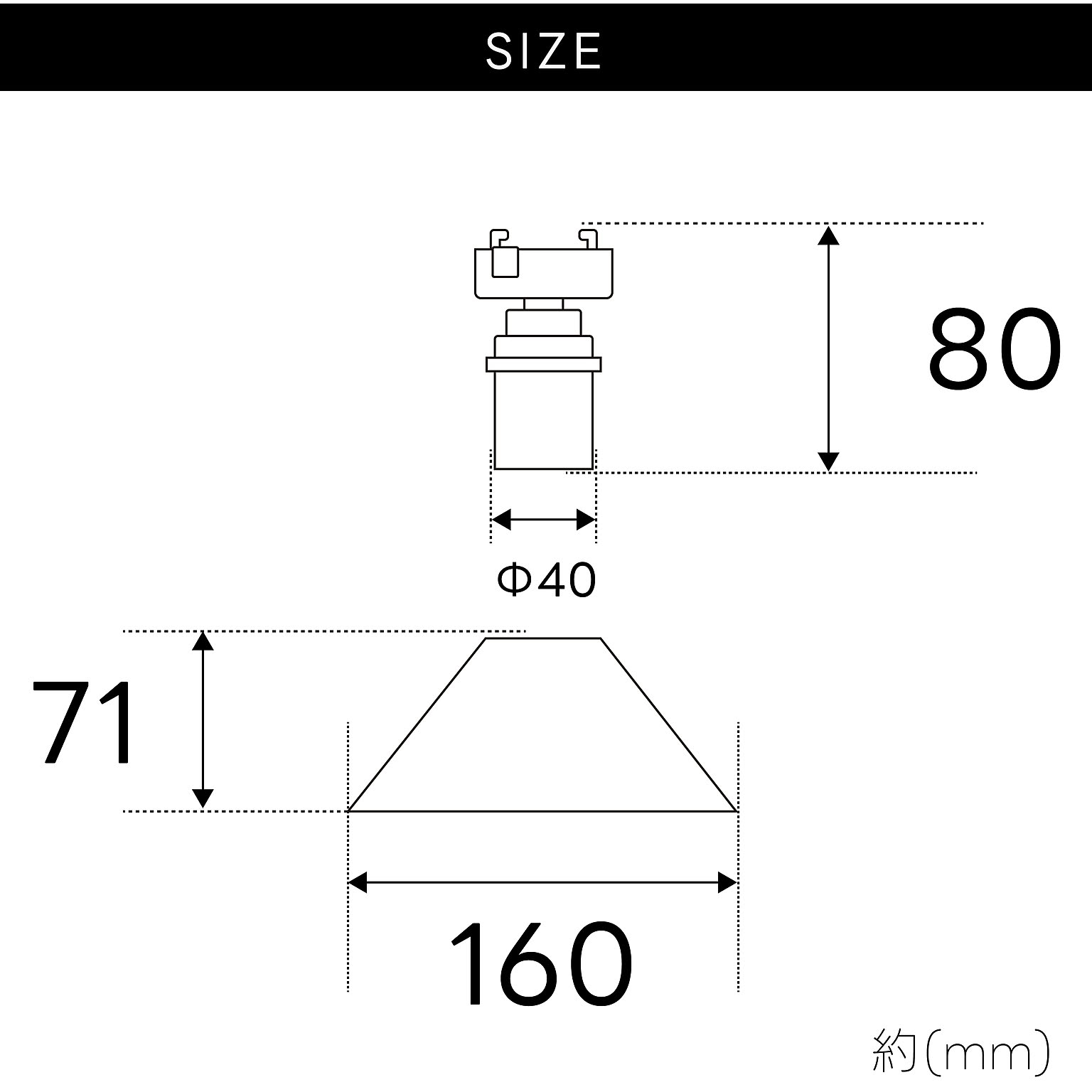 シェード:(約)Φ160×高さ71mm 器具本体:(約)Φ50×高さ80mm フランジカバーSTYLE:(約)Φ160×高さ80mm シェードSTYLE:(約)Φ160×高さ130mm