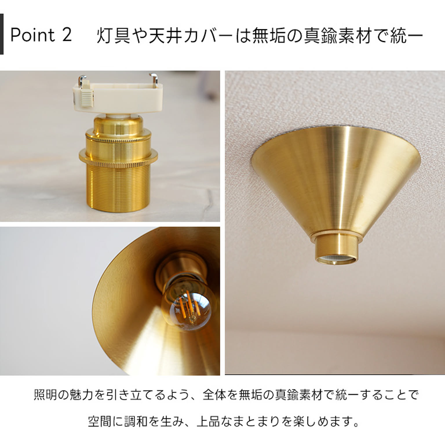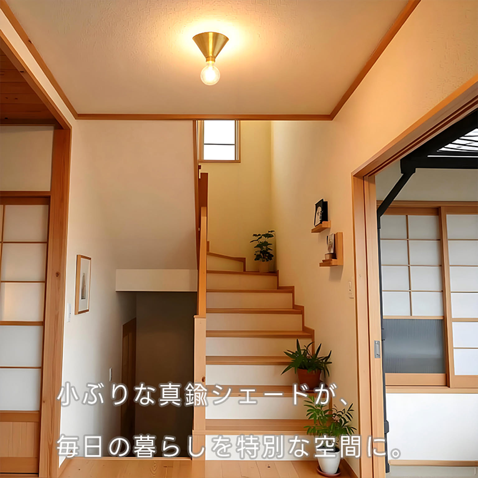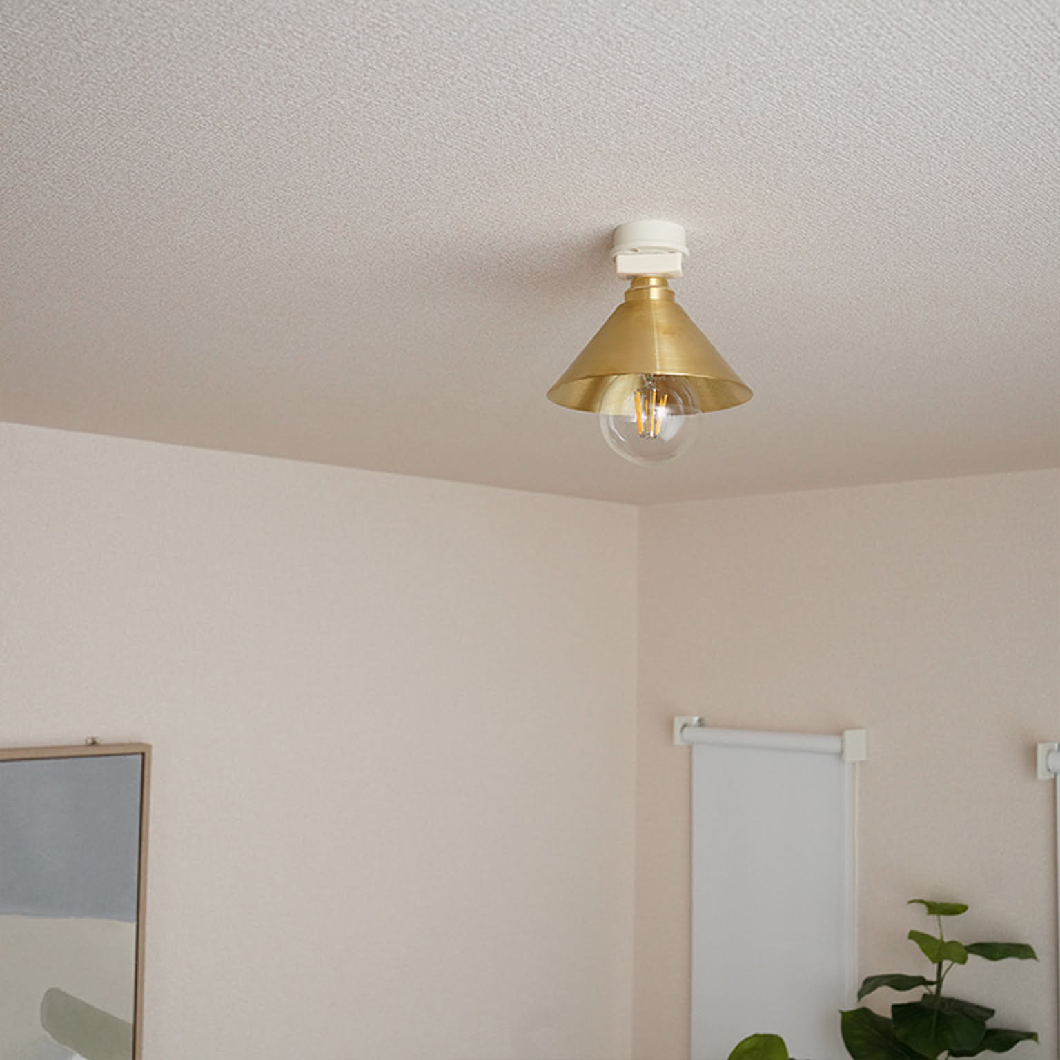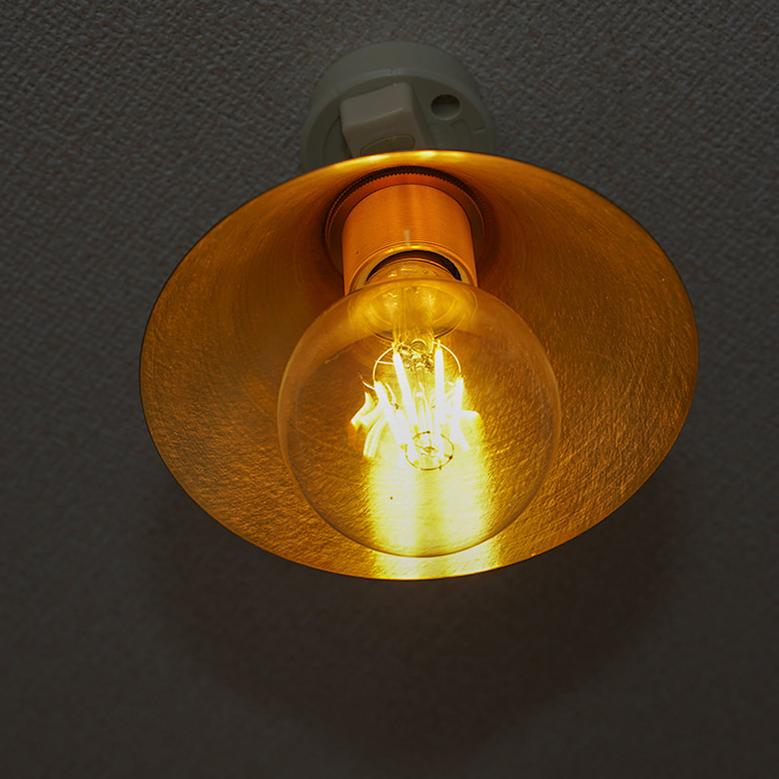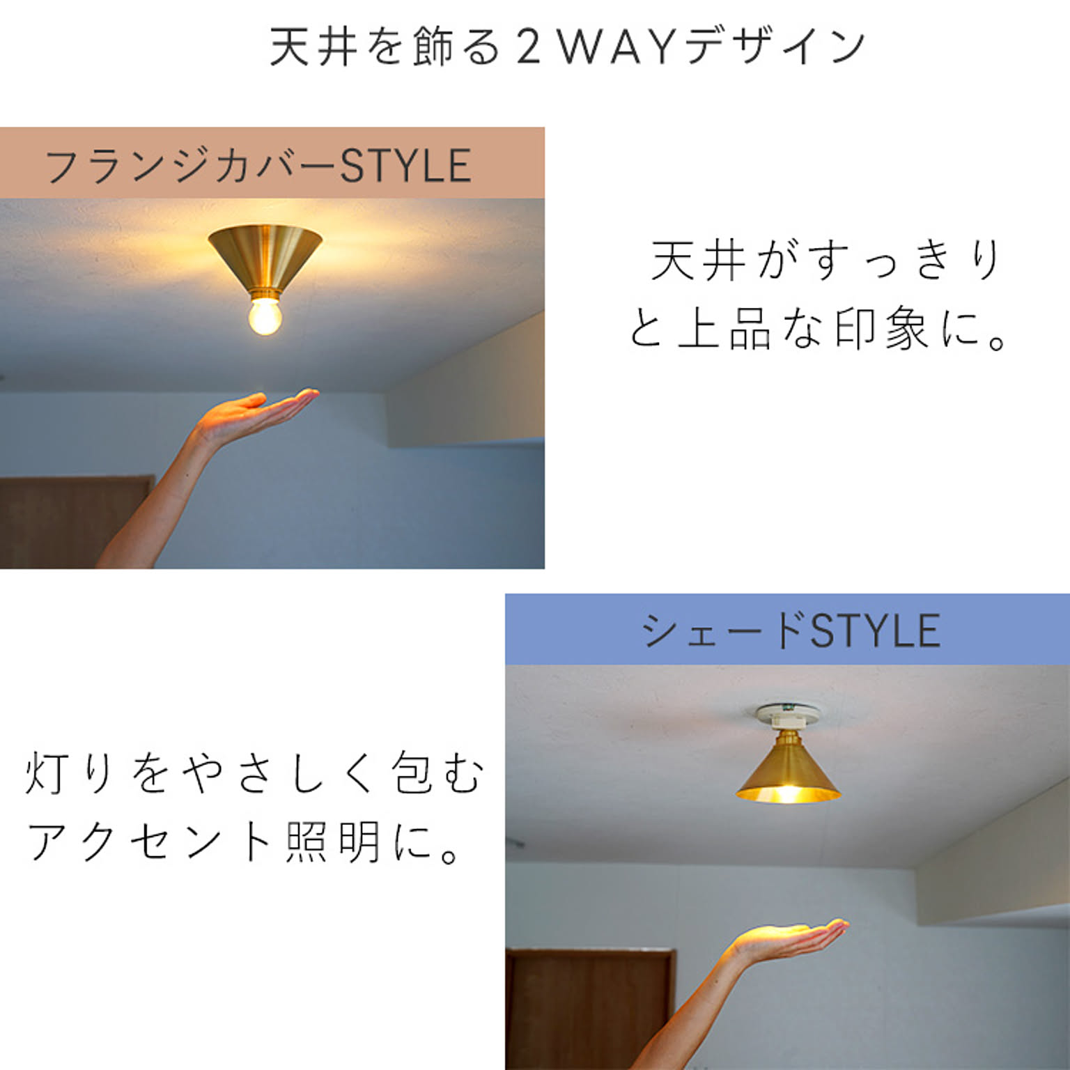【商品仕様】 サイズ(mm) シェード:(約)Φ160×高さ71mm 器具本体:(約)Φ50×高さ80mm フランジカバーSTYLE:(約)Φ160×高さ80mm シェードSTYLE:(約)Φ160×高さ130mm 重量(g) シェード:(約)145g 器具本体:155g 材質:真鍮 シェード カラー:ゴールド 仕様 取付方法:シーリングプラグ 定格電圧(周波数):AC100V (50/60Hz) 対応電球:口金/E26 15Wまで(LED電球別売り) 点灯方法:壁スイッチ