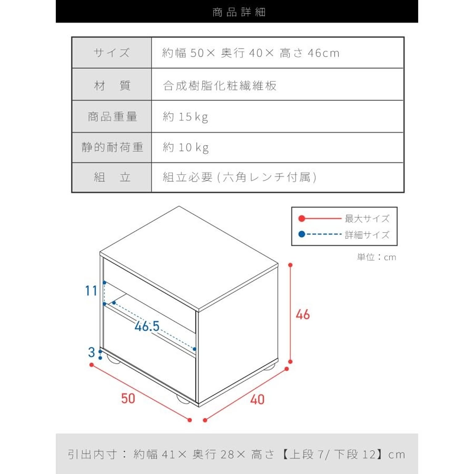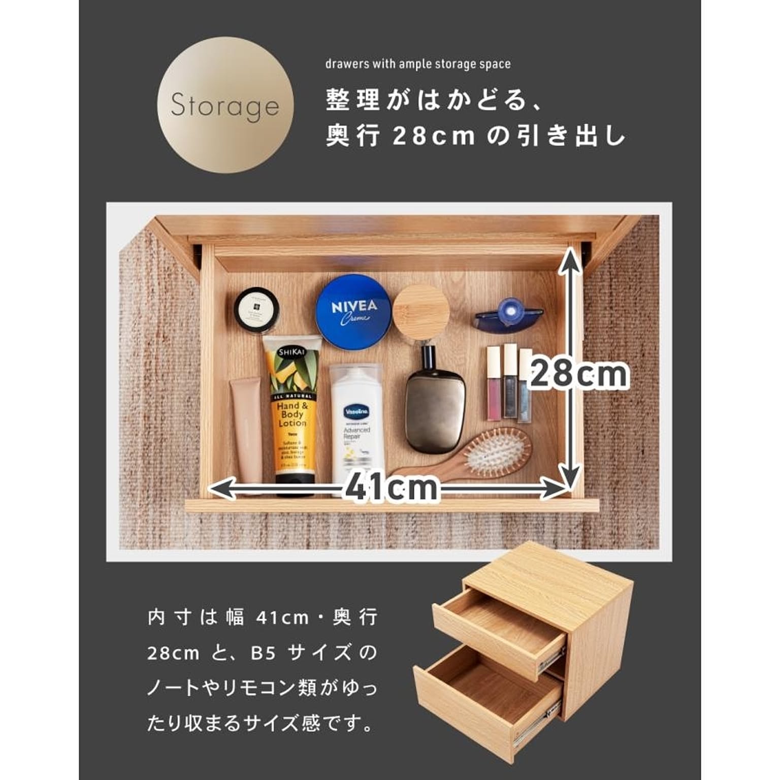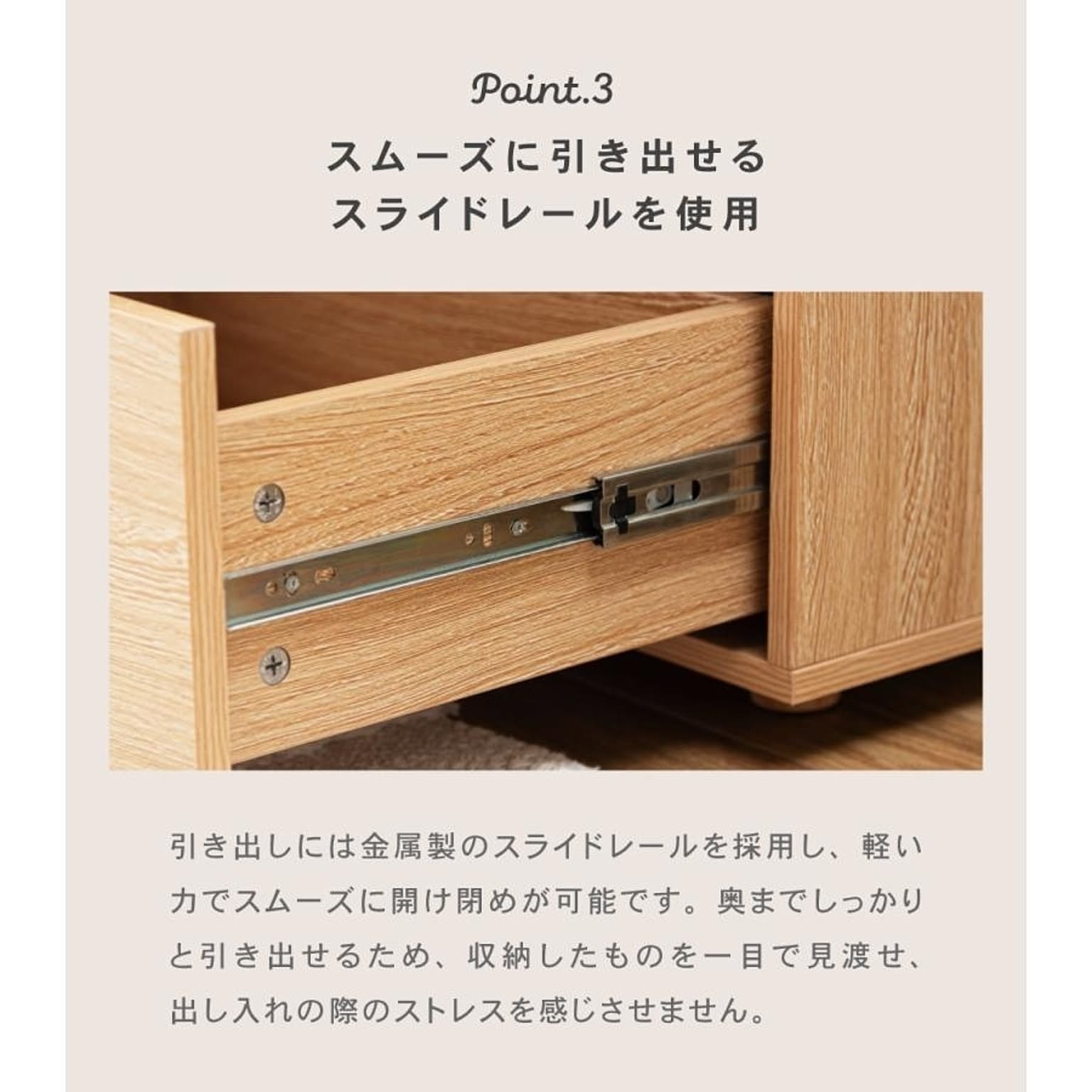引き出しには金属製のスライドレールを採用し、軽い力でスムーズに開け閉めが可能です。