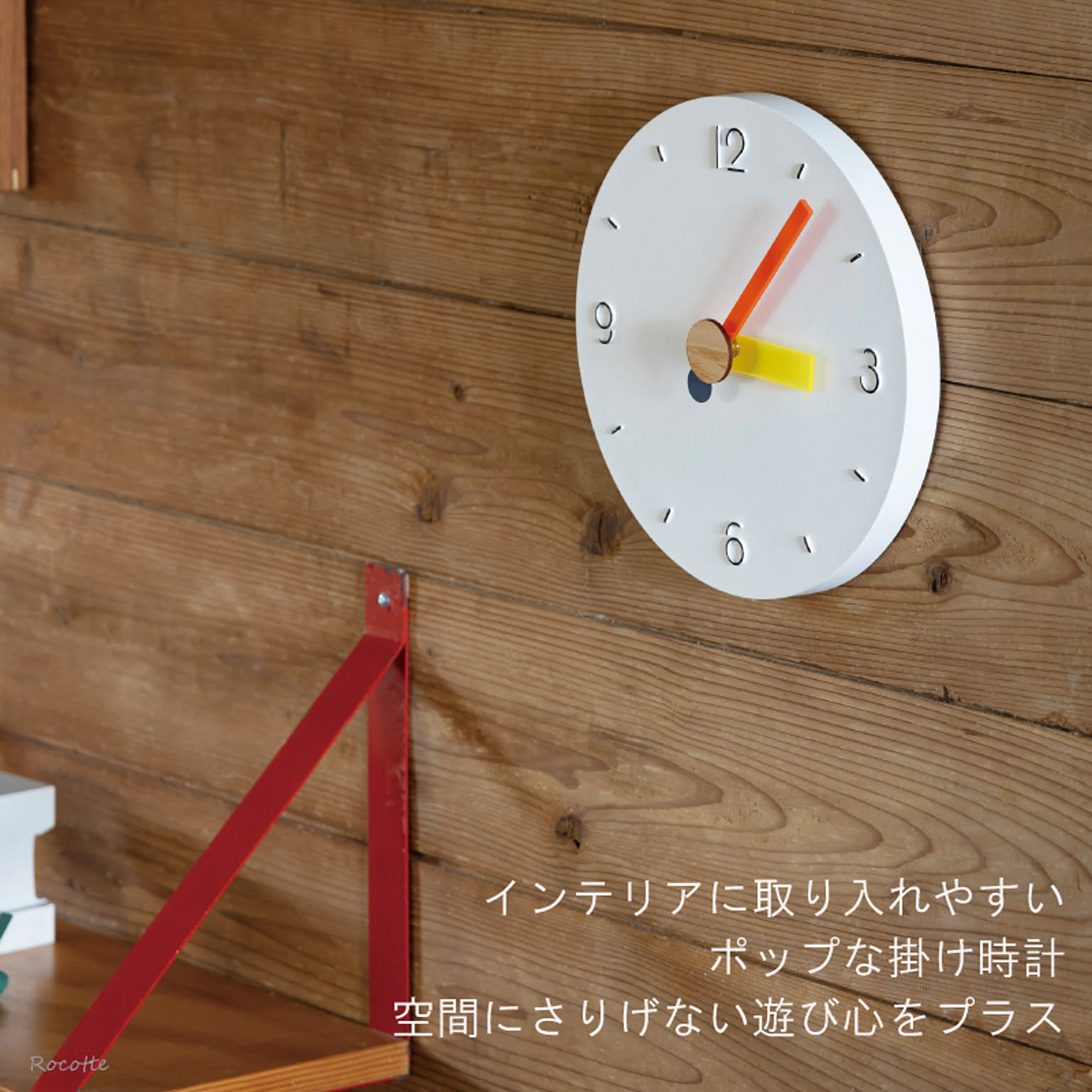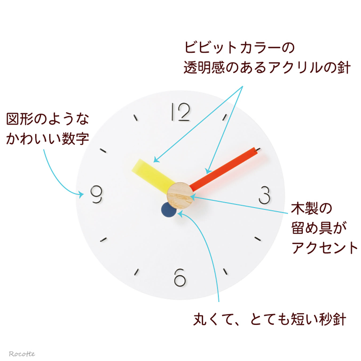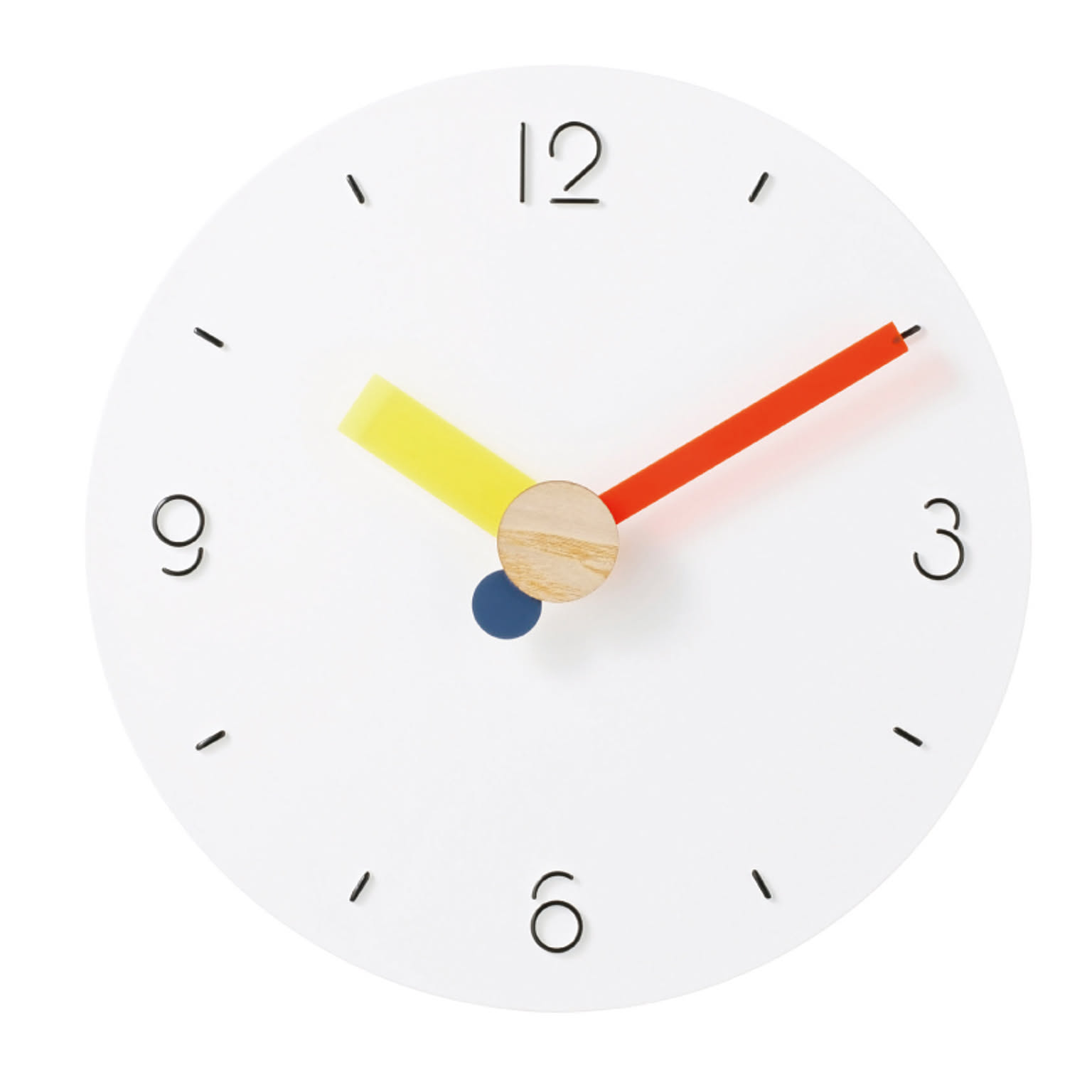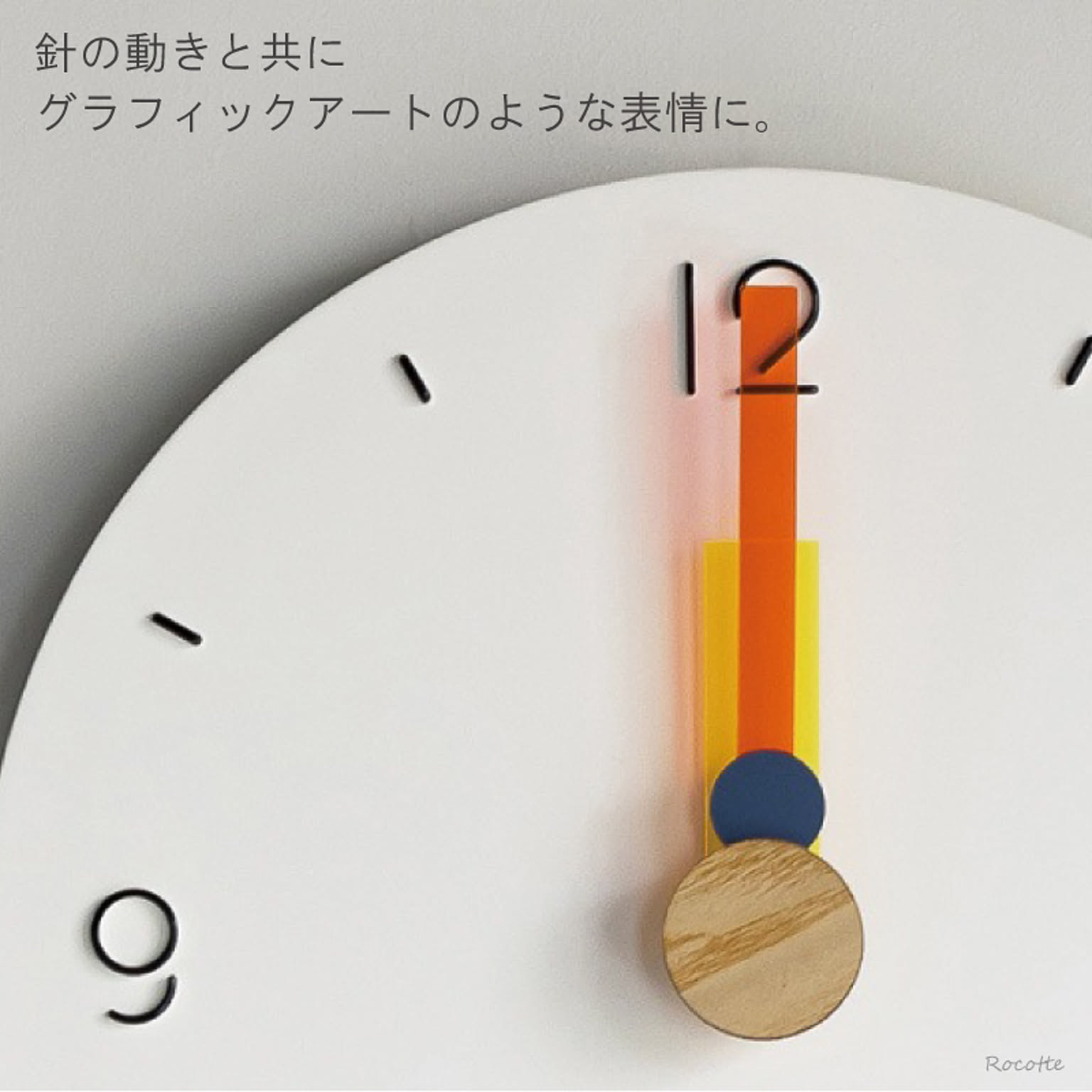 針が進むたび、色と形が重なり合い、空間に遊び心を添えます。
