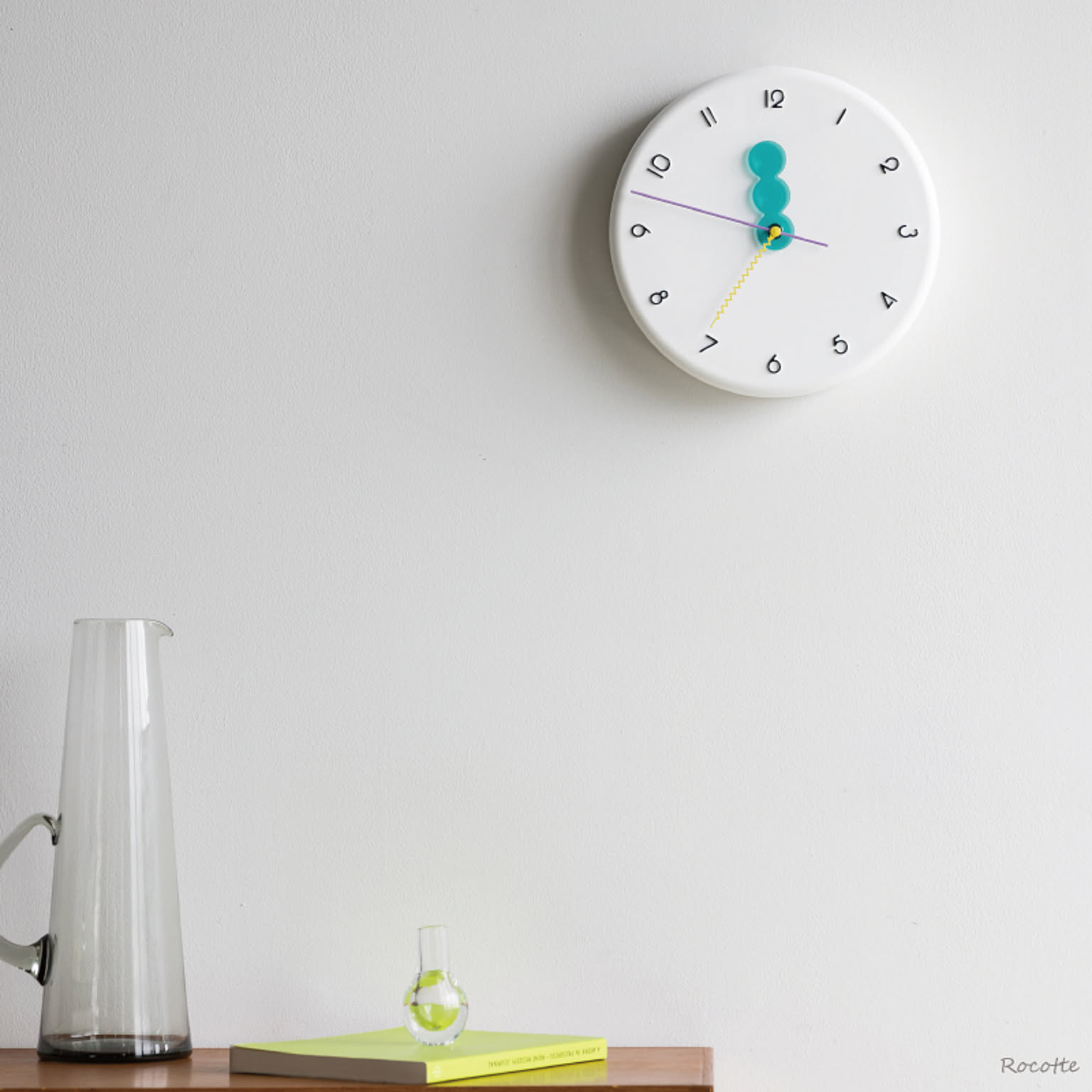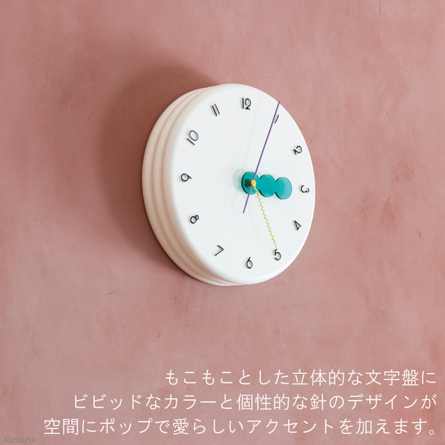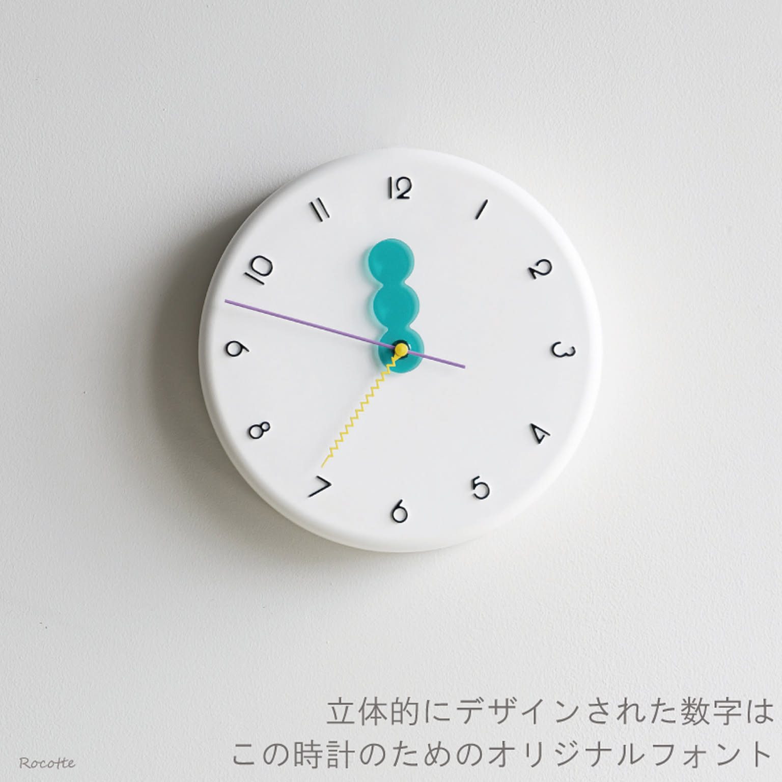 もこもことした立体的な文字盤が目を引く掛け時計。