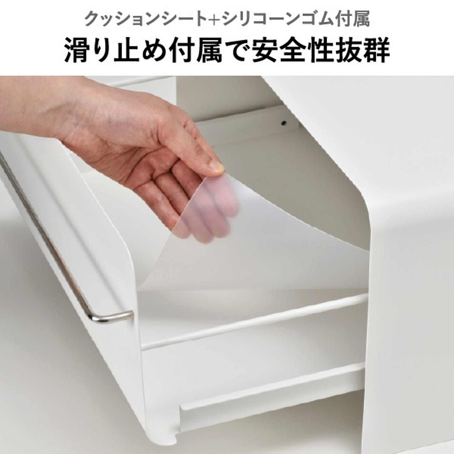 引き出し収納としての完成度が高く、上にトースターを置ける省スペース設計も魅力。