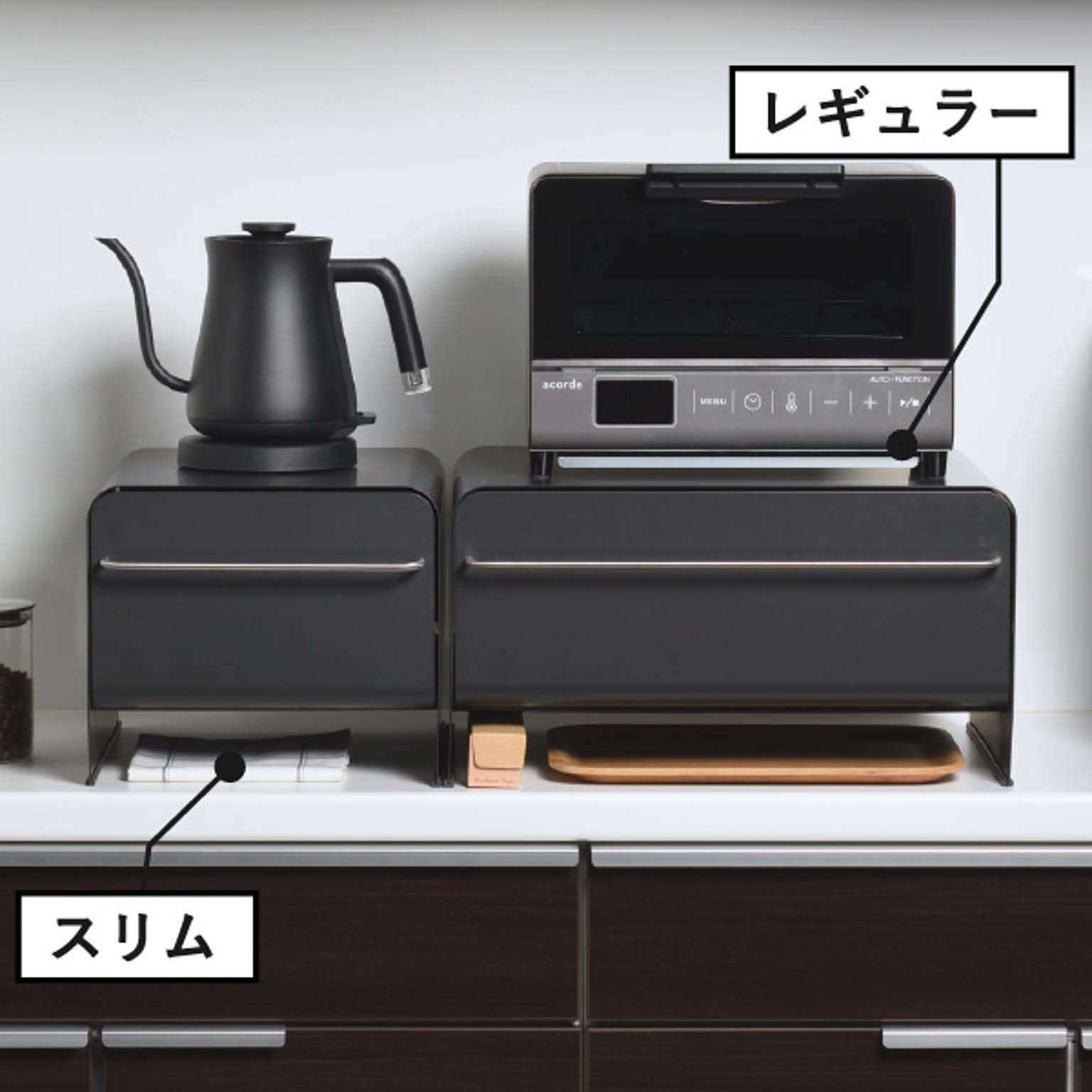 レギュラータイプはトースターまわりでごちゃつきがちなアイテムをまとめやすく、