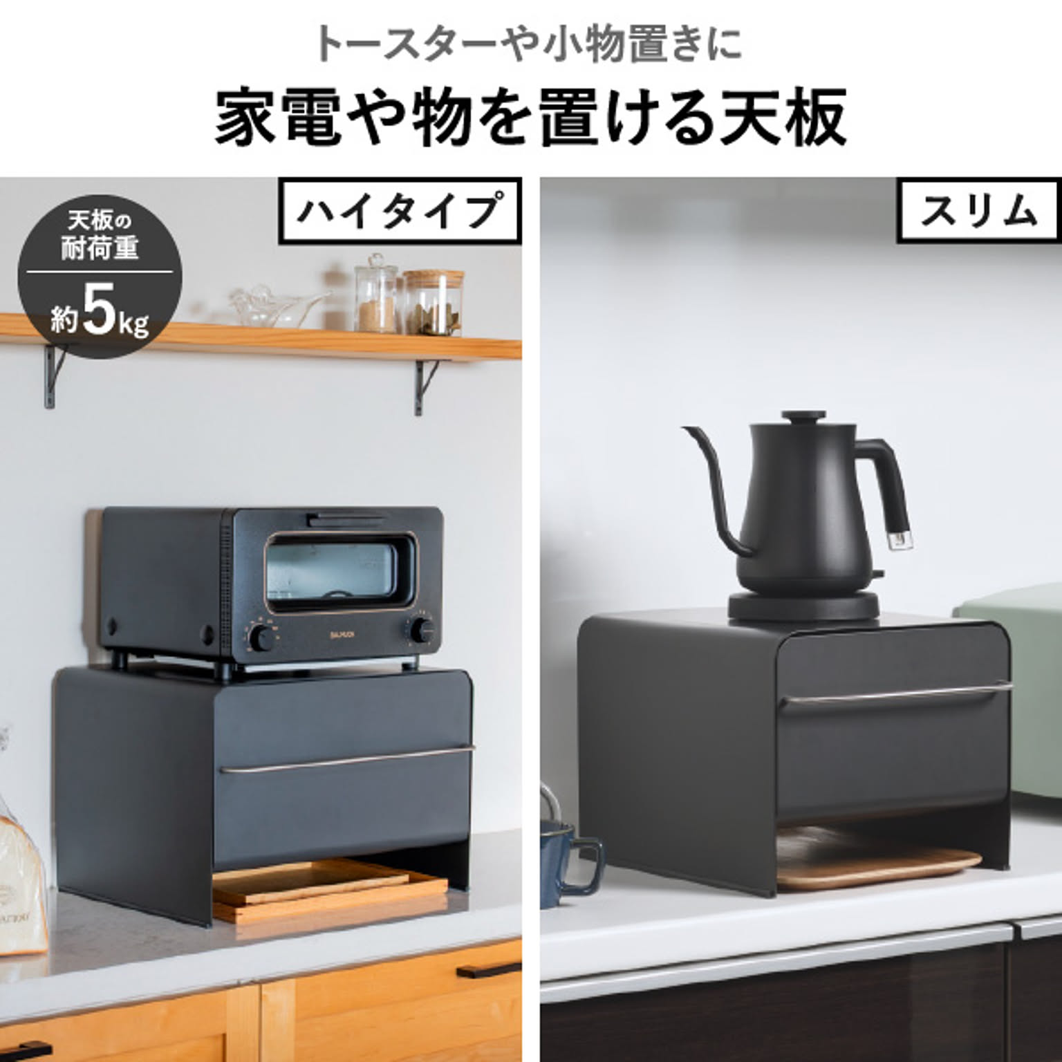 フラット仕様の天板は耐荷重5kgで、トースターラックとしても利用可能。