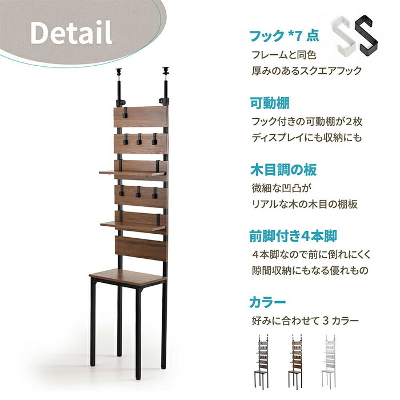 引っかけ棚:約5kg(1枚につき)