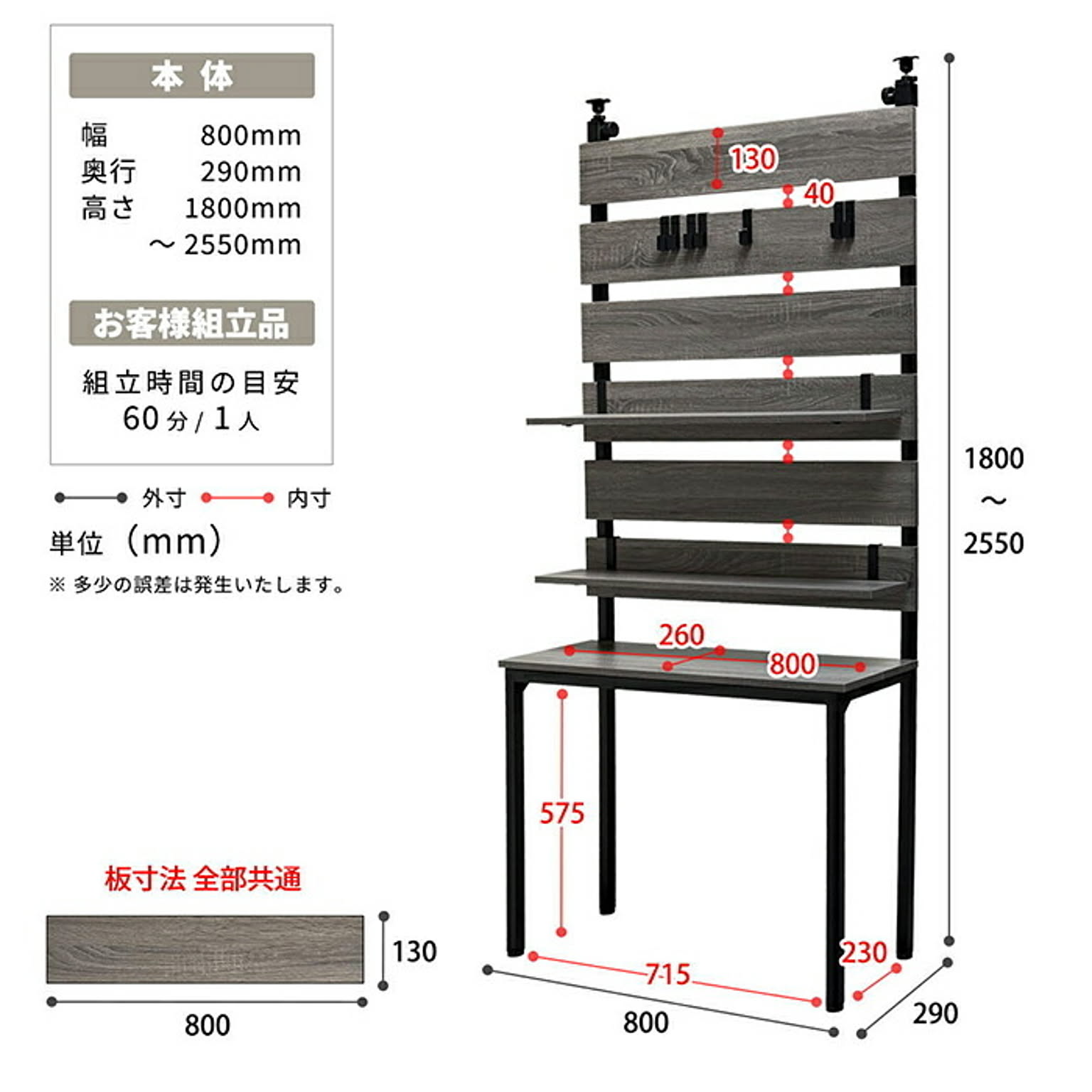 壁面収納ラック 組立式 WALLE ONLS0384 幅800x奥行290x高さ2550mm B.Bファニシング