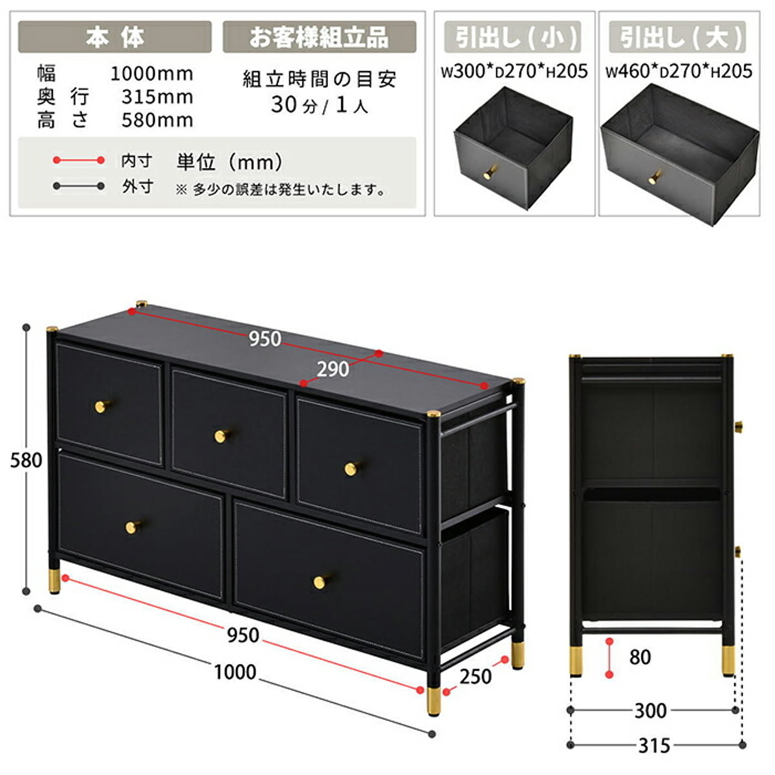 商品サイズ:幅 1000 × 奥行 315 × 高さ 580 mm