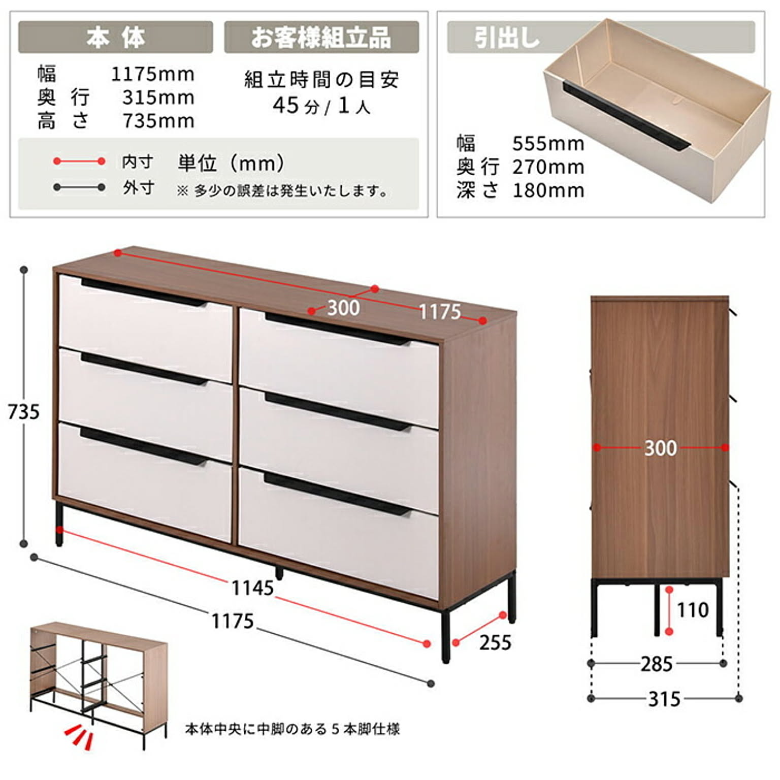 商品サイズ:幅 1175 × 奥行 315 × 高さ 735 mm