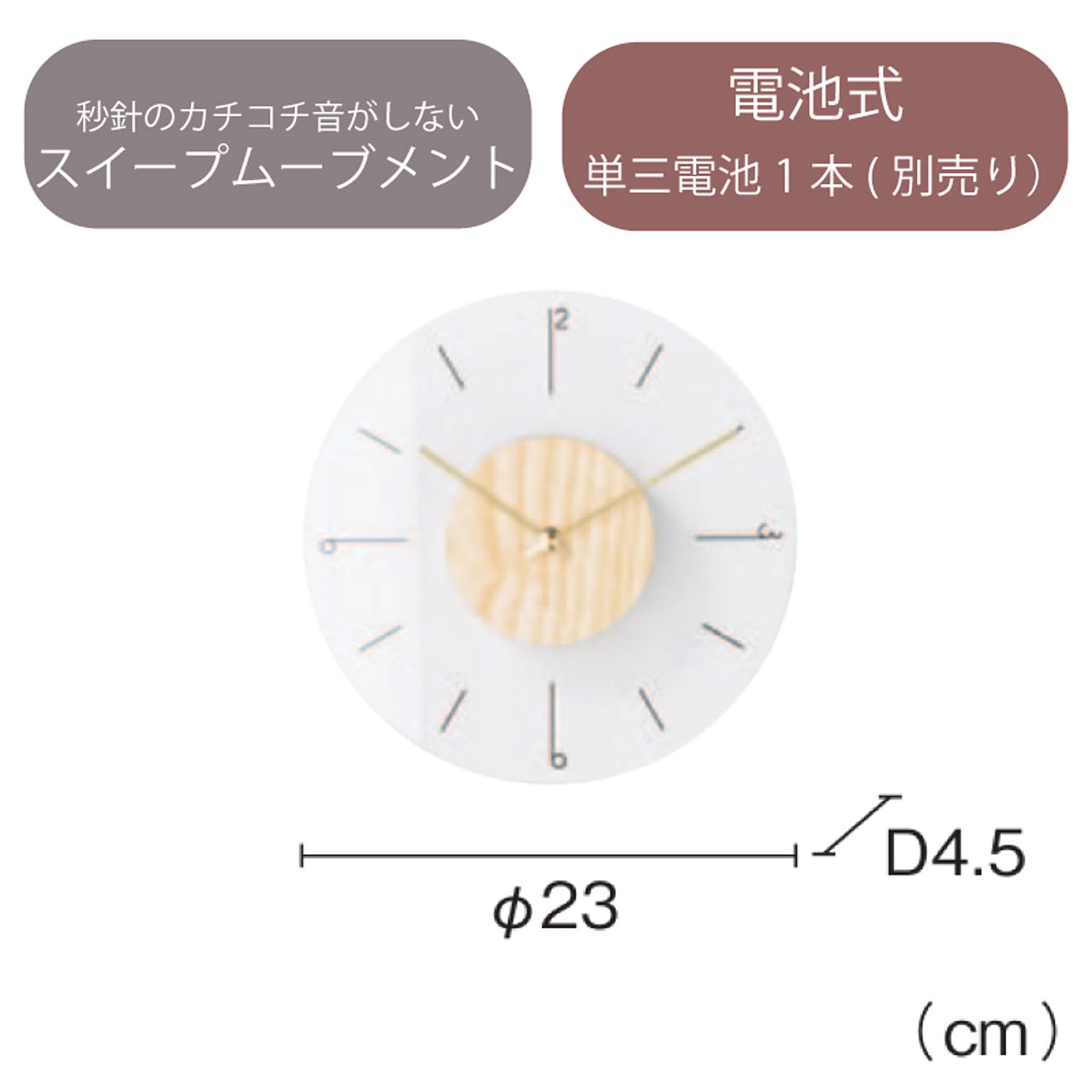 【電池プレゼント】インターフォルム 掛け時計 連続秒針 CL4567 オーブリー
