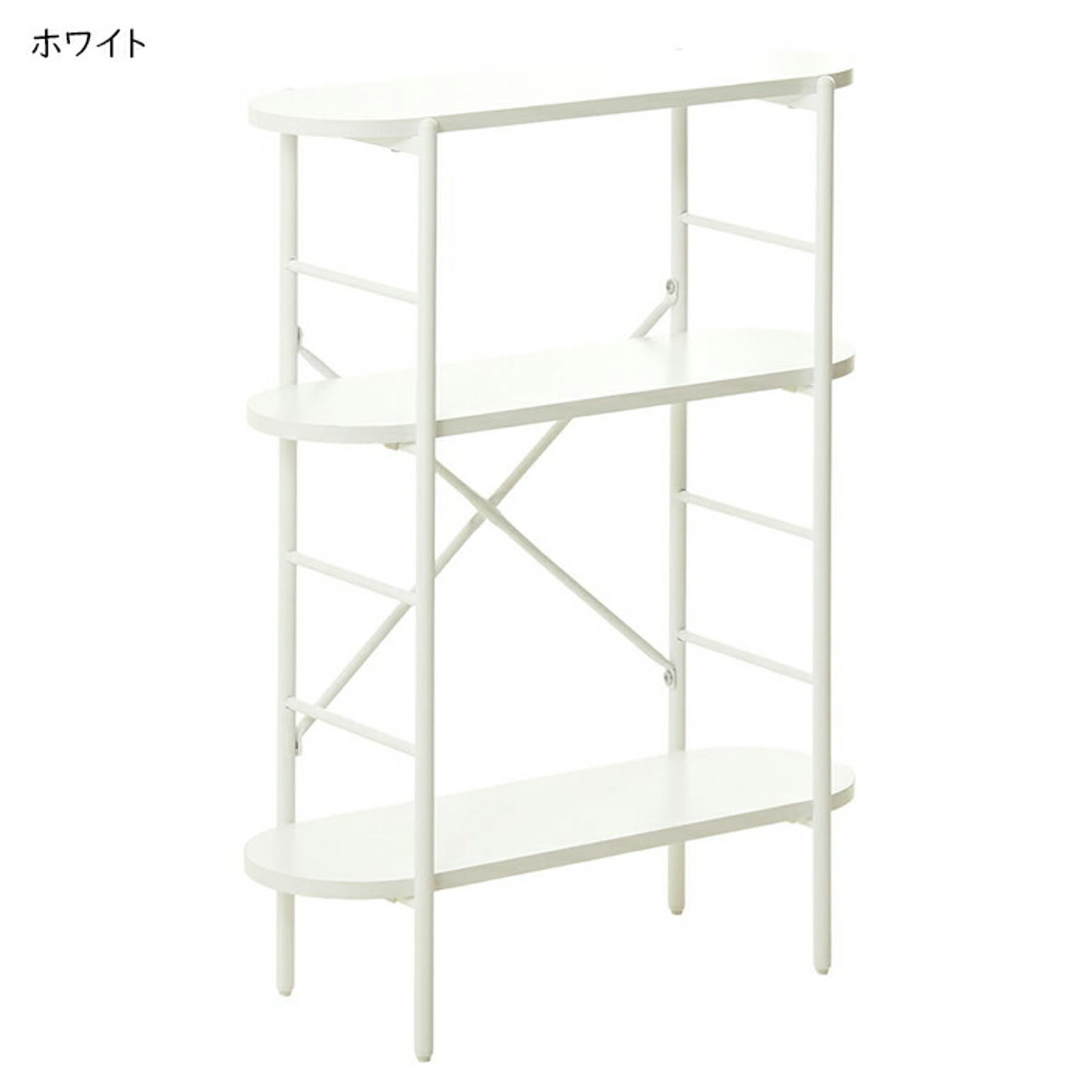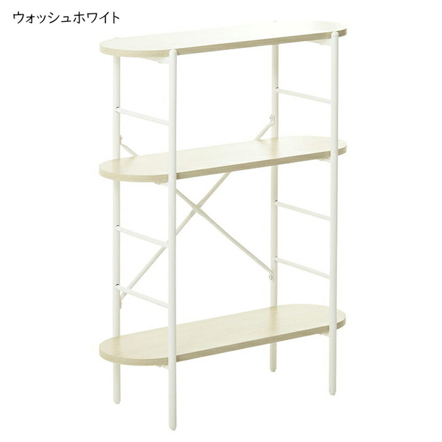 丸みのある天板と棚板が優しい印象を与えるコンソールテーブル。奥行23cmで、玄関や廊下にもすっきり置けます。棚板は工具不要でパチンと簡単に着脱でき、高さを自由に調節可能。飾り棚やちょっとした収納にも最適です。