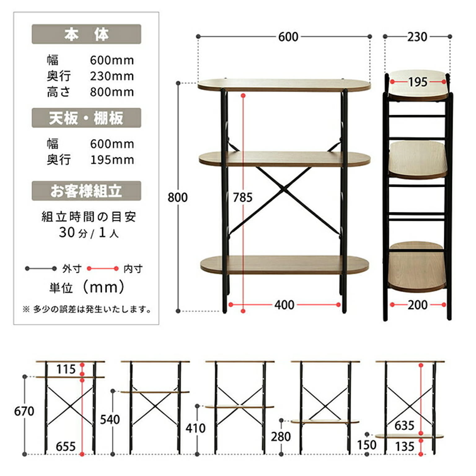 商品サイズ:幅 600 × 奥行 230 × 高さ 800 mm