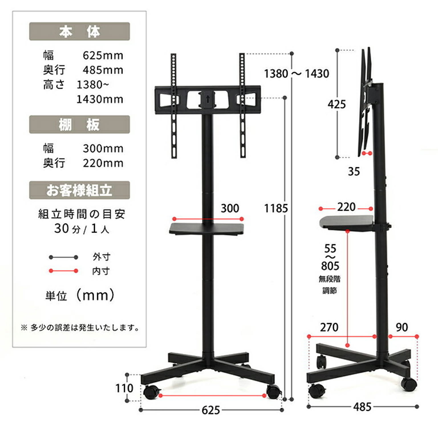 商品サイズ:幅 625 × 奥行 485 × 高さ 1430 mm