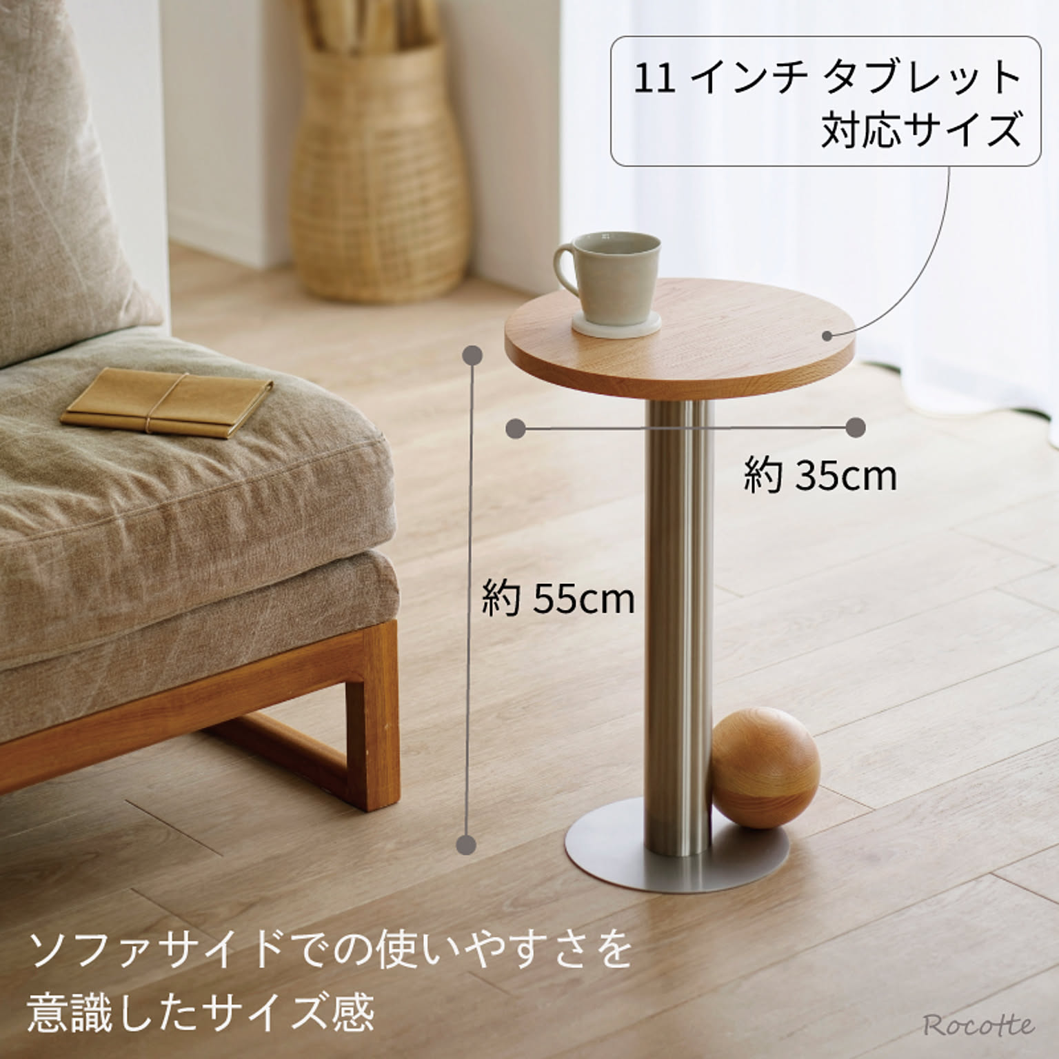 天板は直径35cmで、飲み物やリモコン、11インチタブレットが置ける実用サイズ。