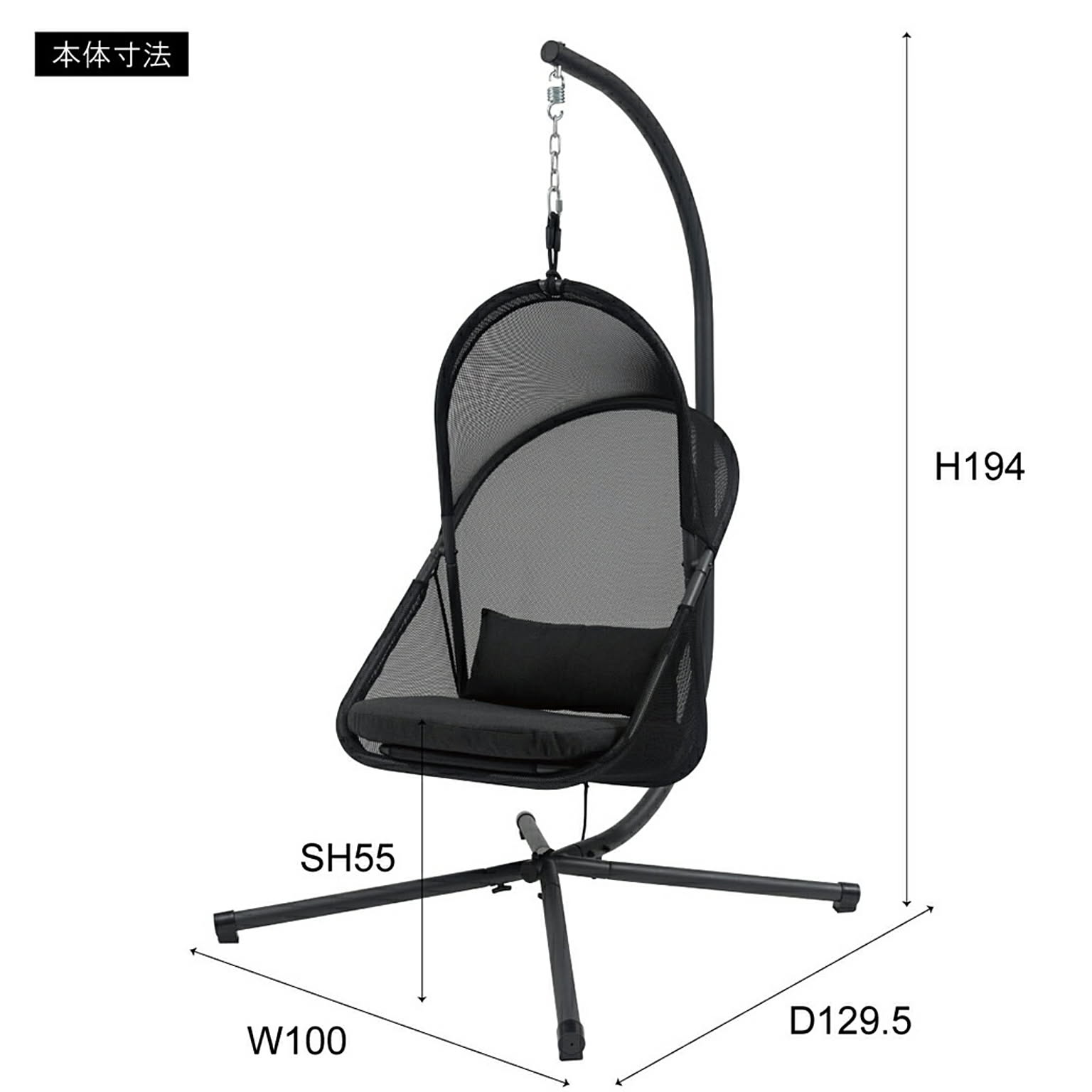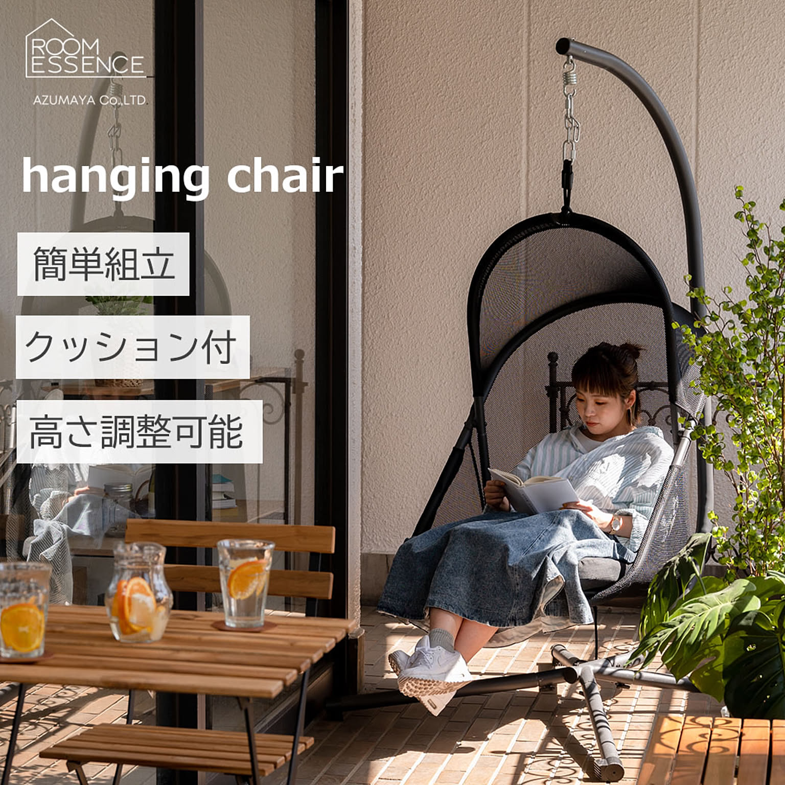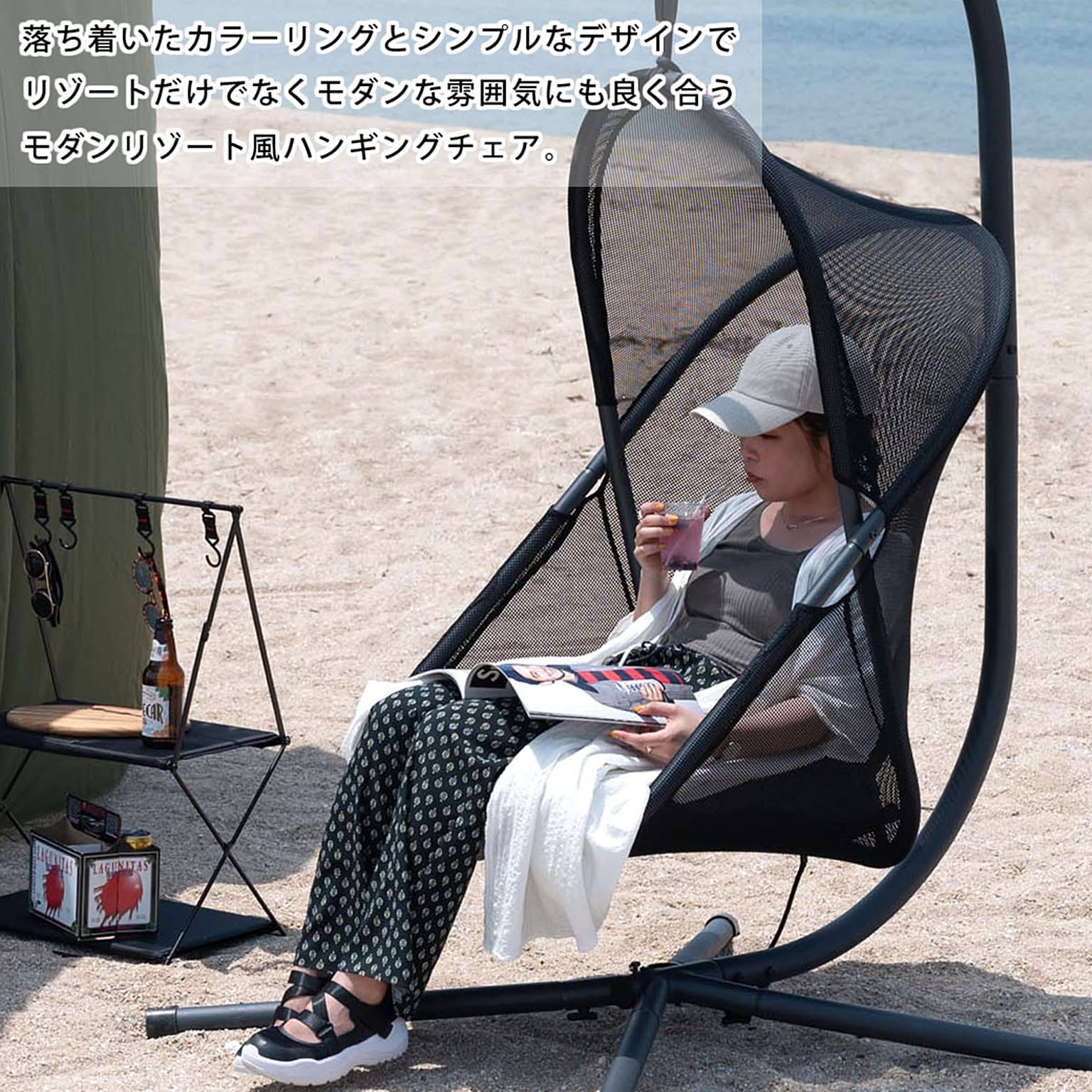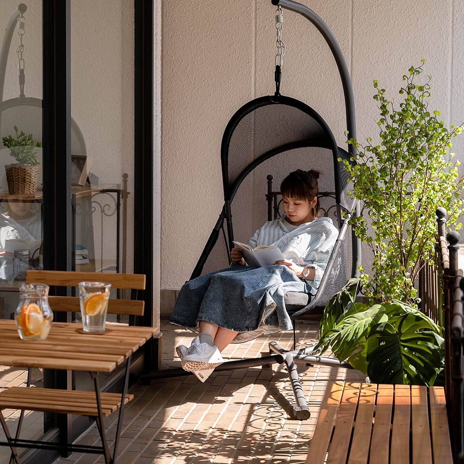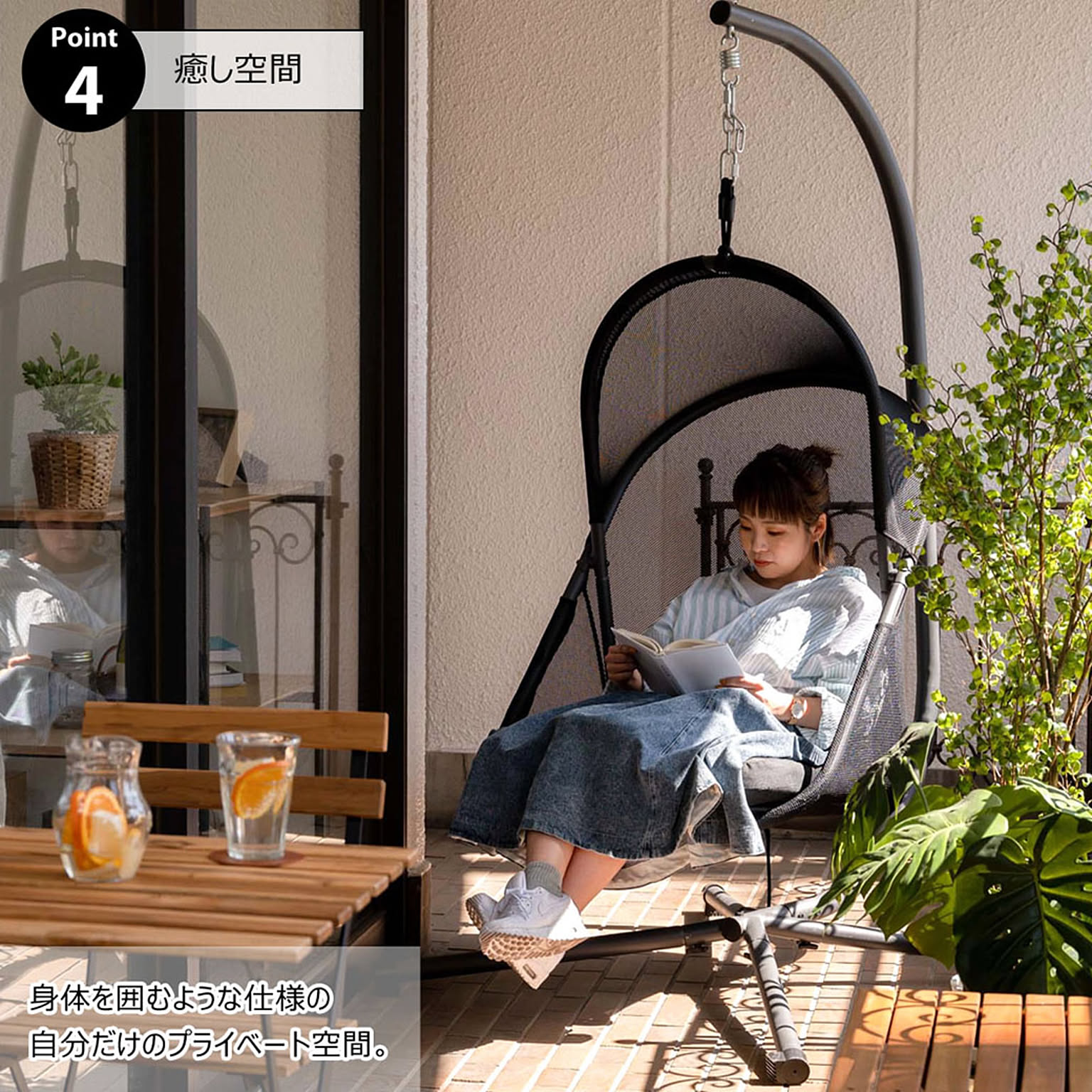 しっかりした設計でゆったりリラックスできるハンギングチェア。