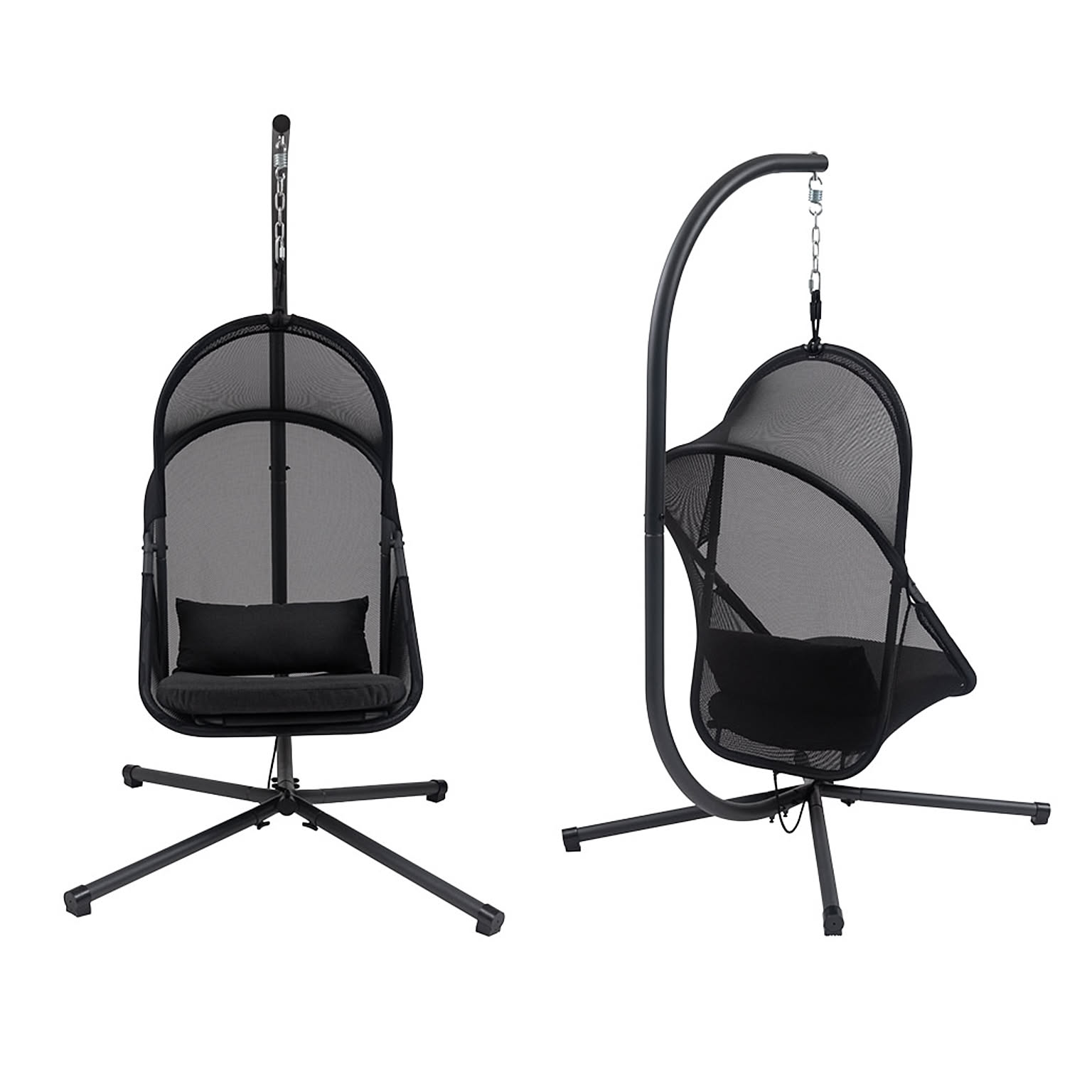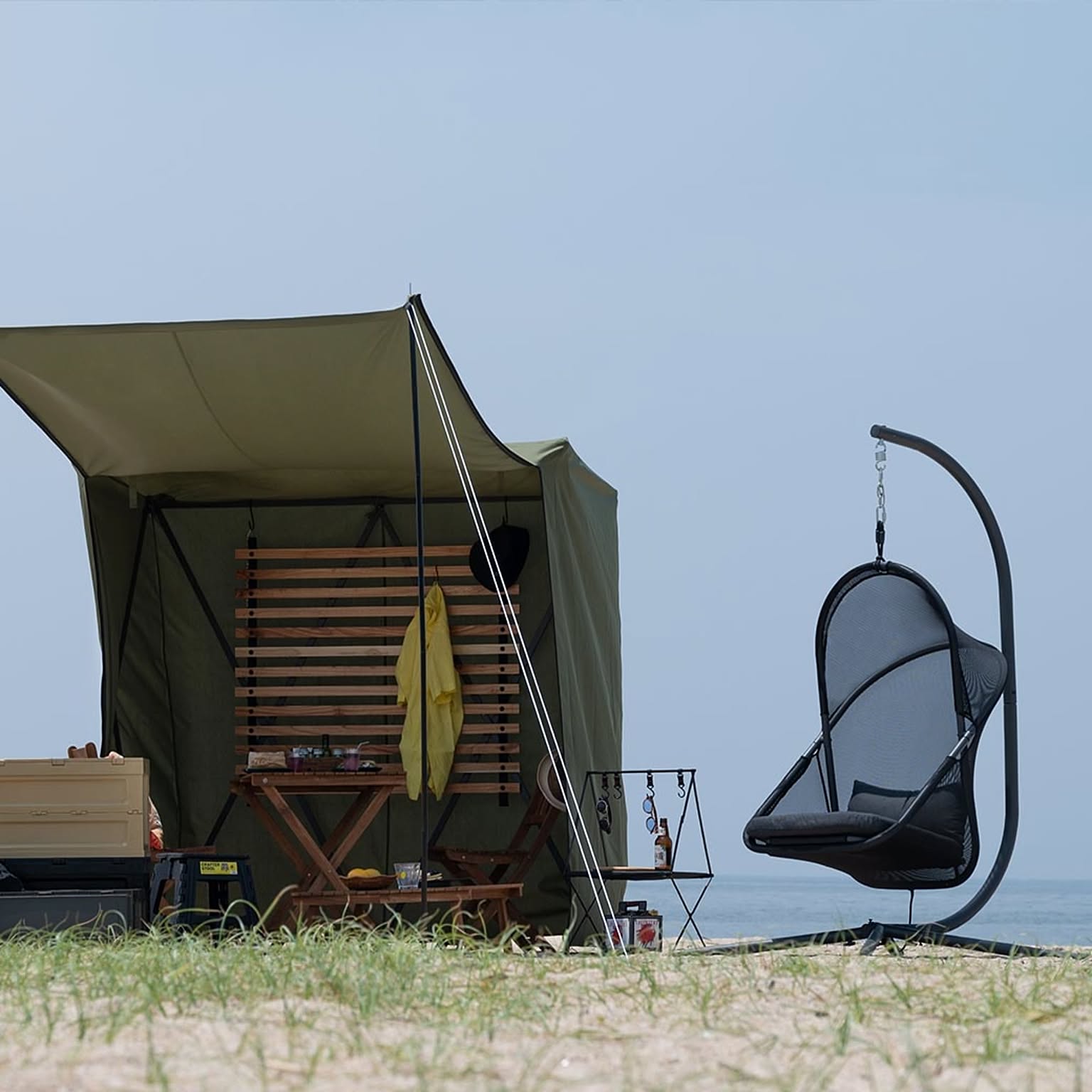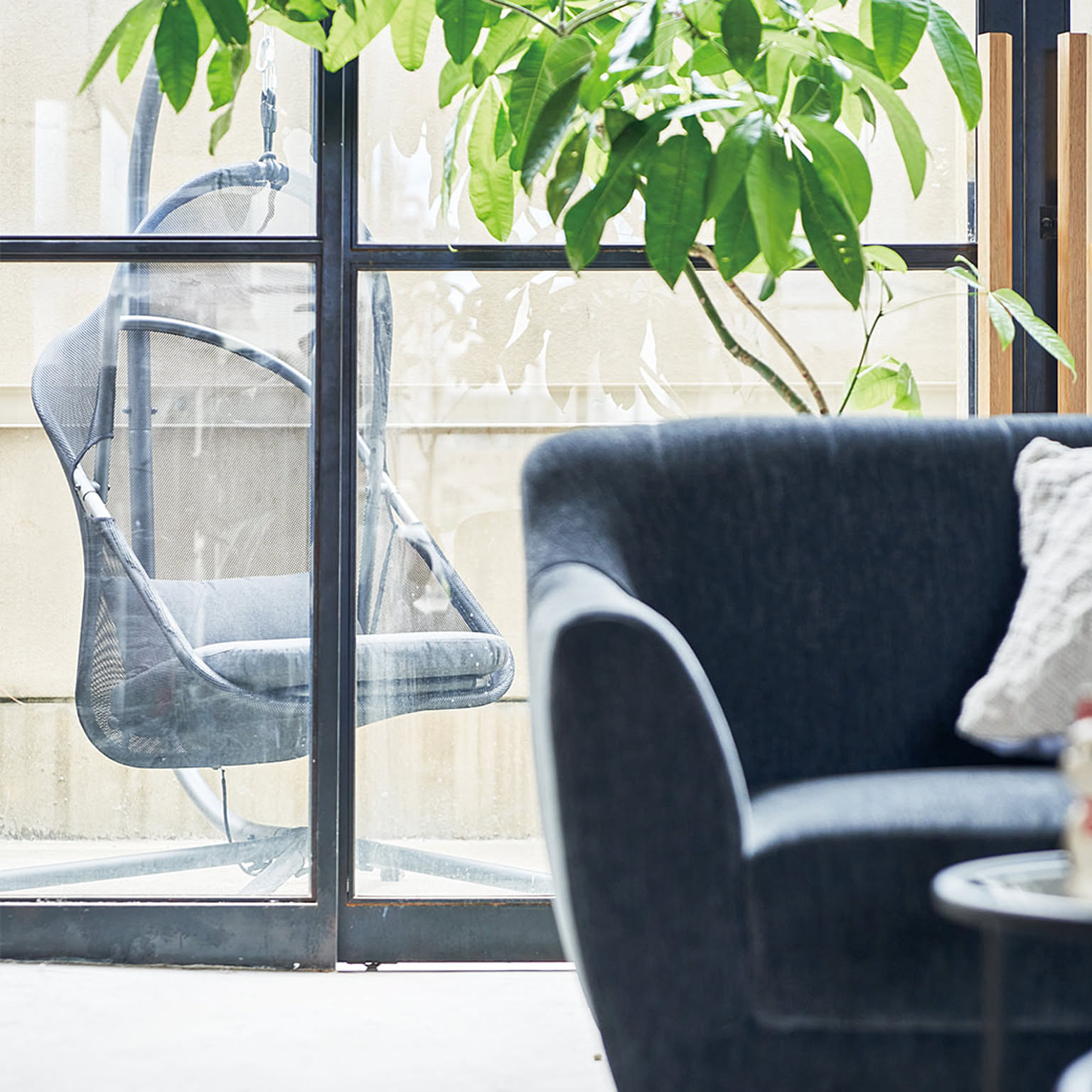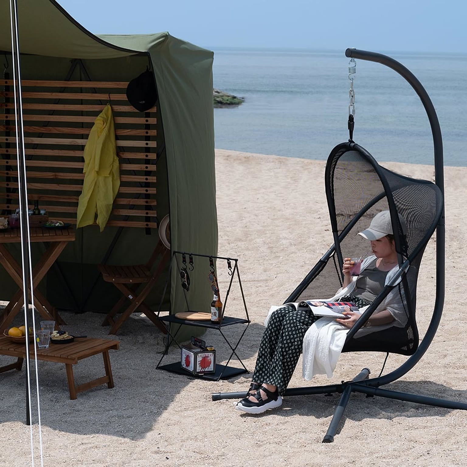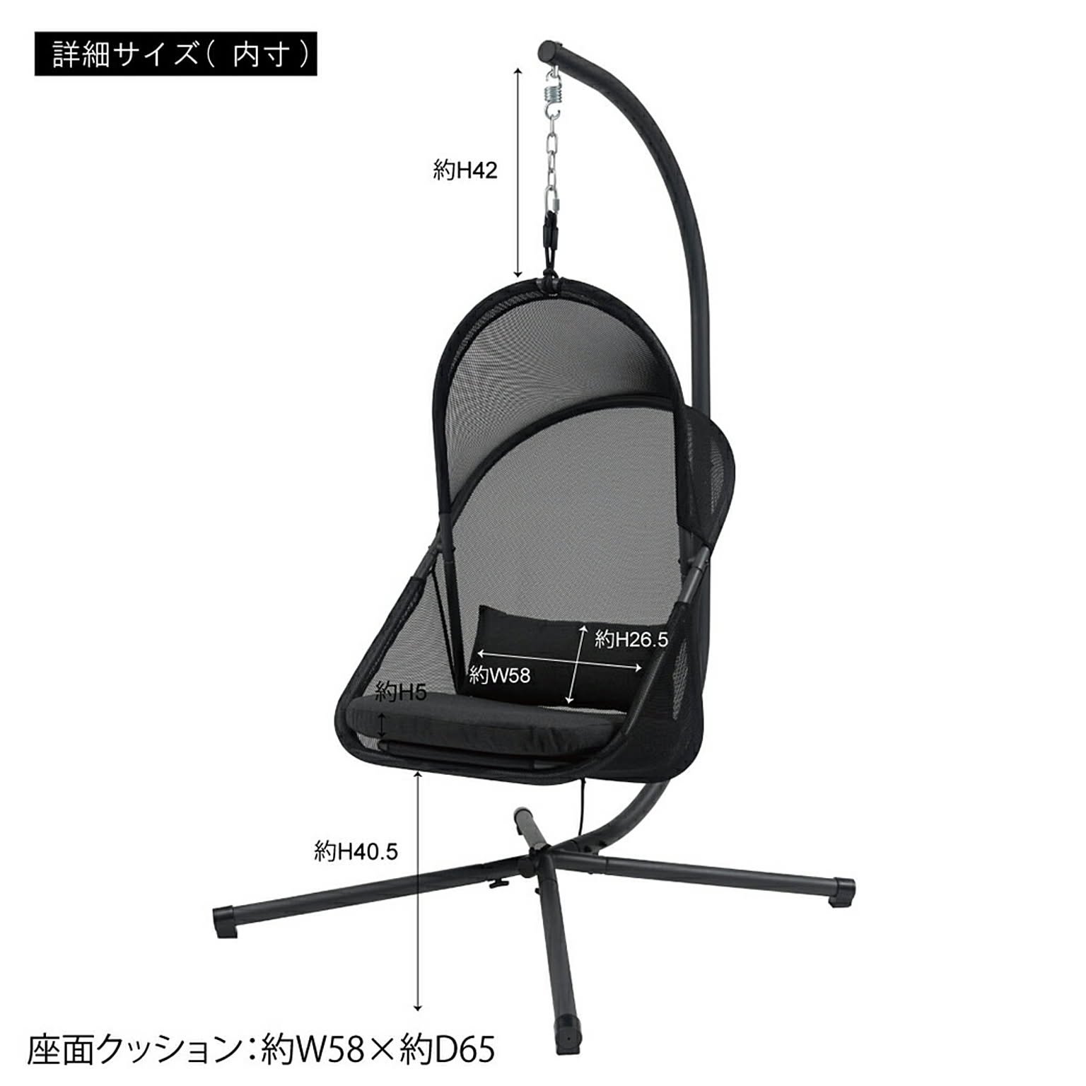 しっかりした設計でゆったりリラックスできるハンギングチェア。