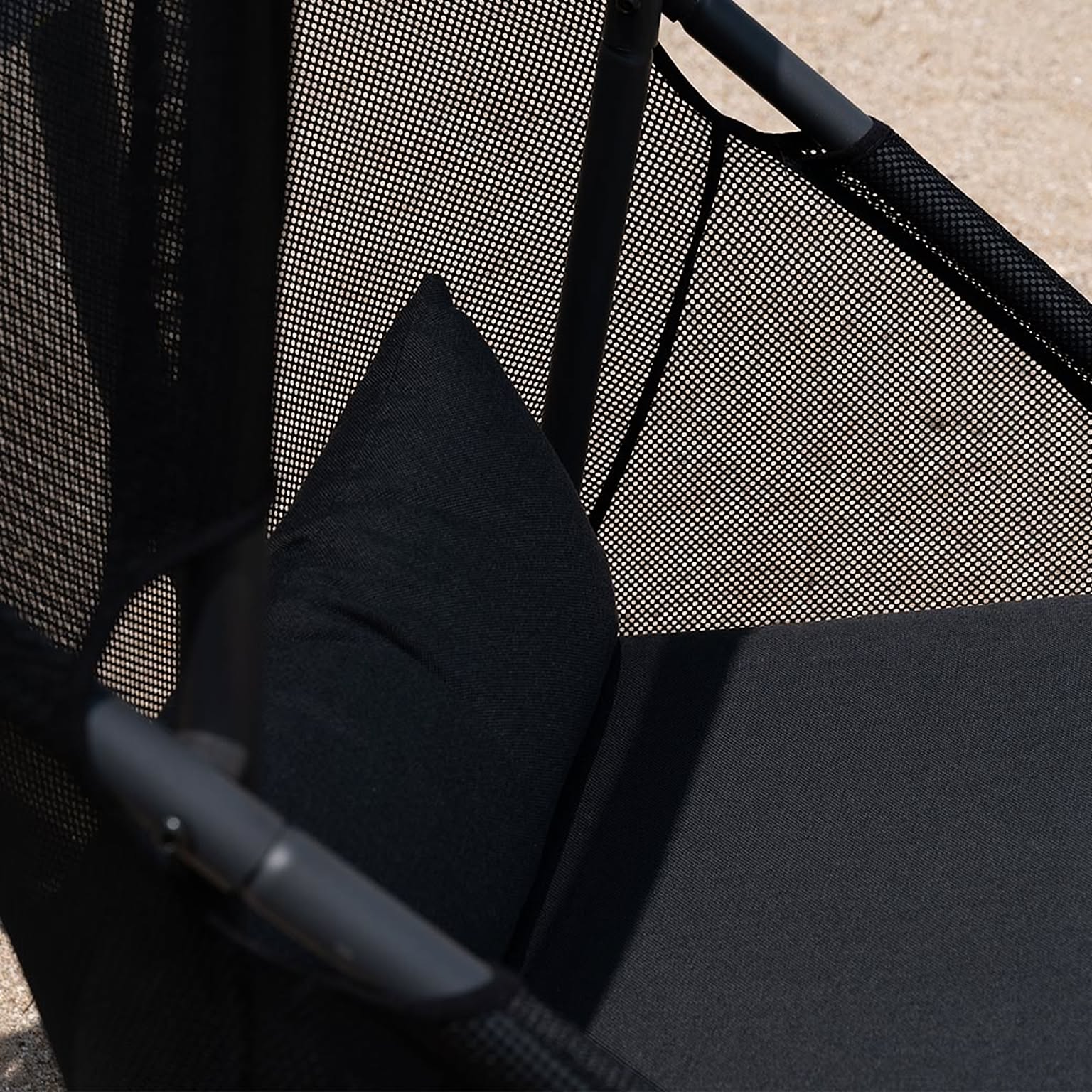 身体全体を包み込む形状なので安心感も抜群。シンプルで重量感のあるブラックカラーが空間のアクセントに。