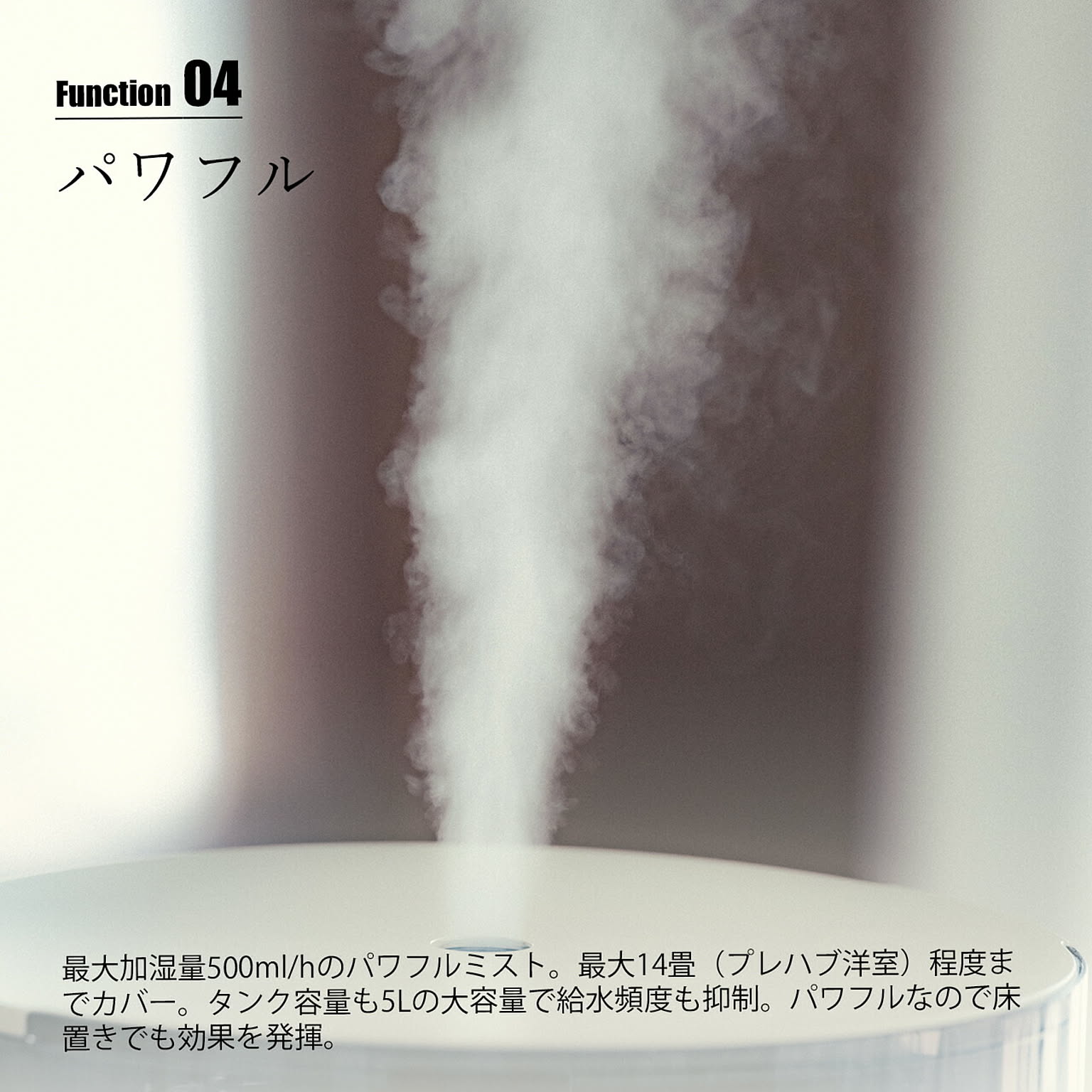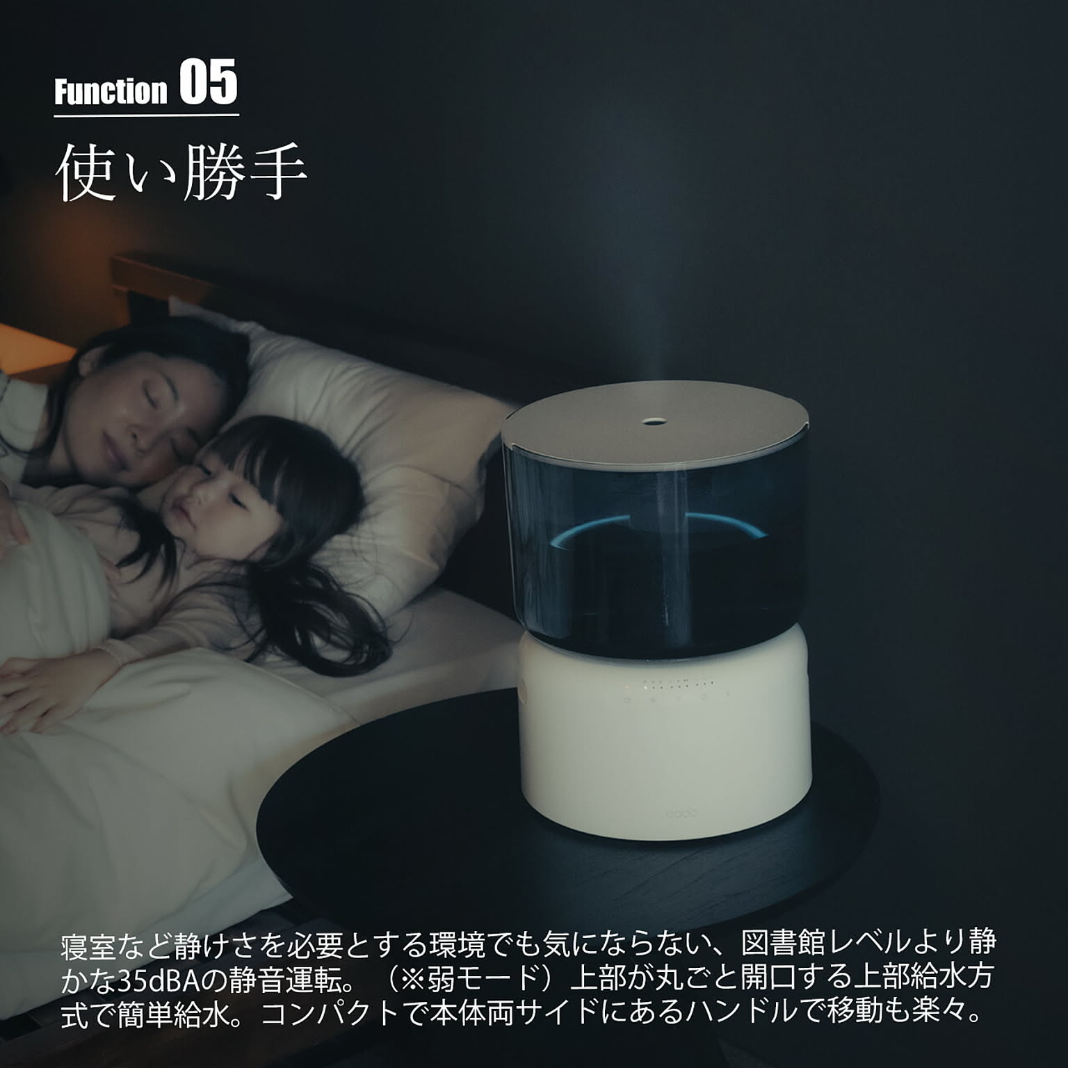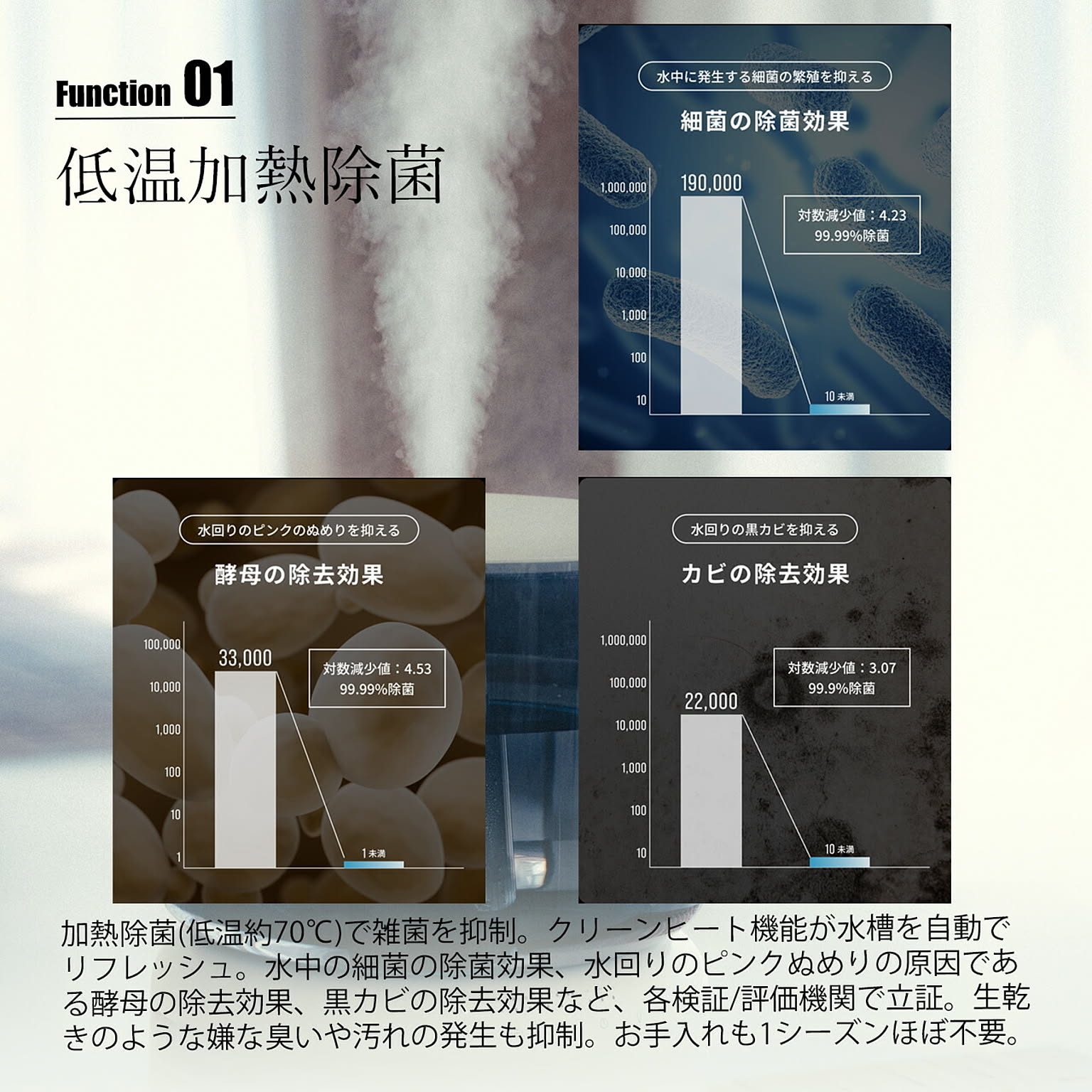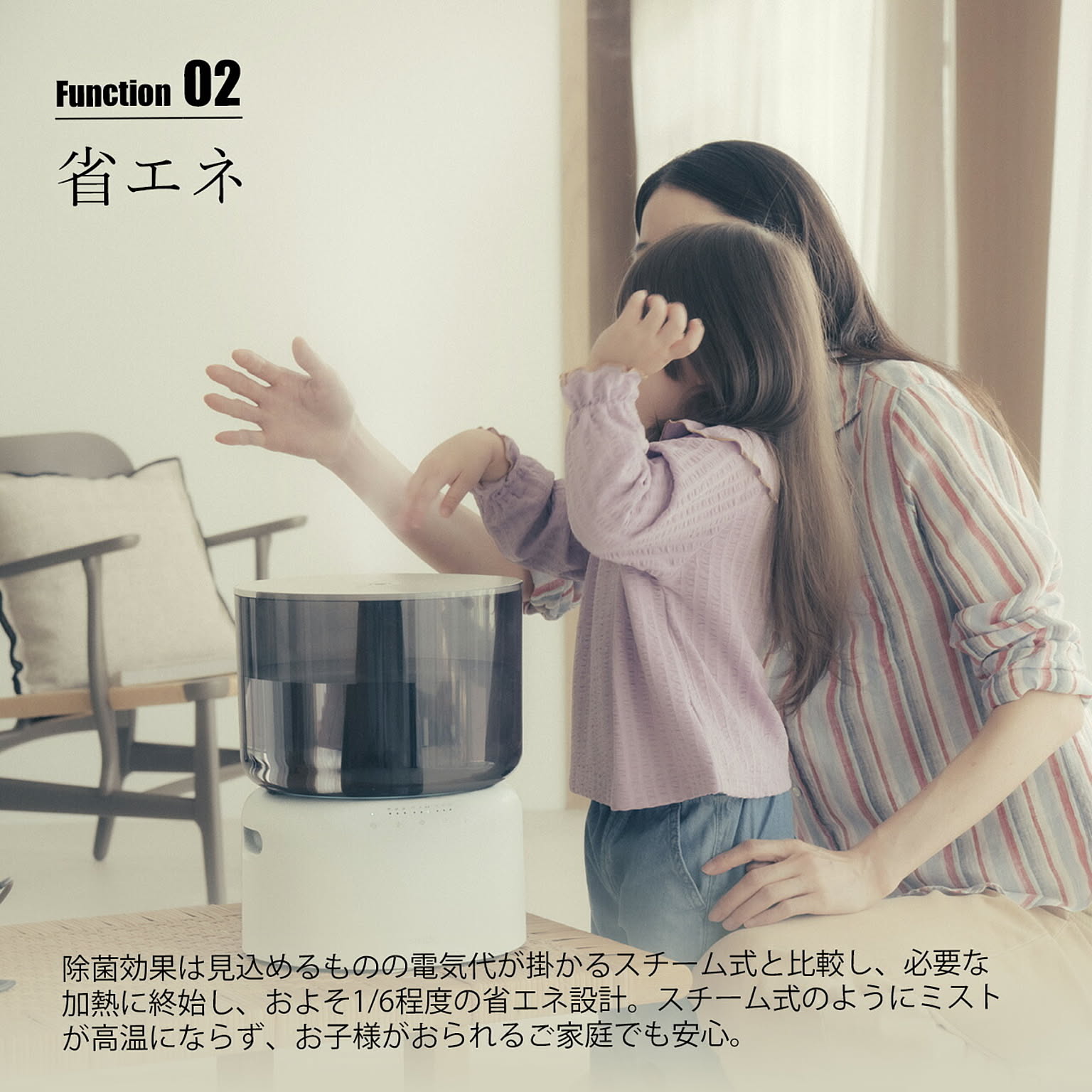 これまでの加湿器で方式それぞれにあった様々な課題をすべて解決。超音波式の省エネ性と、 スチーム式の清潔さ。その両方をひとつにした、 理想のハイブリッド設計。床や周りが濡れないウルトラマイクロミスト、ホワイトダストによる周辺の白汚れを予防するカートリッジ、新技術のクリーンヒート機能で1シーズンほぼお手入れ不要、上部給水による手軽さ、図書館よりも静かな静音性など、あらゆる加湿器の悩みに終止符を打つ、cado社渾身の一台。