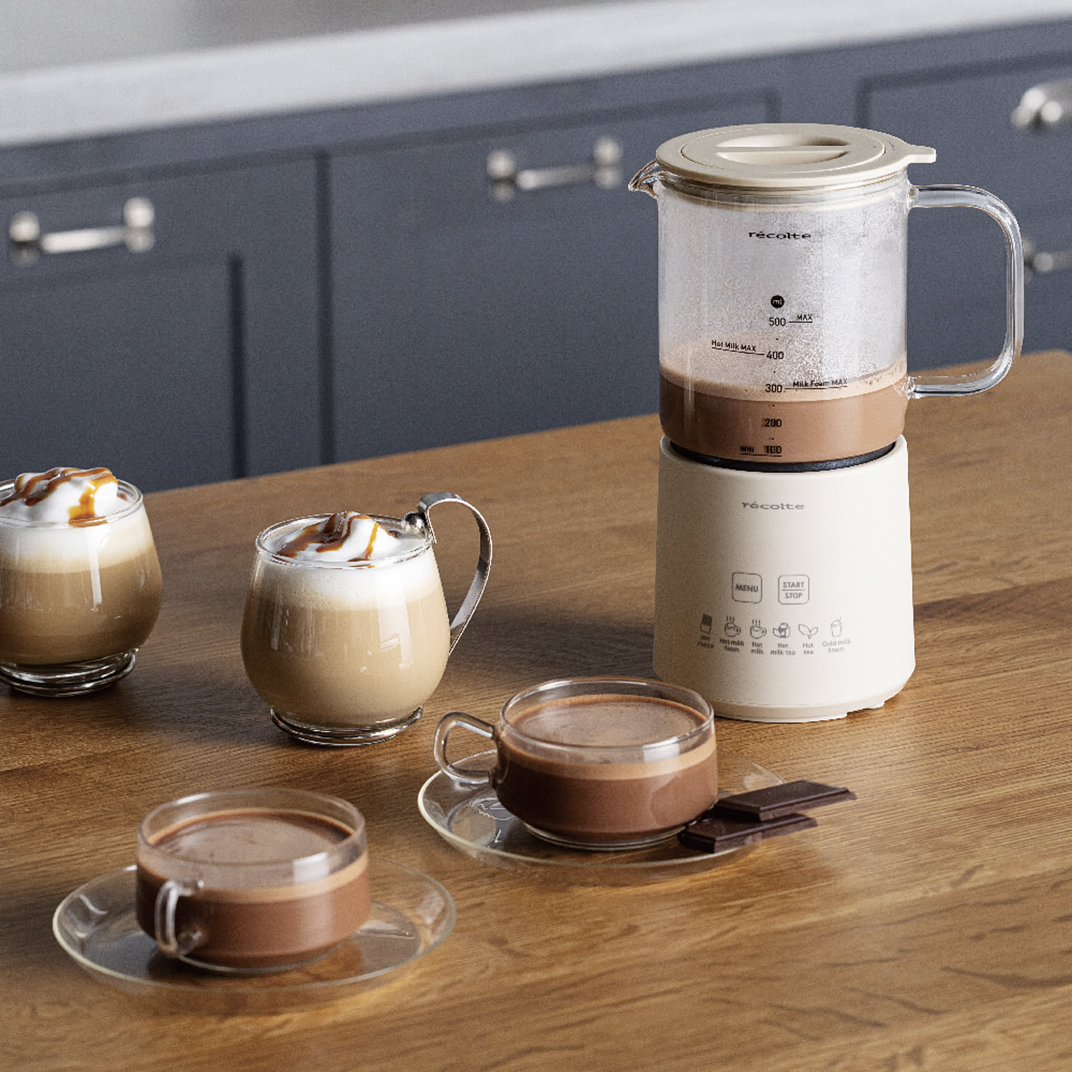 チョコレートドリンクやミルクフォームに加え、【Hot tea】や【Cold milk foam】など、6つのメニューから選ぶだけで簡単に作れるので、気分に合わせて多彩なドリンクを楽しめます。