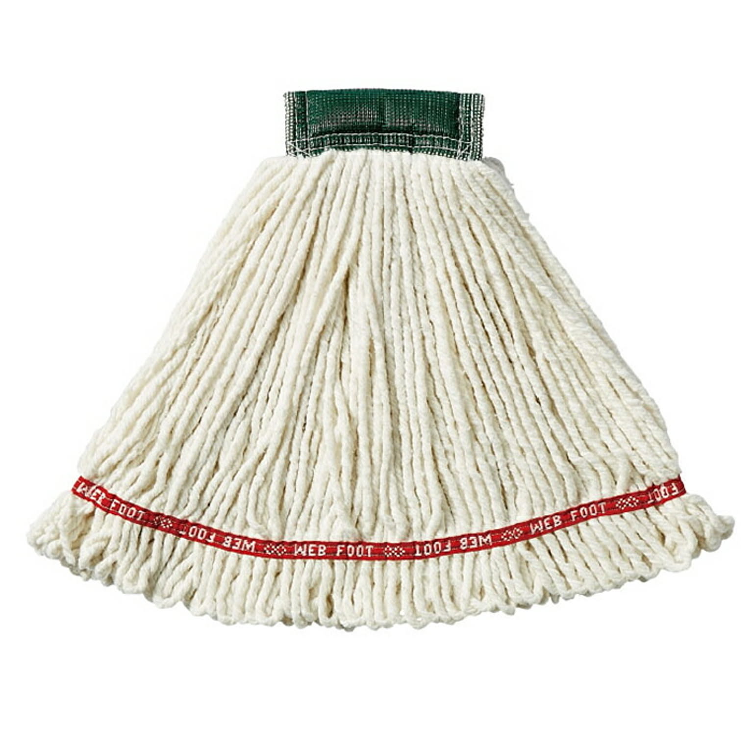 耐久性に優れた業務用ウェットモップ。繊維が収縮しにくい防縮加工済みで、最大75回の業務用洗濯に対応。ループエンド仕様で床をムラなく拭き取れ、ヘッドバンドは薬品耐性のあるPVCコーティングメッシュを採用。