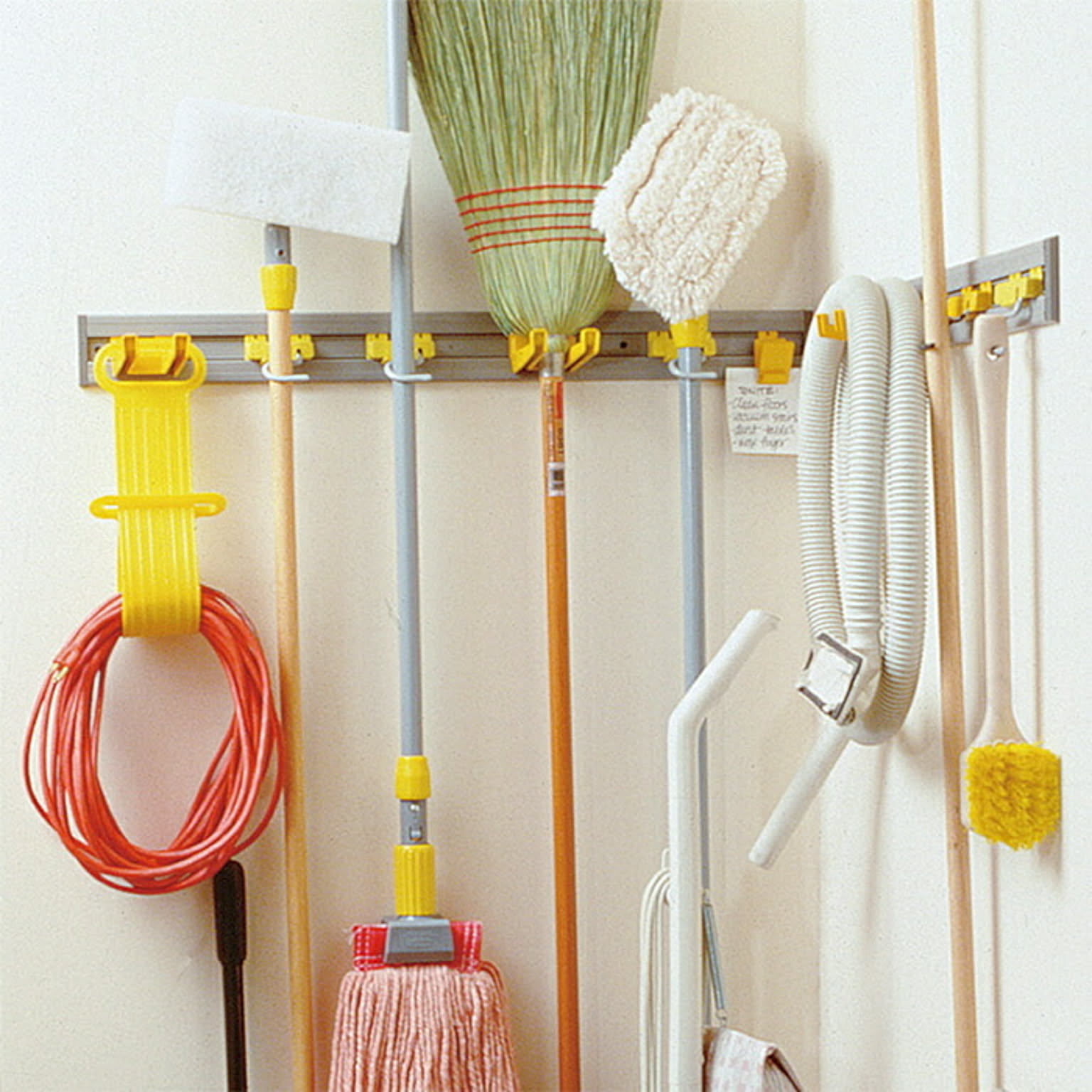 ツールの収納を効率化するラバーメイド クローゼットオーガナイザーツールホルダー。S字フックは直径16〜32mmのハンドルをしっかり固定し、深型ダブルフックで小物も簡単に収納可能。作業メモや指示を挟めるクリップホルダーも搭載し、整理整頓と作業効率を向上させます。