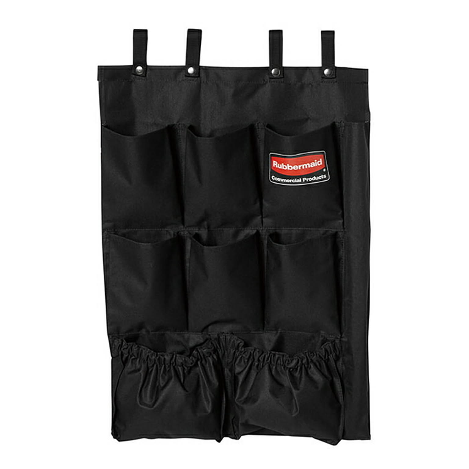 カートに取り付けるだけで収納力アップ。ハウスキーピングカートの収納を強化するラバーメイドの9ポケットオーガナイザー。洗剤、ブラシ、クロスなどの清掃用品を整理し、作業効率を高めます。頑丈なストラップでしっかり固定でき、直径3.8cmまでのハンドルを持つカートに対応。スナップ付きループで清掃用具を安全に収納し、持ち運びも快適。すべてのRCPカートと互換性あり。