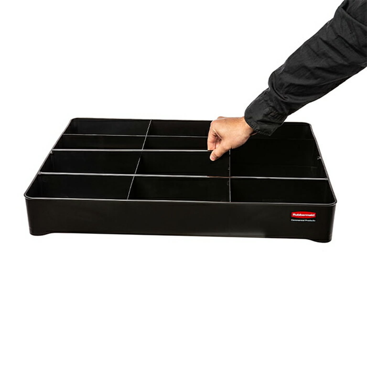 使いやすい収納スペースをカートにプラス。カスタマイズ可能なディバイダー。ハウスキーピングカートの整理整頓をさらに快適にする収納トレイ。仕切りの位置を自由に調整でき、用途に応じたカスタマイズが可能。清掃業務をより効率的に行えます。