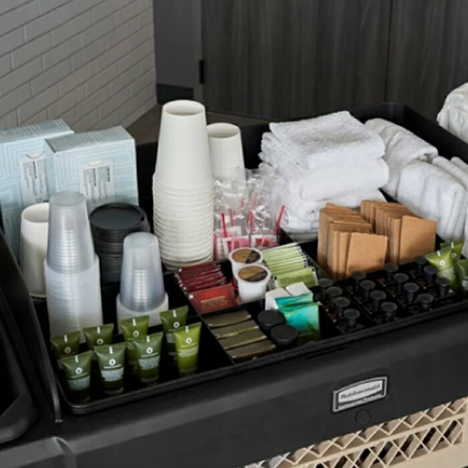 ハウスキーピングカートの整理整頓を快適にする収納トレイ
