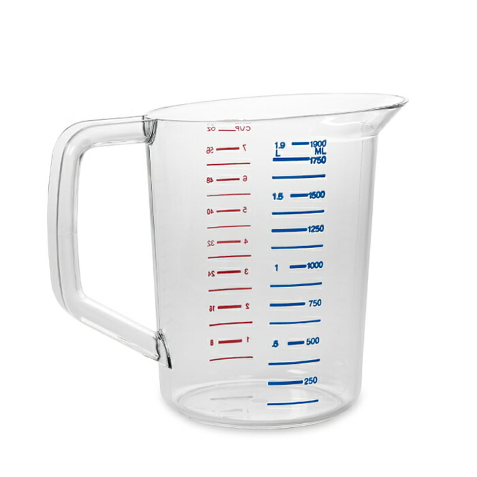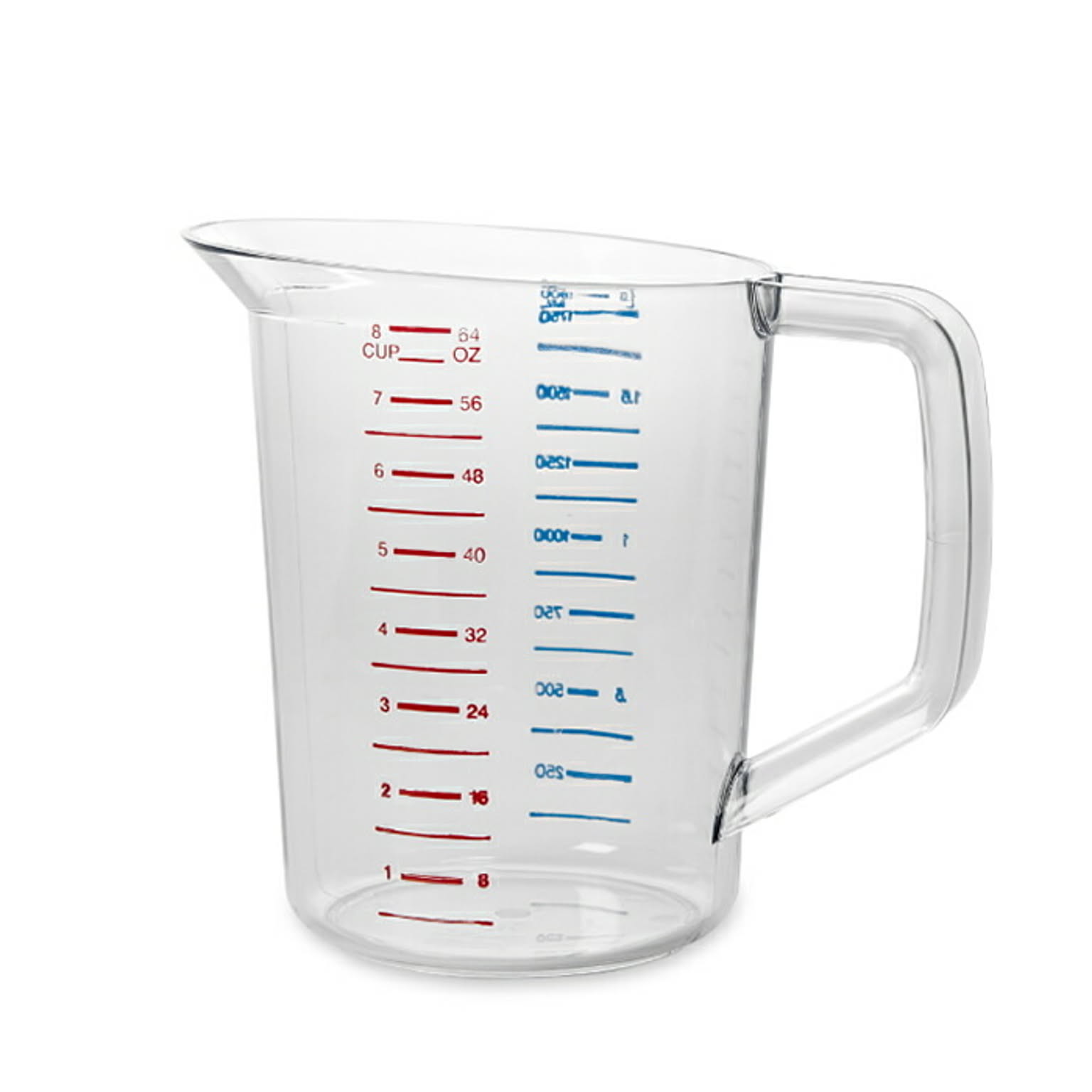 透明なポリカーボネイト製で割れにくく、耐衝撃性に優れた計量カップ。-40℃から100℃までの温度範囲に対応し、熱い液体も冷たい食材も正確に計量可能。赤色のカップ目盛り(oz)と青色のメトリック目盛り(ml)が施され、視認性が高く、素早く測定できる。業務用としても耐久性があり、長く使用できるアイテム。