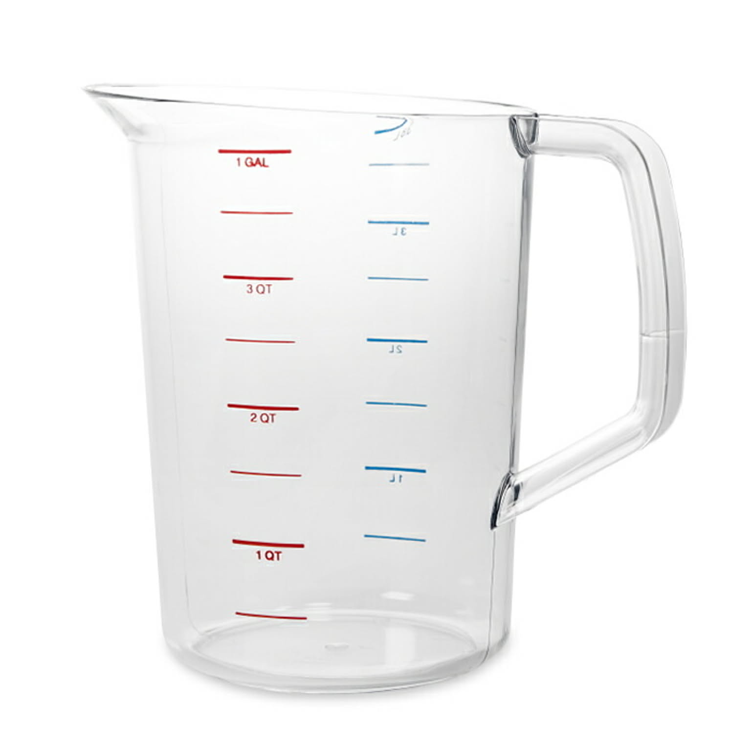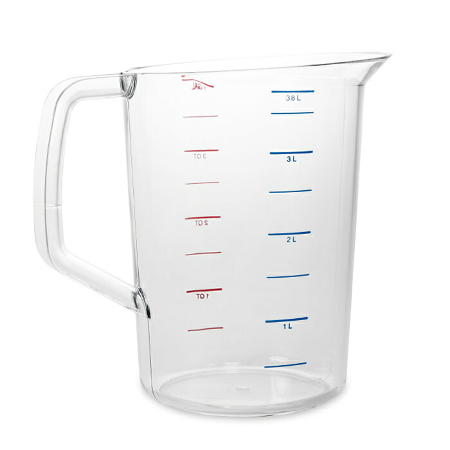 透明なポリカーボネイト製で割れにくく、耐衝撃性に優れた計量カップ。-40℃から100℃までの温度範囲に対応し、熱い液体も冷たい食材も正確に計量可能。赤色のカップ目盛り(oz)と青色のメトリック目盛り(ml)が施され、視認性が高く、素早く測定できる。業務用としても耐久性があり、長く使用できるアイテム。