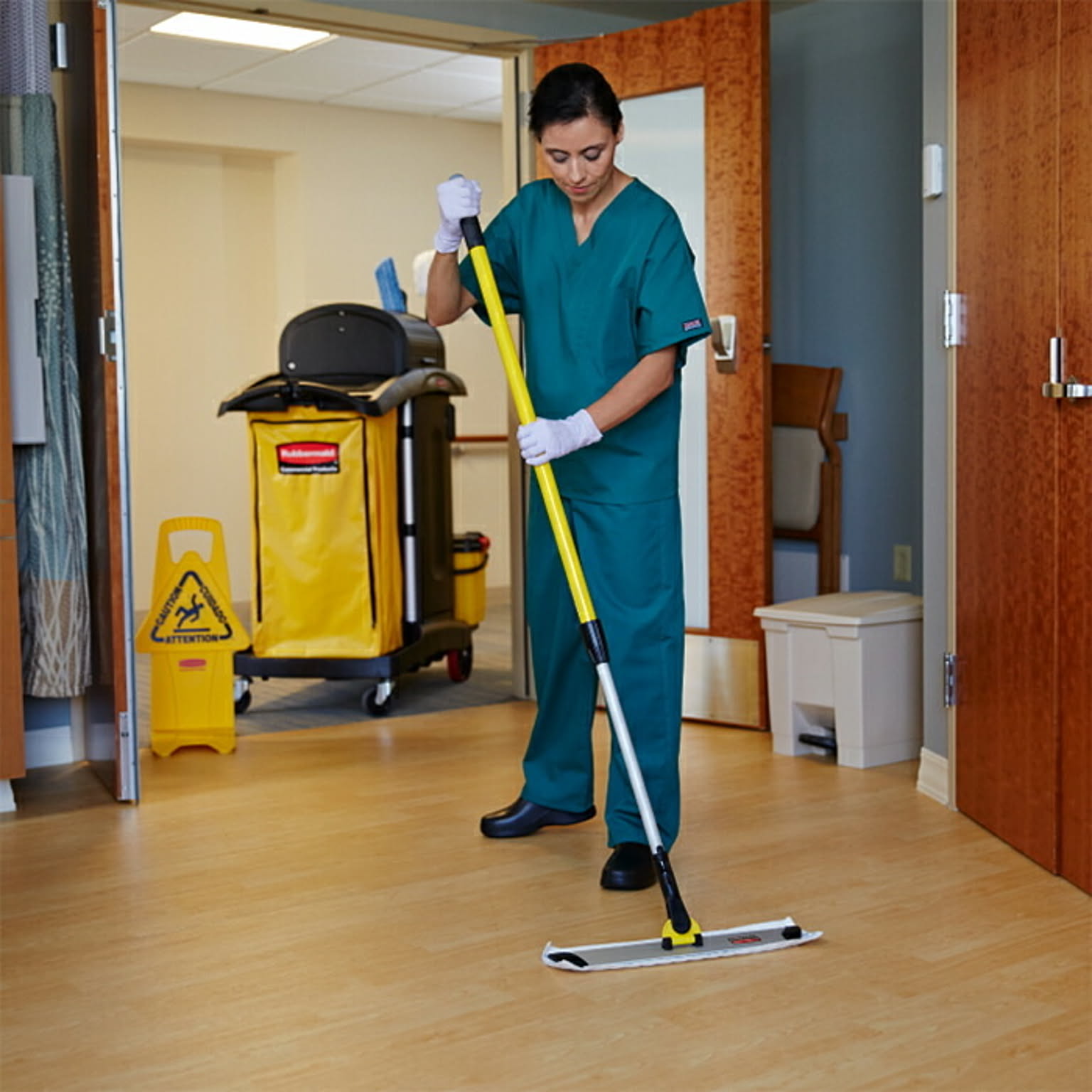 清掃作業の負担を軽減する伸縮型ハンドル。1219mmから2438mmまで調整可能で、クイックコネクト機能により迅速にツールを交換可能。軽量で丈夫なアルミ製のため、高所や狭いスペースの清掃にも対応。