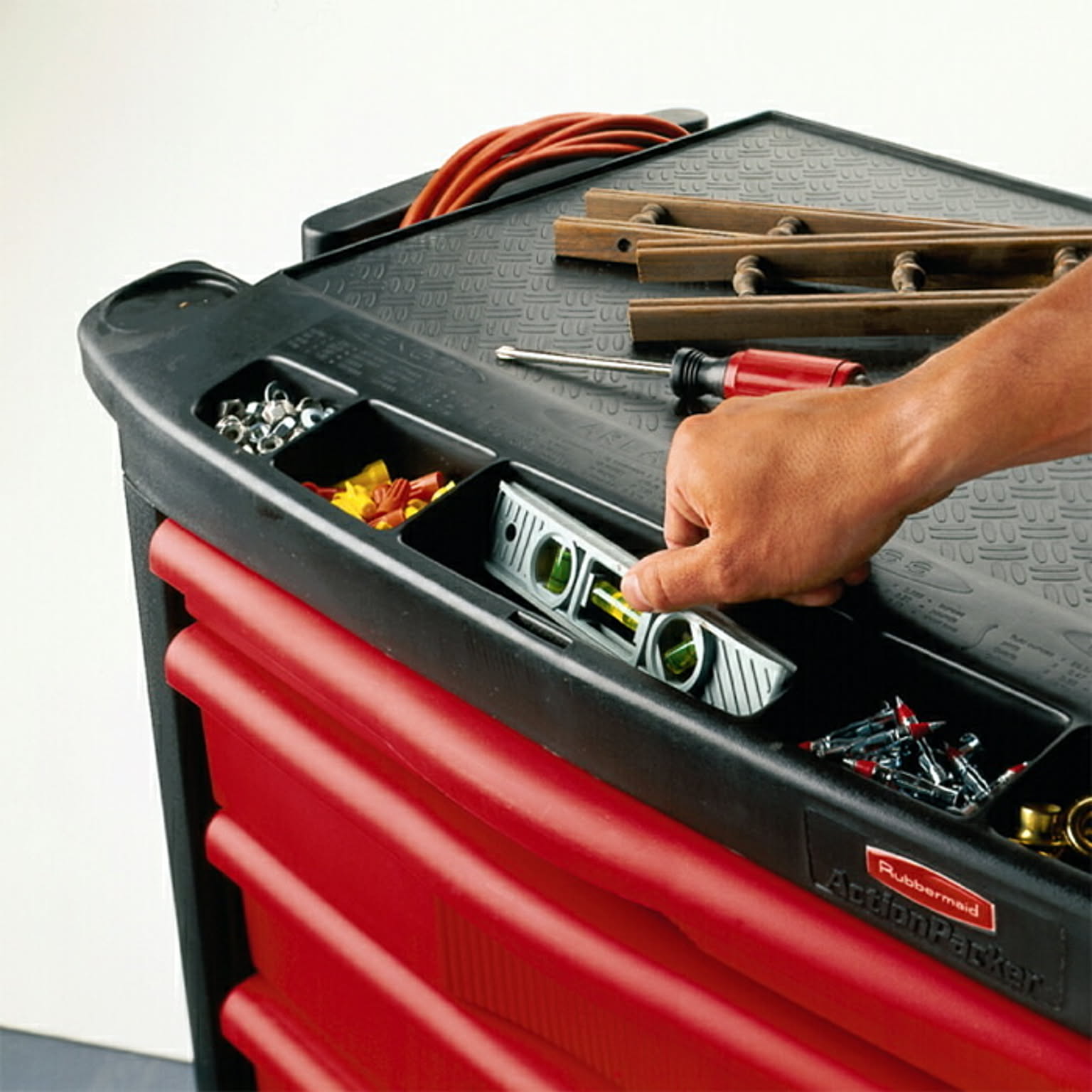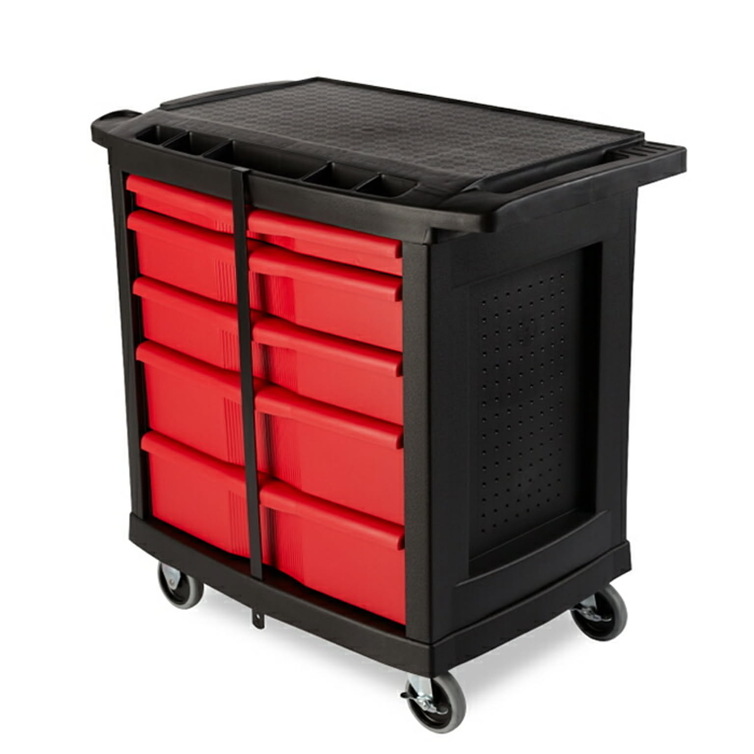 作業効率を向上させるツールワゴン。引き出し型でスムーズに収納でき、耐久性の高いスチール製の引き出しを採用。樹脂製の本体は錆びやヘコミの心配がなく、メンテナンスも簡単。
