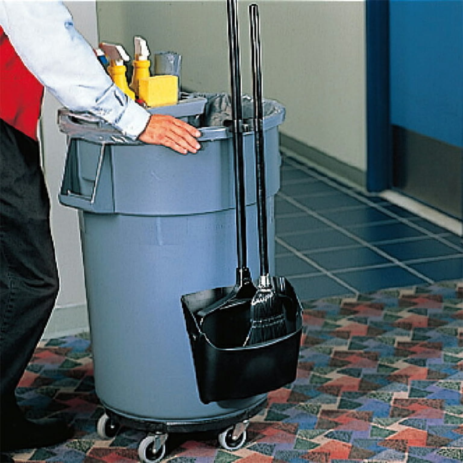 取り付けが簡単なハンガーブラケットは、ダストパンを効率的に収納するための便利なアクセサリー。ポリプロピレン製で耐久性があり、コンテナのフチ(リム)に装着することで移動しながらの作業にも最適。