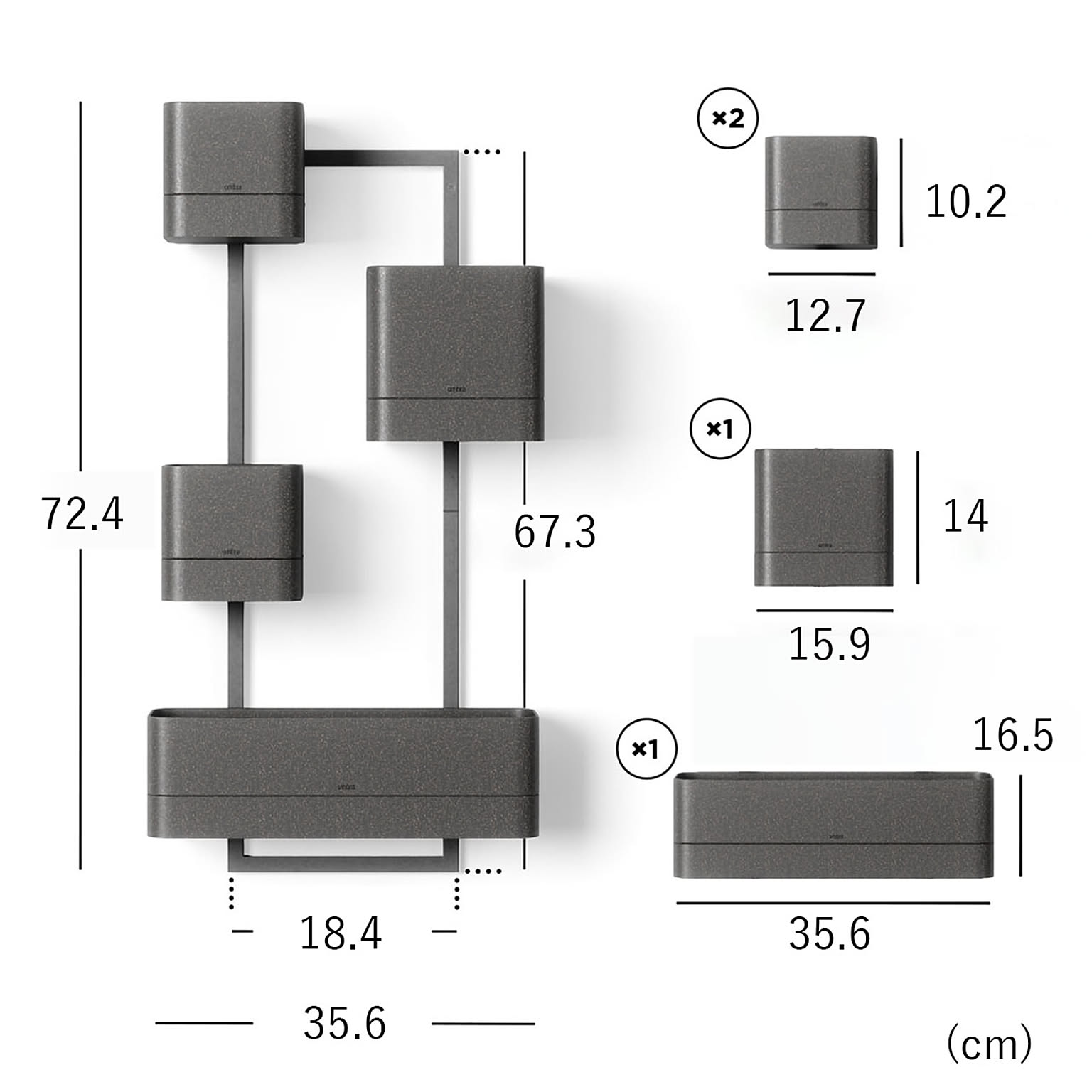 屋内外問わずにディスプレイできるプランター。大きさの異なる4つのポットが付属し、空間に合わせて自由にレイアウト可能です。排水トレーが付属しているので、植物を健康に保つことができます。