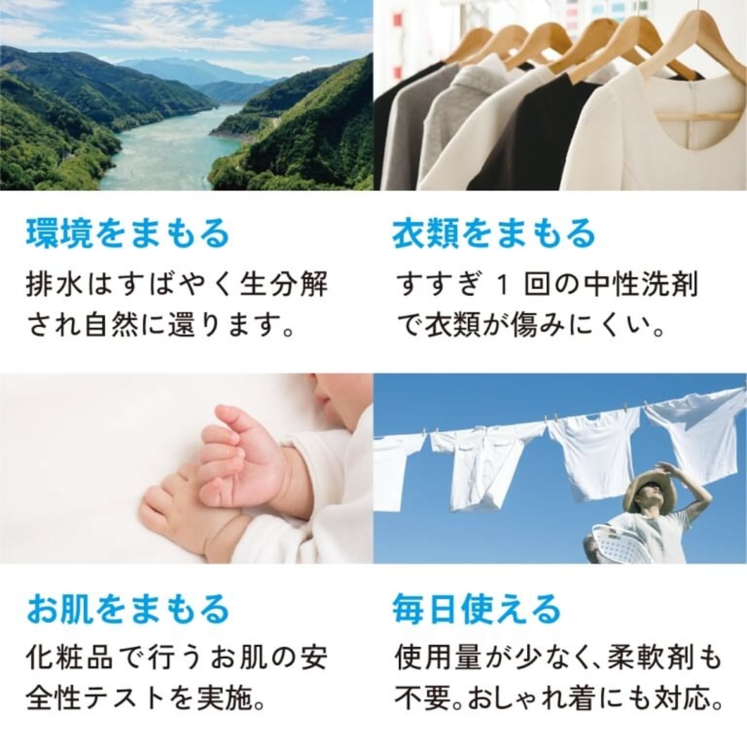 排水後も環境への負担が少ない、人にも地球にもやさしい洗剤です。