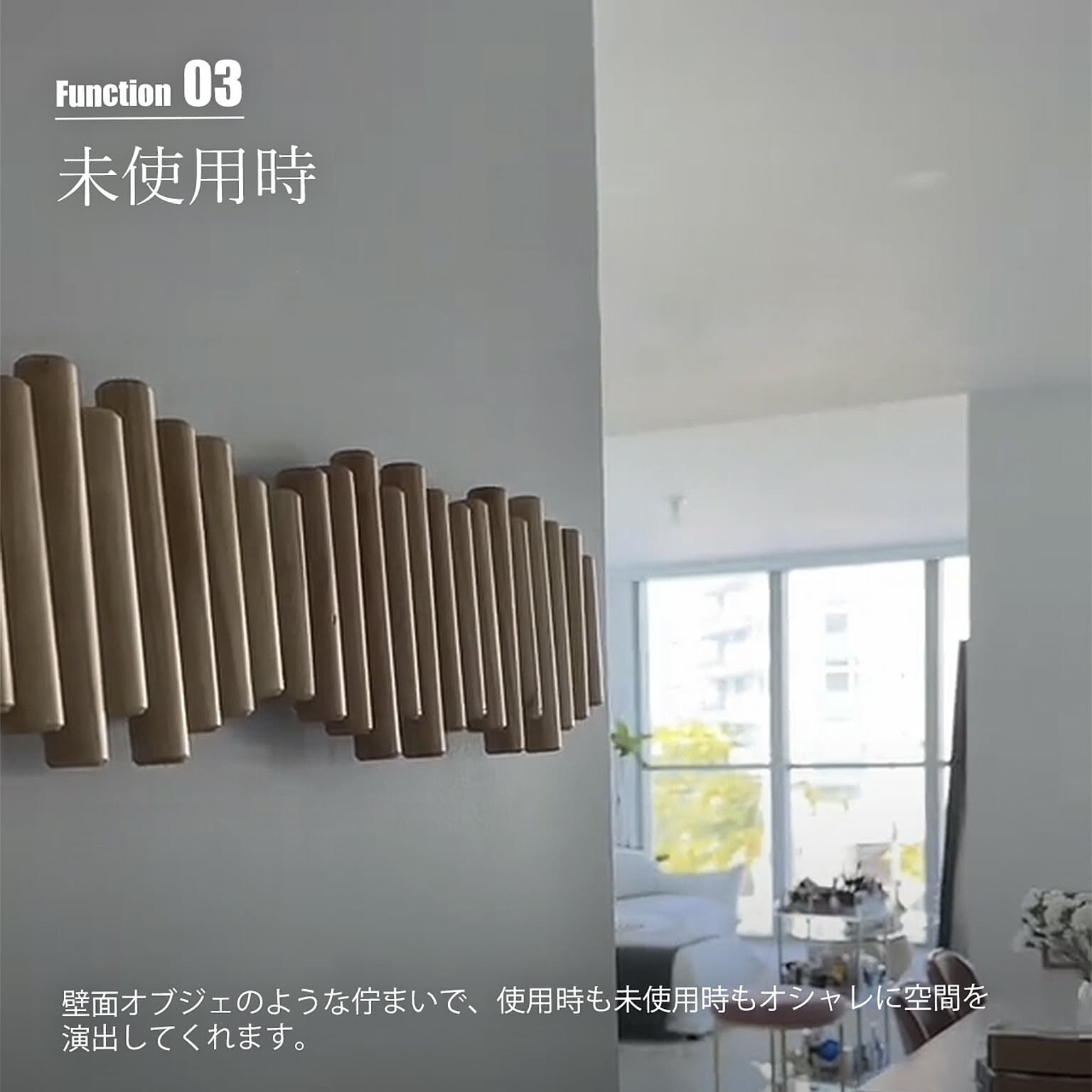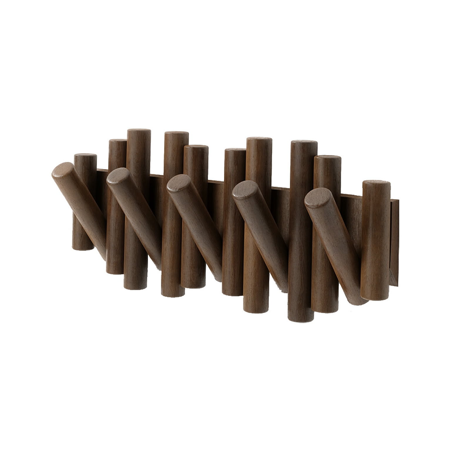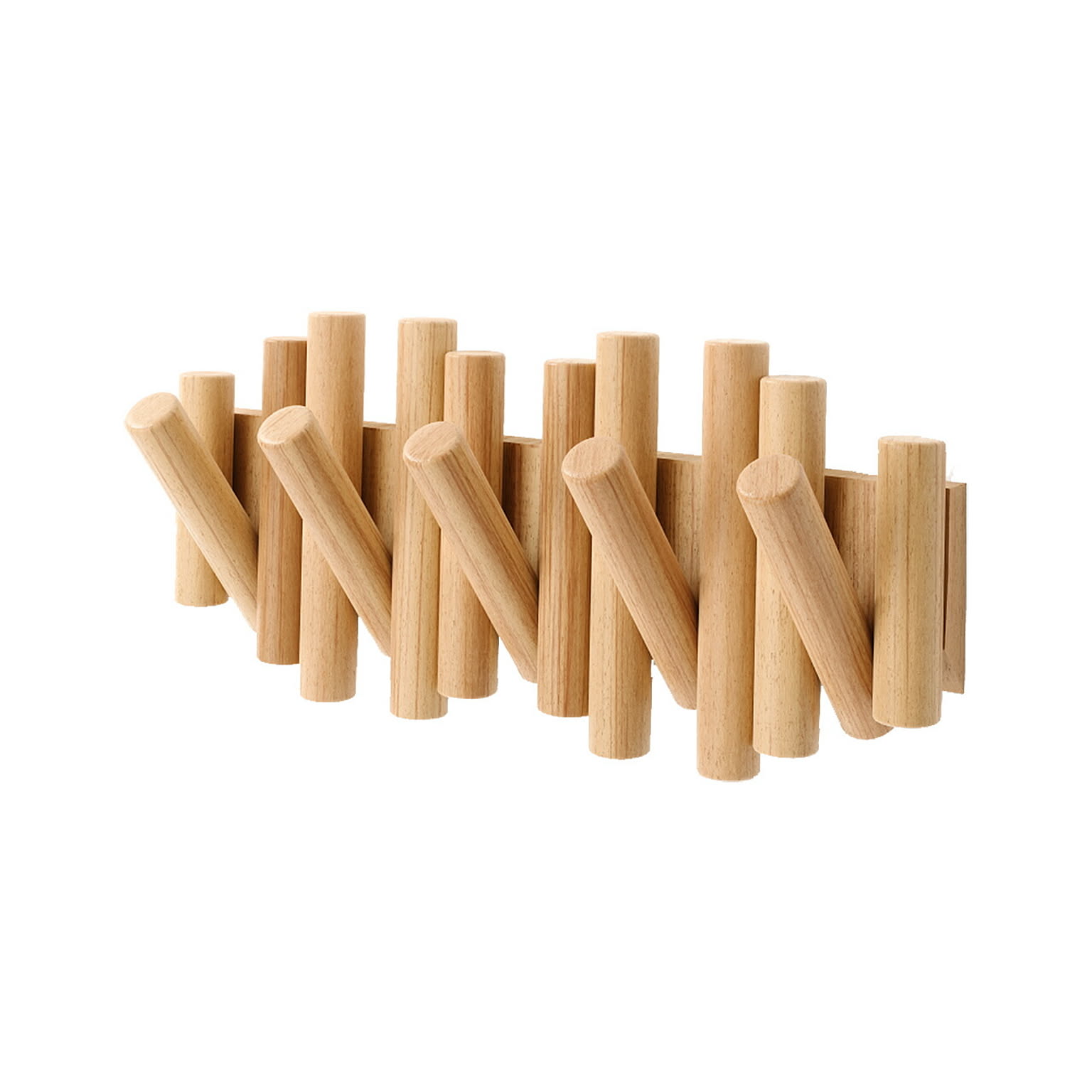 木の枝を並べたようなナチュラルなデザインの5連ウォールフック。使用するときには枝の一部がフリップしてフックになり、使用しない時は収納できるギミックのような楽しさがあります。壁面オブジェのような佇まいで、使用時も未使用時もオシャレに空間を演出してくれます。天然パイン材を使用し、他のインテリアとも調和しやすく、木の温もりを空間に与えてくれます。
