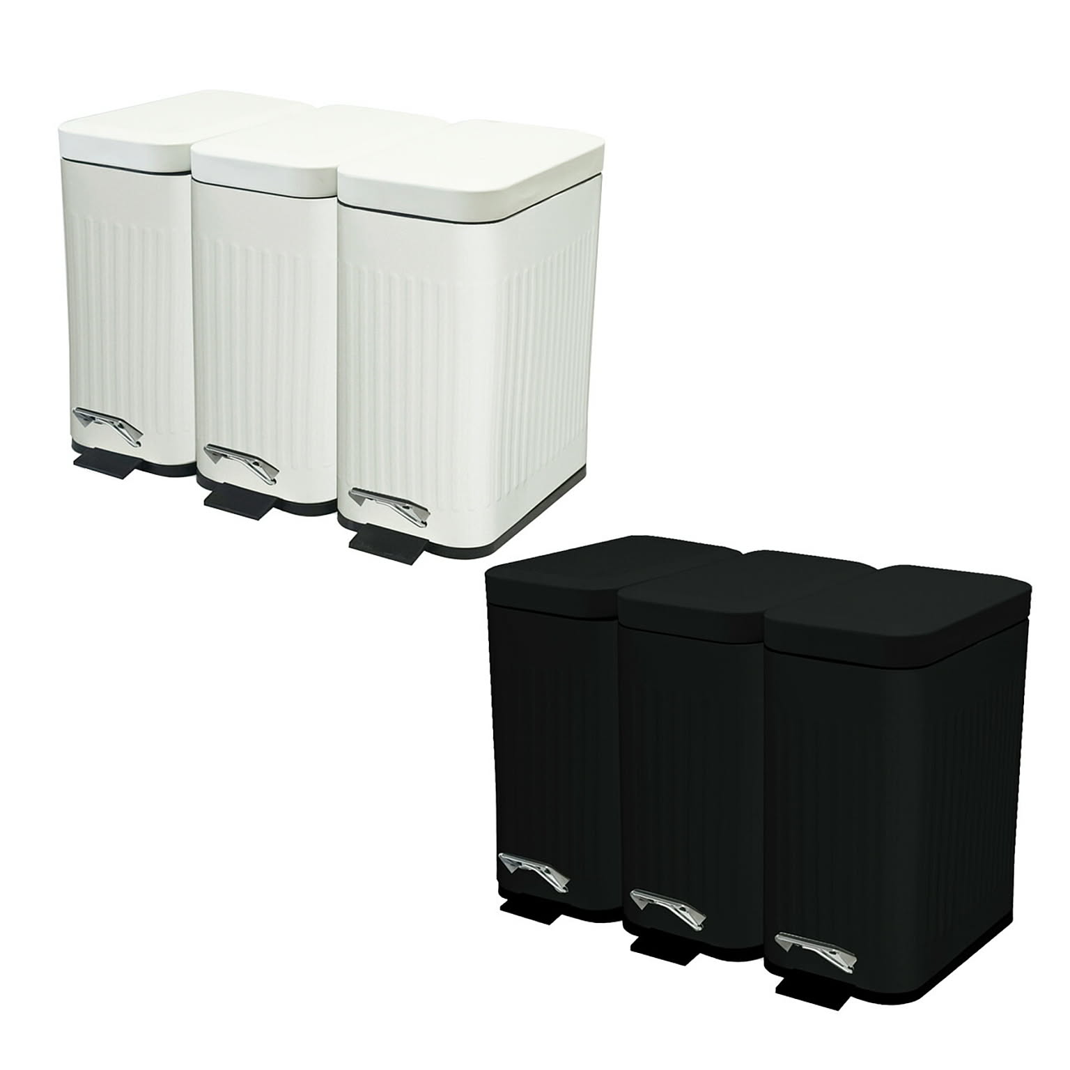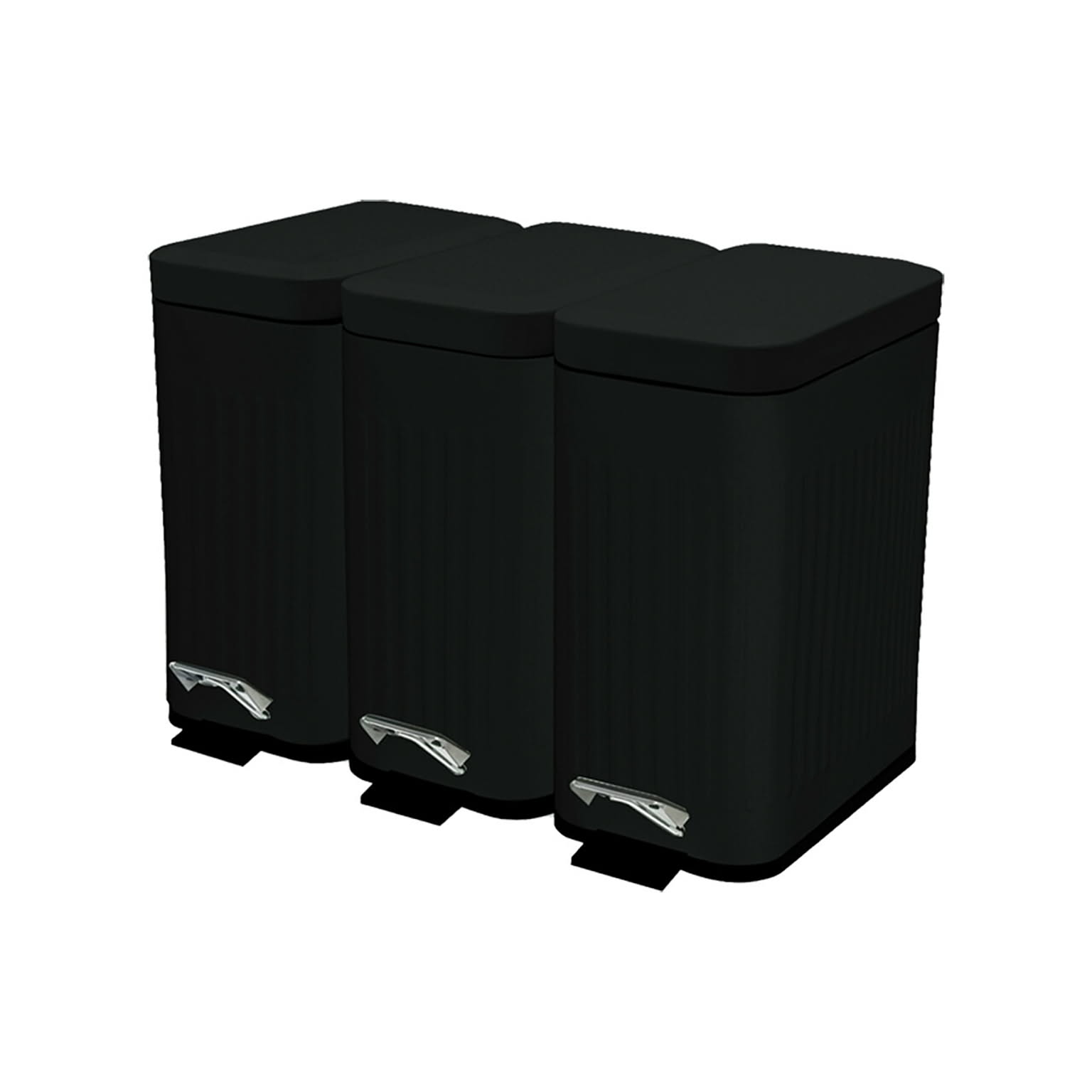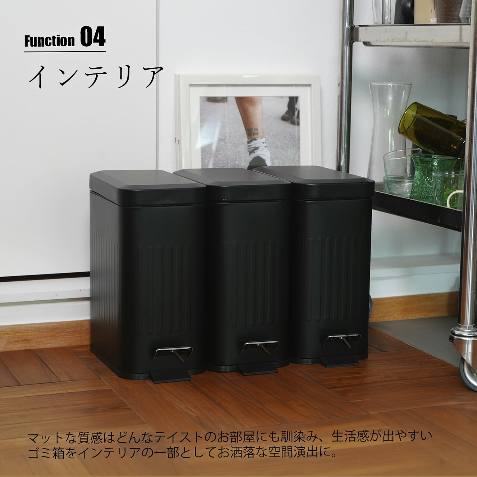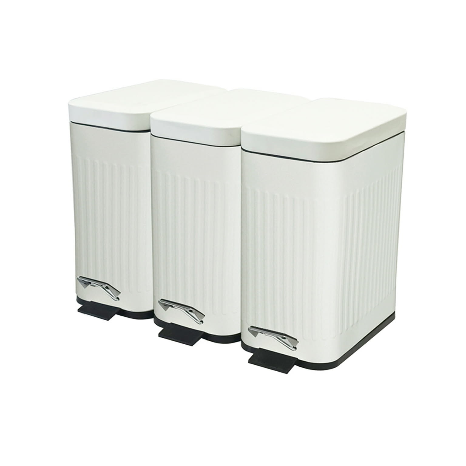 省スペースながら機能性に優れた、1つあたり5Lの容量を持つ3つの分別ゴミ箱。燃えるゴミ・資源ごみ・プラスチックなど、日常の分別に最適です。フタはゆっくりと静かに閉まる仕様で、開閉時の音を軽減。キッチンやオフィスなど、静かな空間でも快適にご使用いただけます。それぞれインナーボックスを備え、取り外し可能で、お手入れやゴミの入れ替えも簡単。マットなモノトーンカラー展開で、どんなインテリアにも自然に馴染みます。