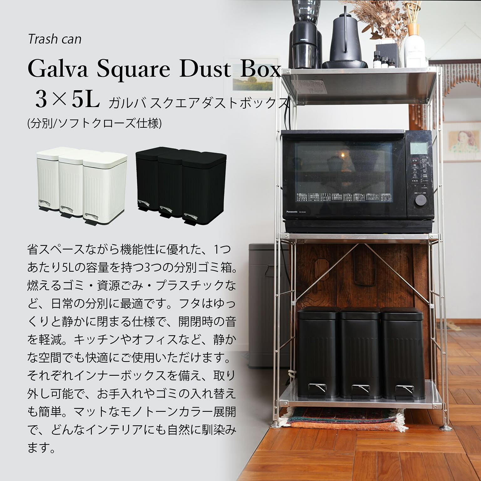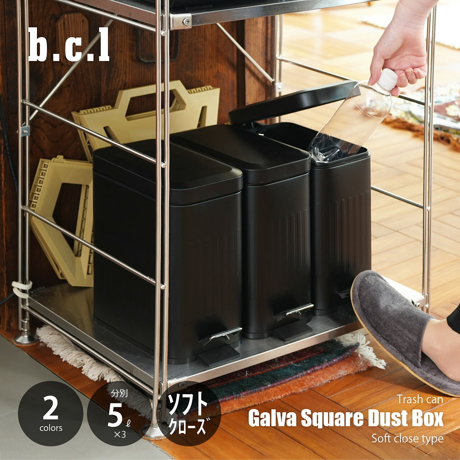 b.c.l ビーシーエル Galva Square Dust Box 5L×3 ガルバ スクエアダストボックス5L×3分別 ソフトクローズ / ゴミ箱 ごみ箱 ダストボックス フタ付き ペダル開閉