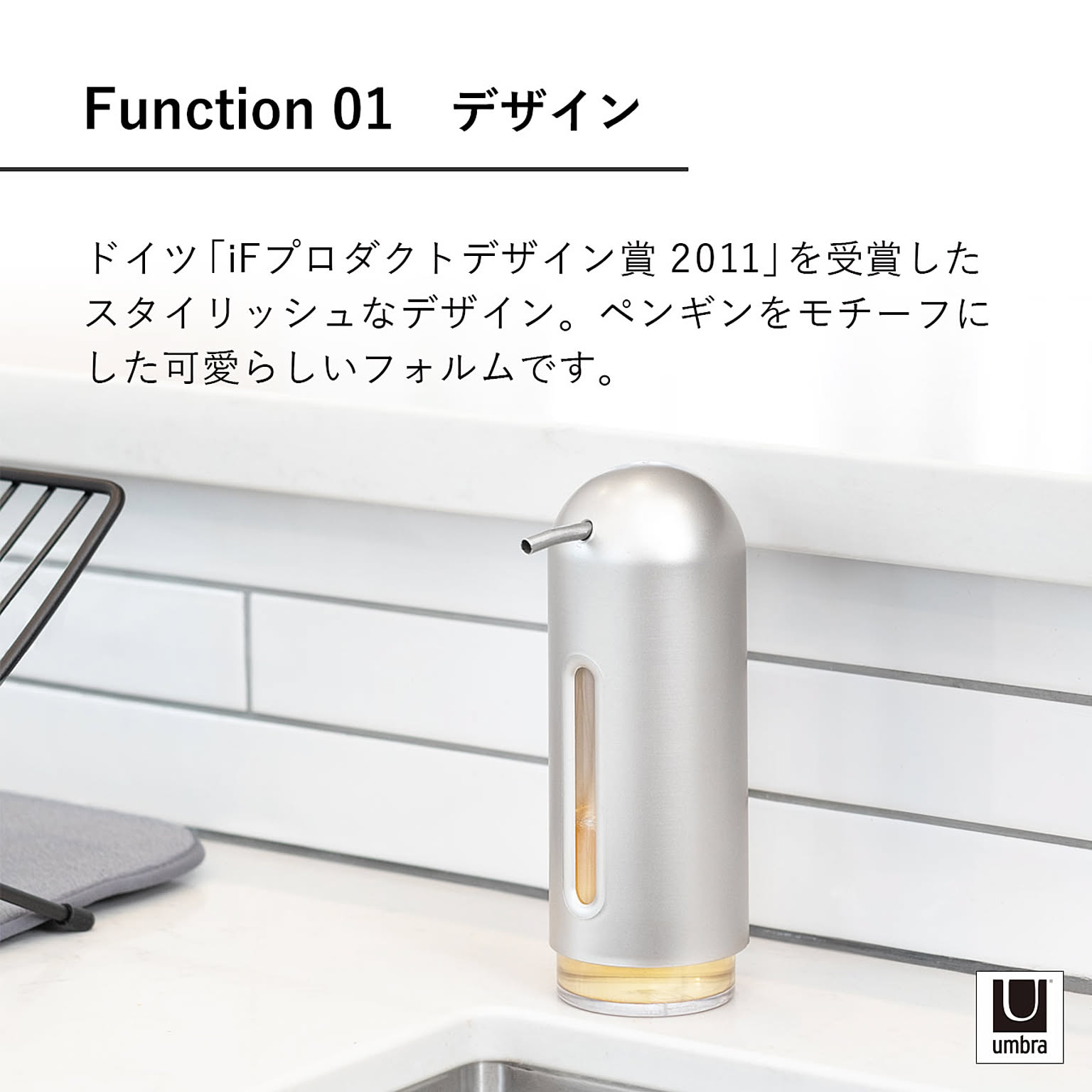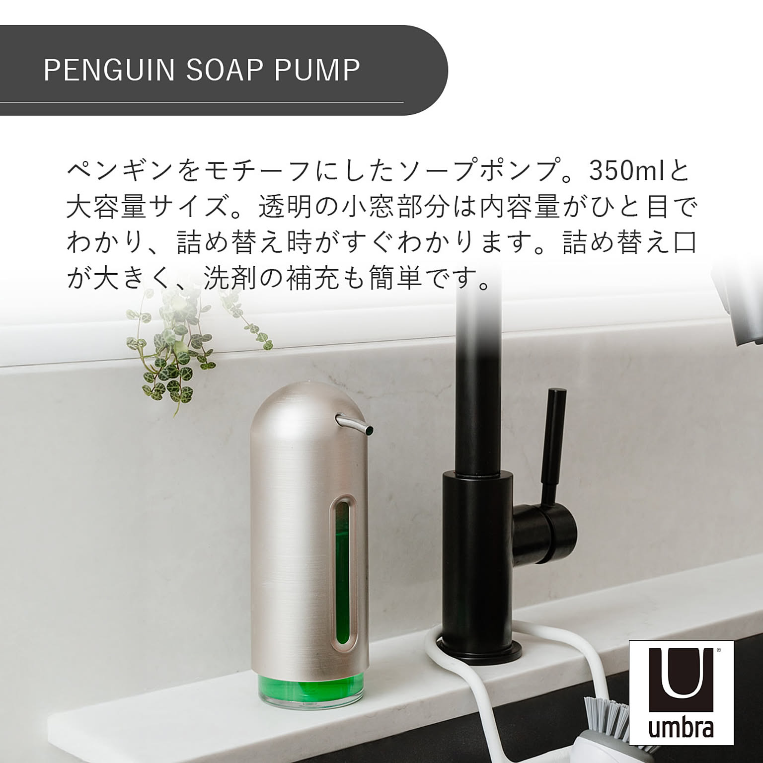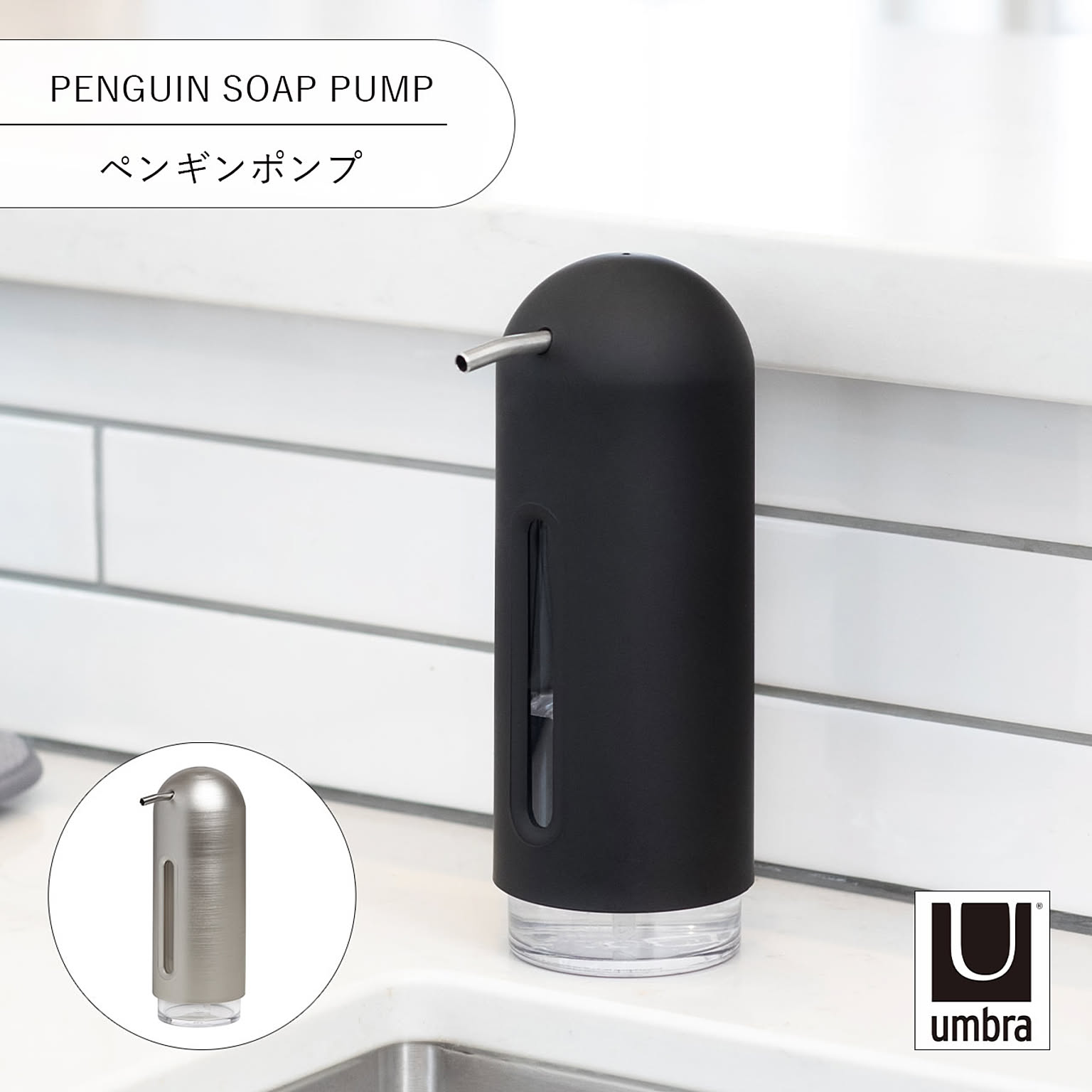 Umbra アンブラ ペンギンポンプ PENGUIN SOAP PUMP ディスペンサー ソープボトル 液体タイプ 詰め替え 容器 洗面所 キッチン アルコールディスペンサー