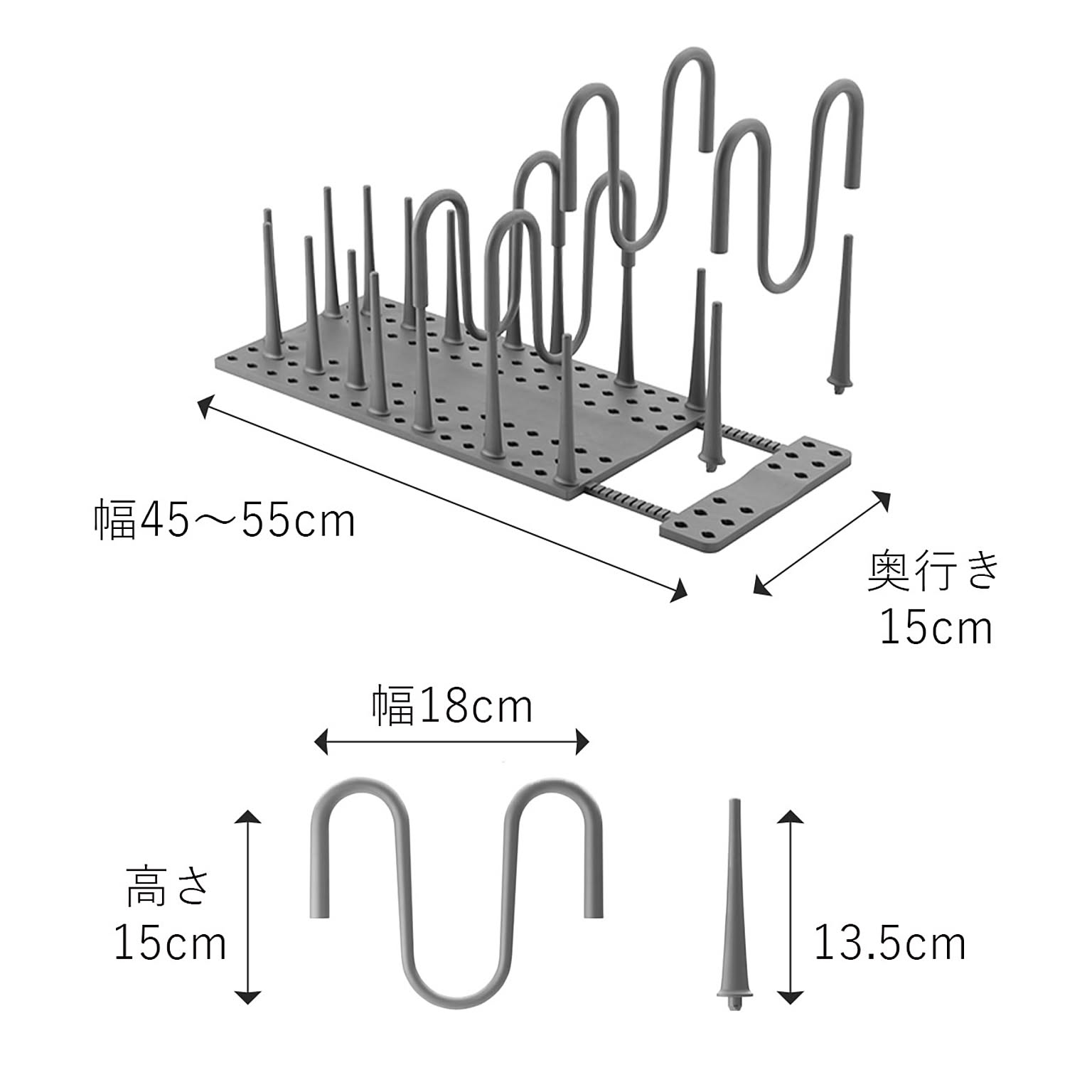 ベース:幅45~55cm×奥行き15cm ペグ:高さ13.5cm ペグ延長部:幅18cm×高さ15cm