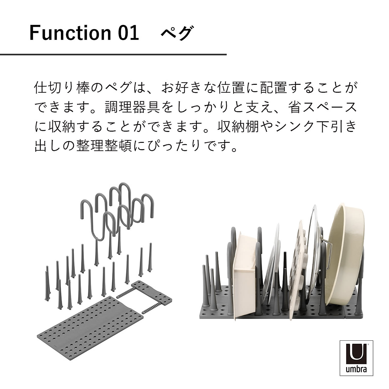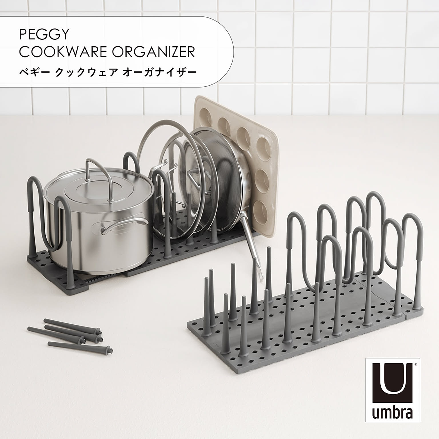 Umbra アンブラ ペギー クックウェア オーガナイザー PEGGY COOKWARE ORGANIZER キッチン収納 シンク下 食器棚 整理整頓 調理器具 立てて収納