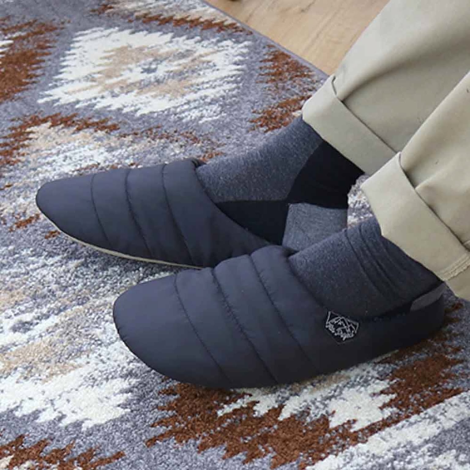 キルティング加工したダウン調生地とチェック柄のボアを組み合わせたアウトドア感あふれるスリッパです。 甲裏と中敷きはあったかボア素材で底付き感のないフカフカとした履き心地です。 織ネームもアクセントとなっており、アクティブなシーンに履きたくなるスリッパです。 ●商品サイズ(cm) 幅約26×奥行約32×高さ約8 ●商品重量 約0.1kg ●材質 インソール:チェックシープボア 底材:ポリウレタン ●Mサイズ 適用サイズ〜25cm ※洗濯不可