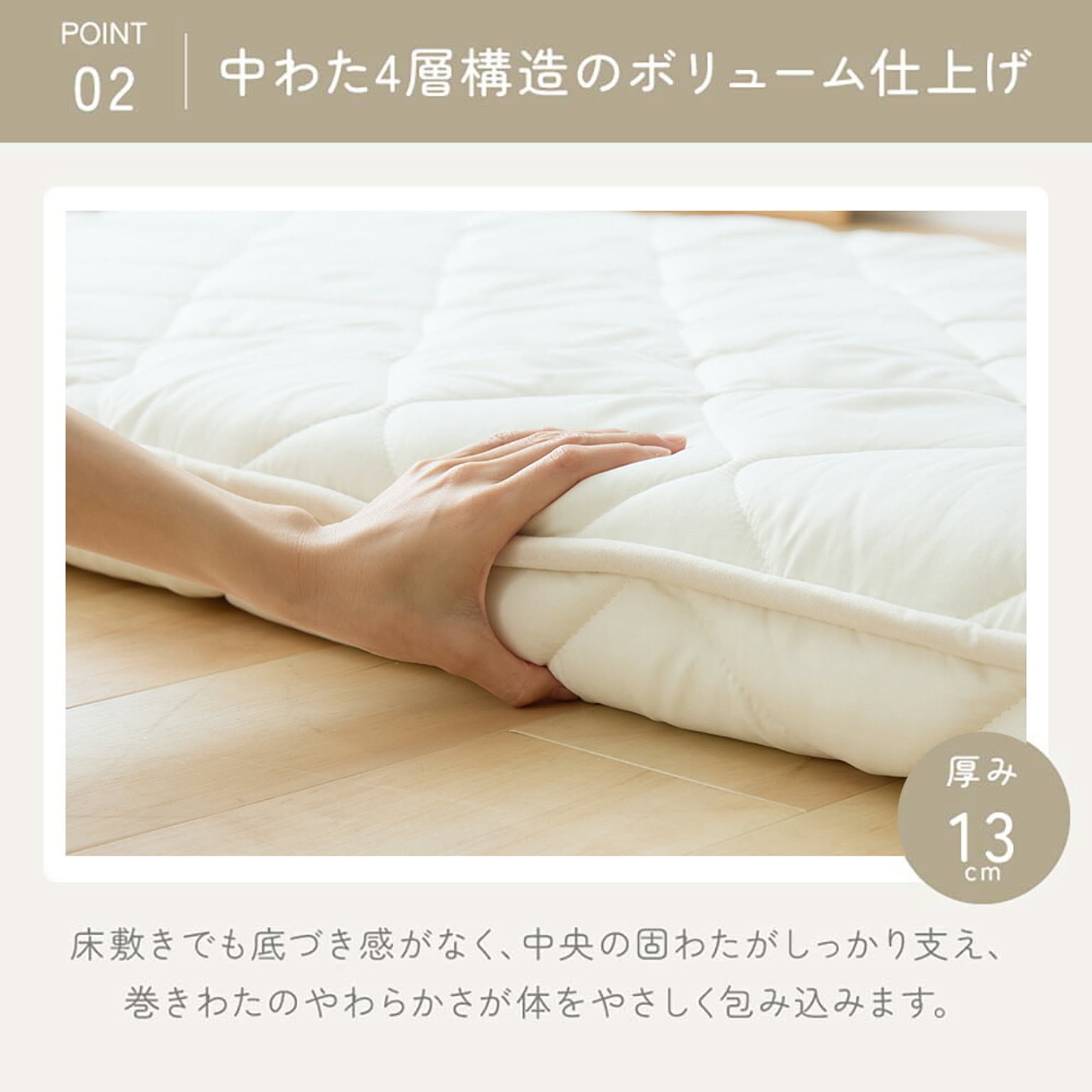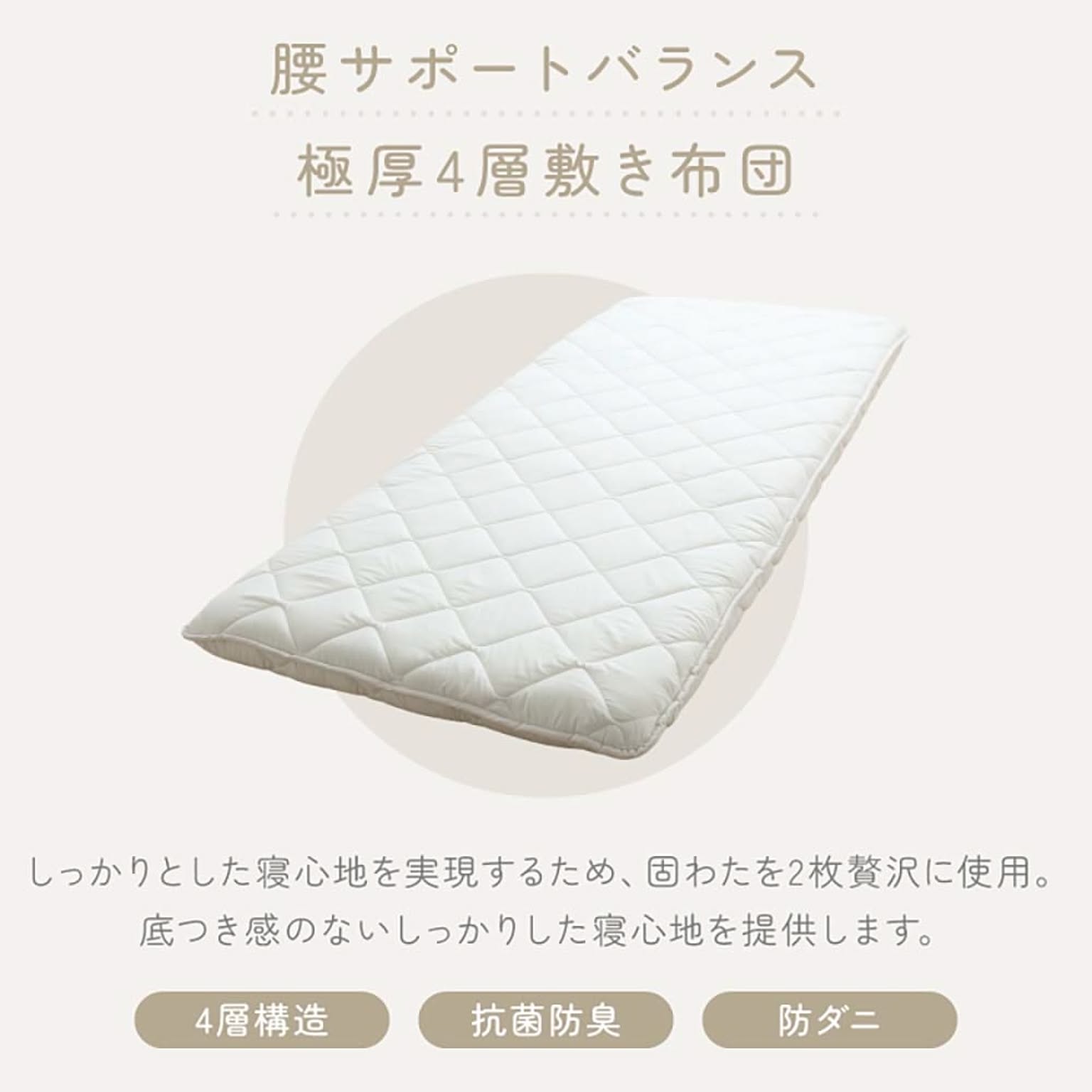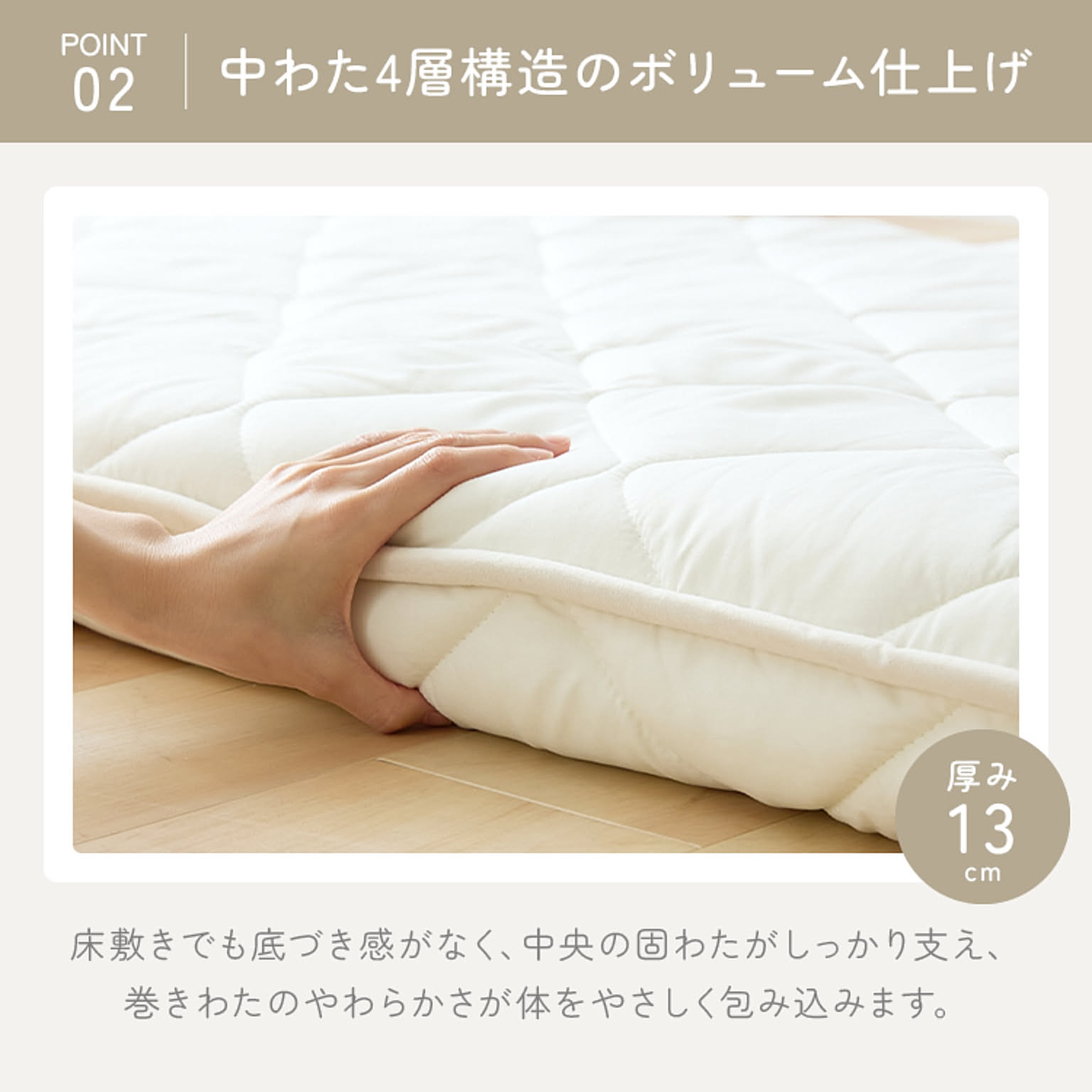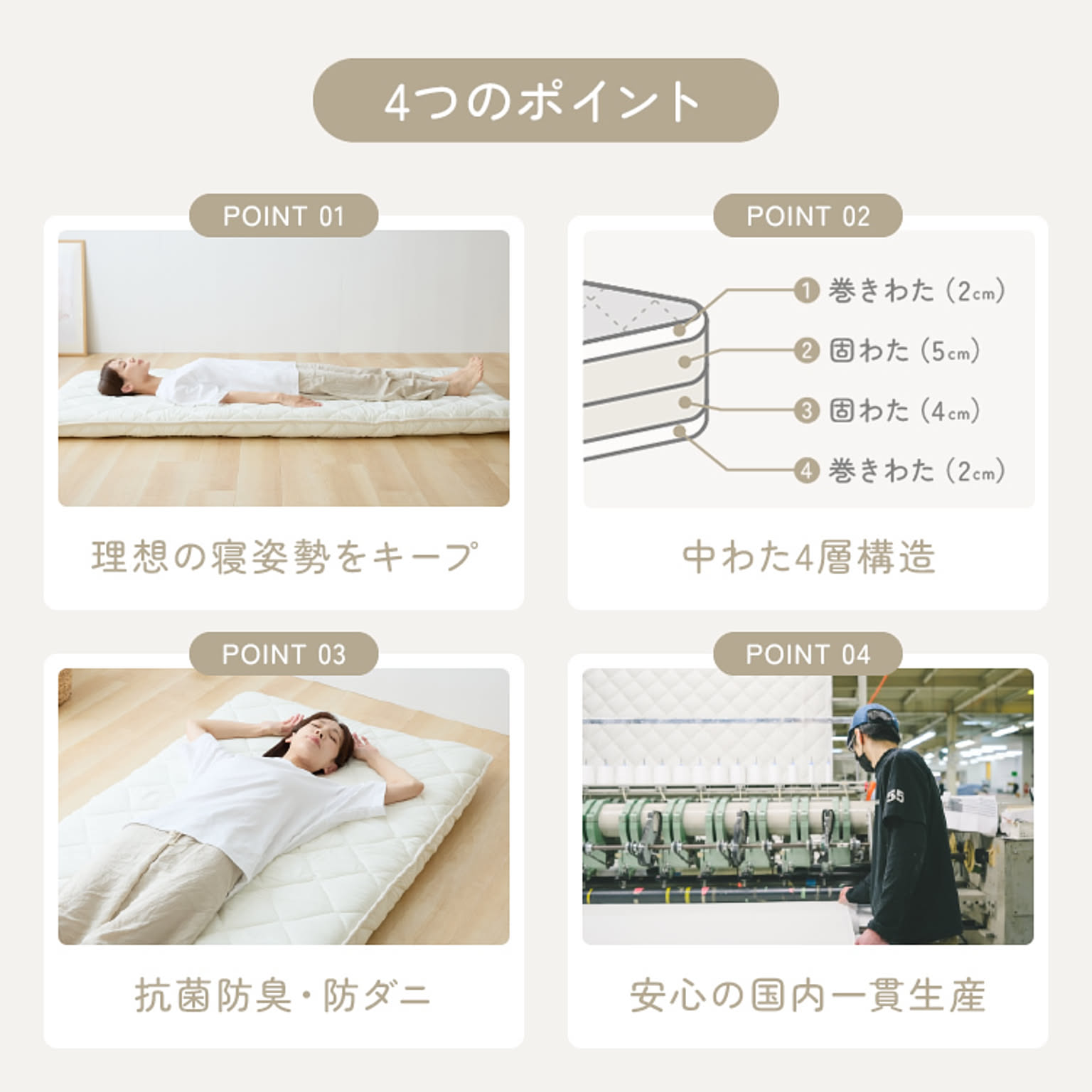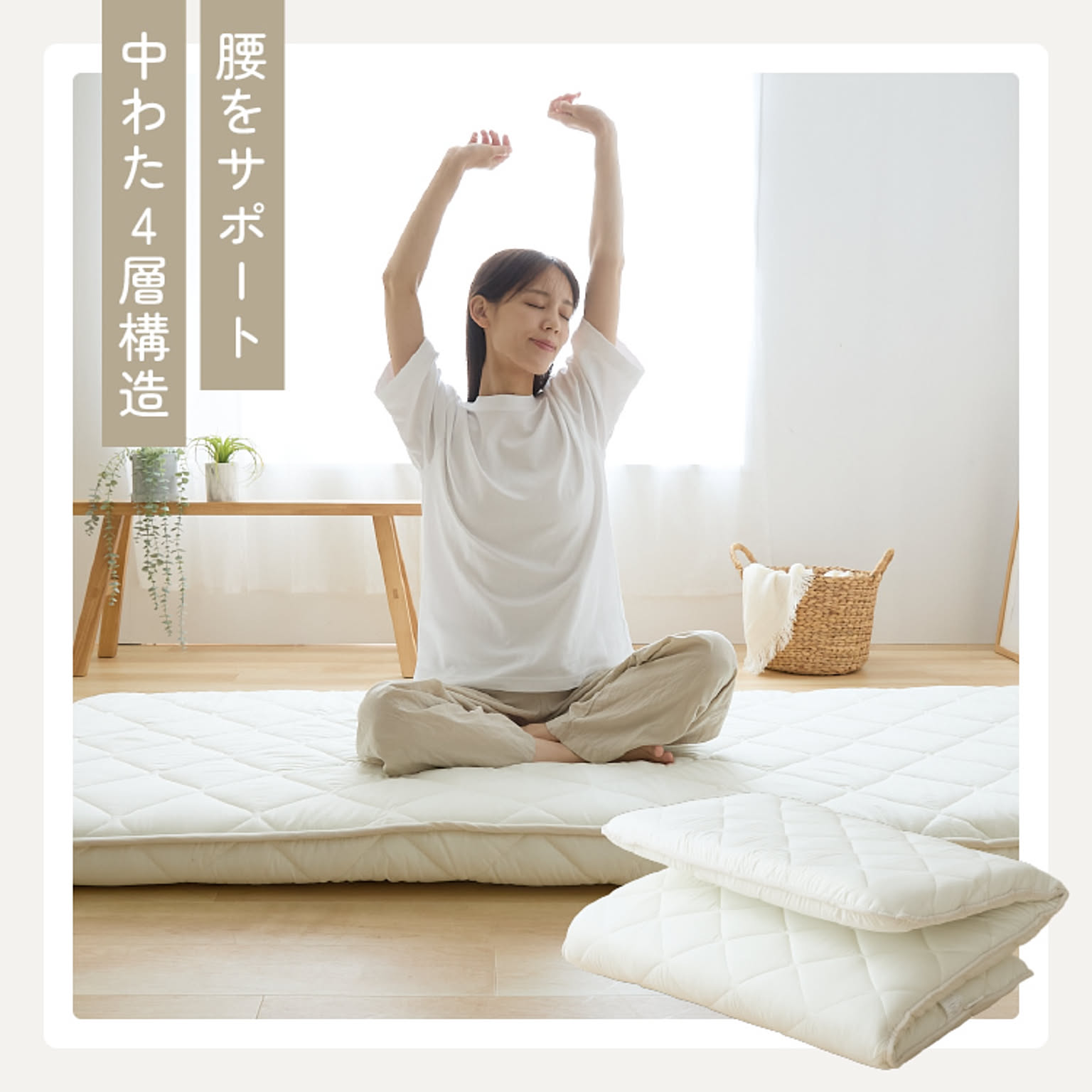 ふとんファクトリー 腰サポートバランス極厚四層敷き布団 SDアイボリー 【プラザセレクト】