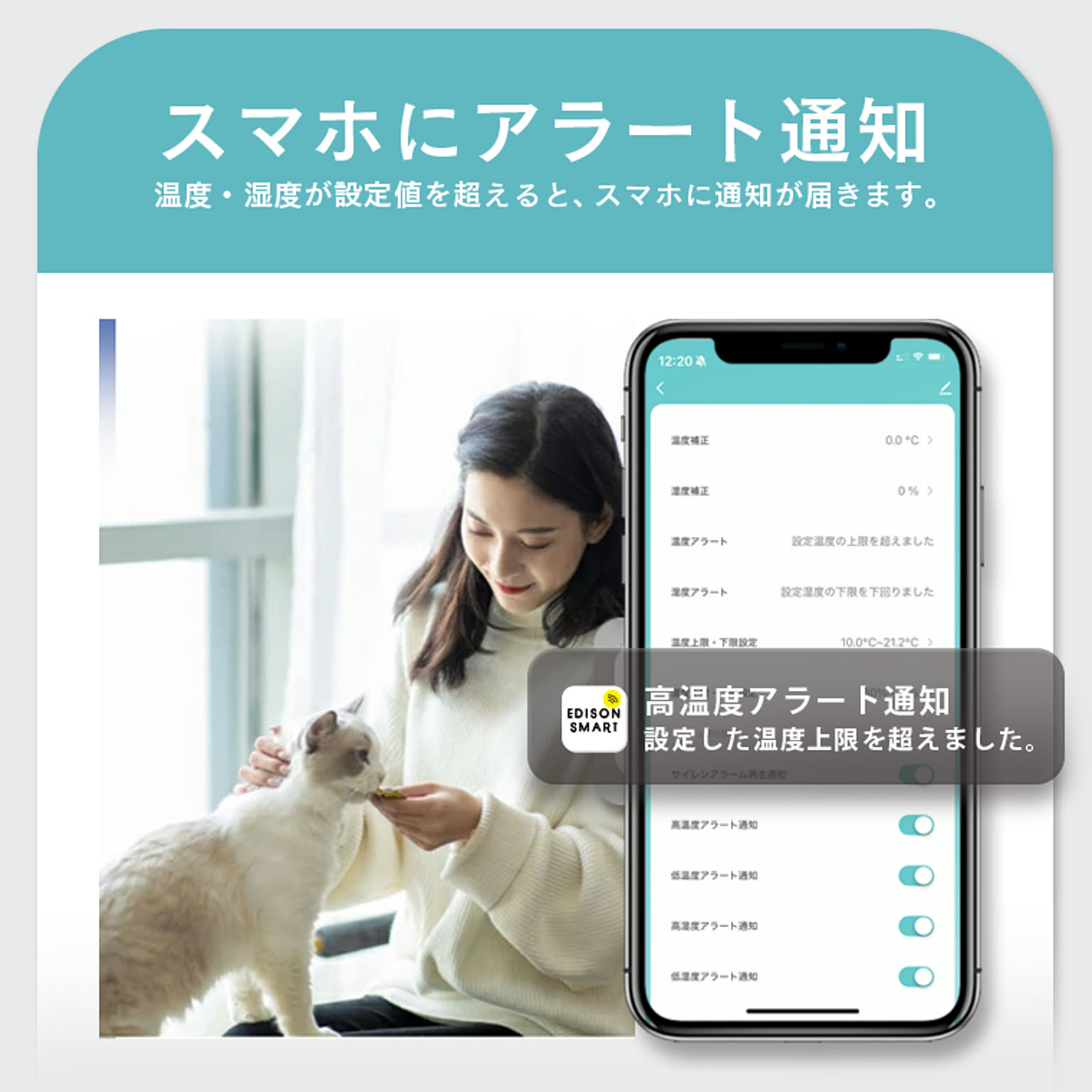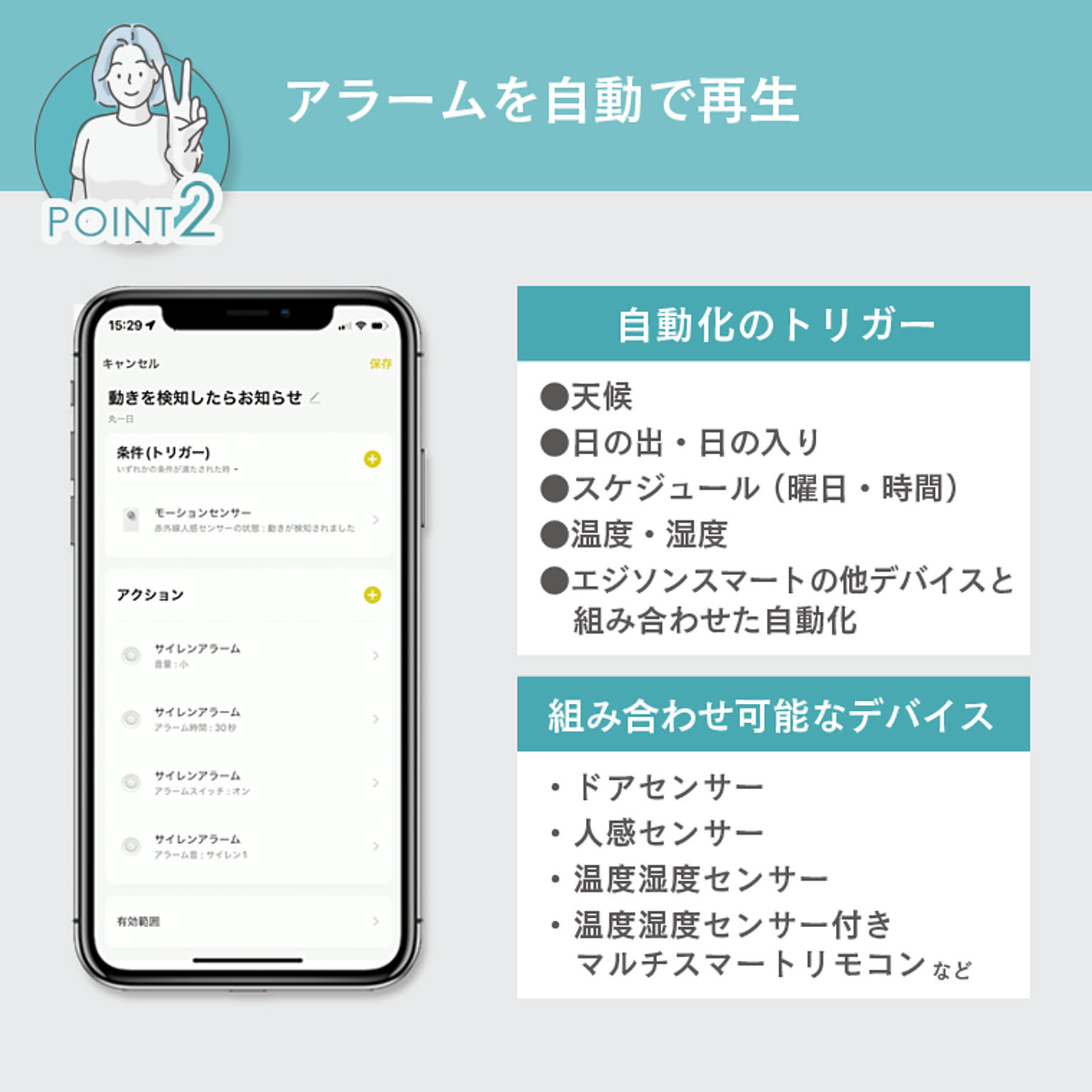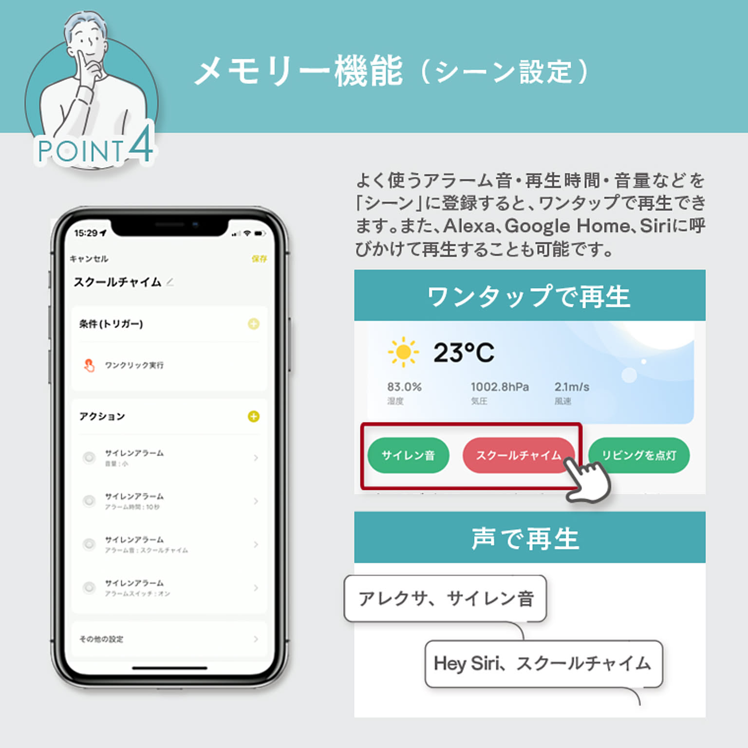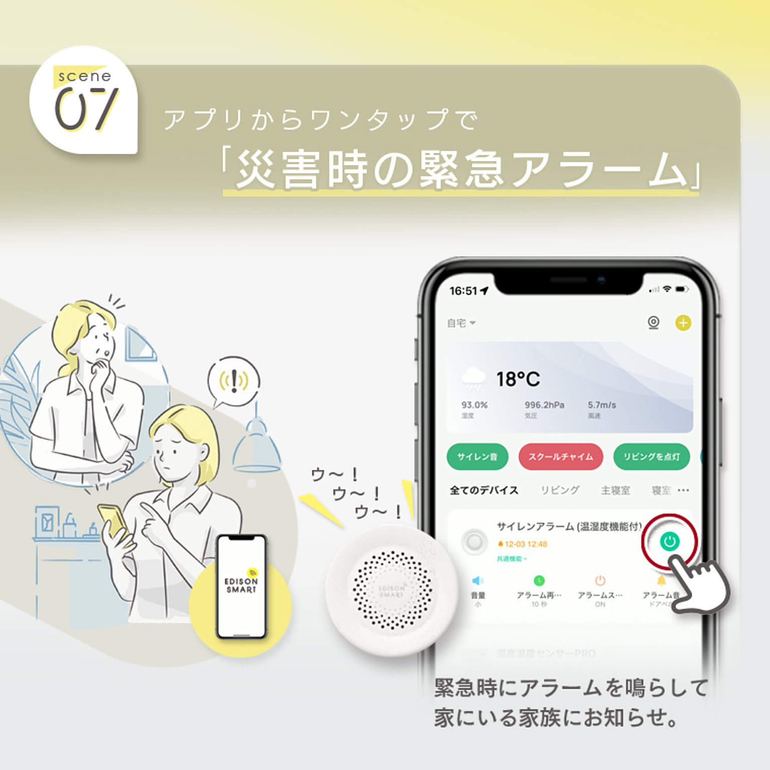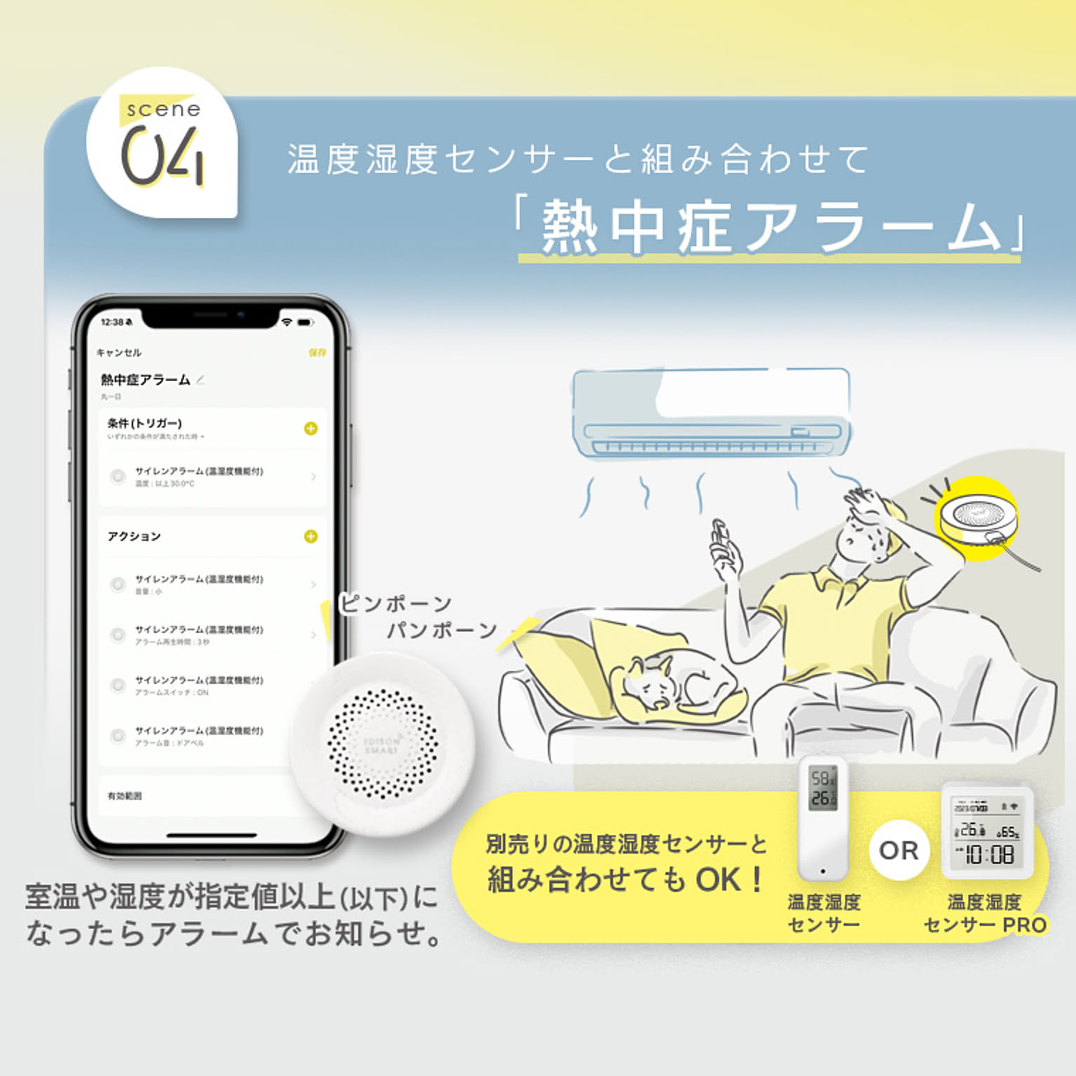 | 仕様 | ■電源・仕様 ・入力:DC5V/1A (Type-C) ・アラームの種類: 32種類 ・音量(10秒間平均値): 大)約91dB (MAX100dB) 中)約86dB 小)約60dB ・温度測定範囲:-20~60℃(測定精度: ±1℃) ・湿度測定範囲:0~100%(測定精度: ±5%) ■通信・ネットワーク ・通信方法:Wi-Fi ・使用周波数帯域:2.4GHz帯(5GHz帯では接続できません) ・準拠規格:IEEE 802.11b/g/n ・暗号化形式:WPA/WPA2 ・対応OS:iOS11.0以上/Android12.0以上 ・スマートスピーカー:Amazon Echo(Amazon Alexa)/Google Home(Google Assistant)対応 ・メーカー保証期間:1年間 ※IPv4にのみ対応(ネットワーク環境やWi-FiルーターがIPv6にしか対応していない場合はデバイス登録ができません。) 本製品は、国内電波法に基づく特定無線設備の技術基準適合証明などを受けた製品です。 |