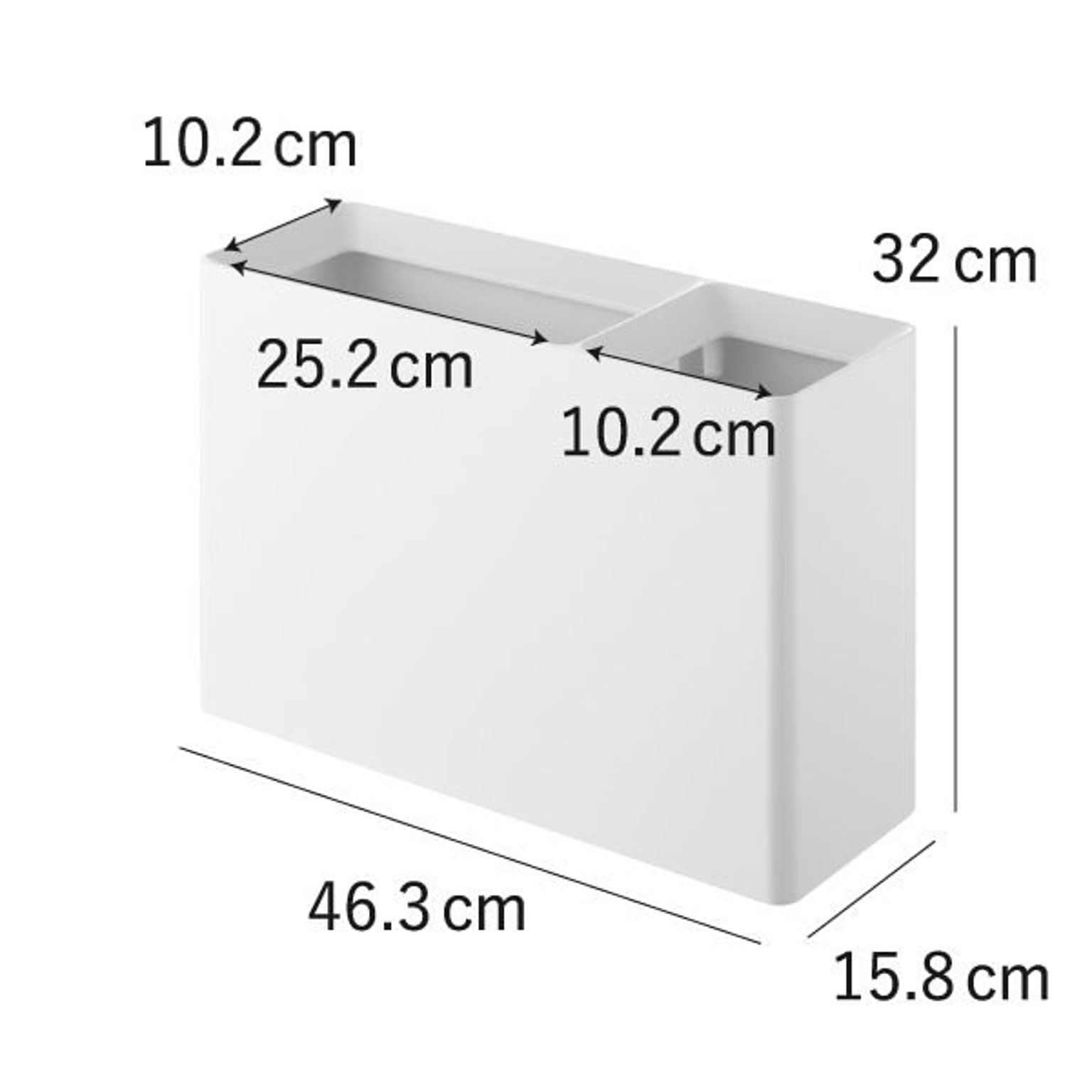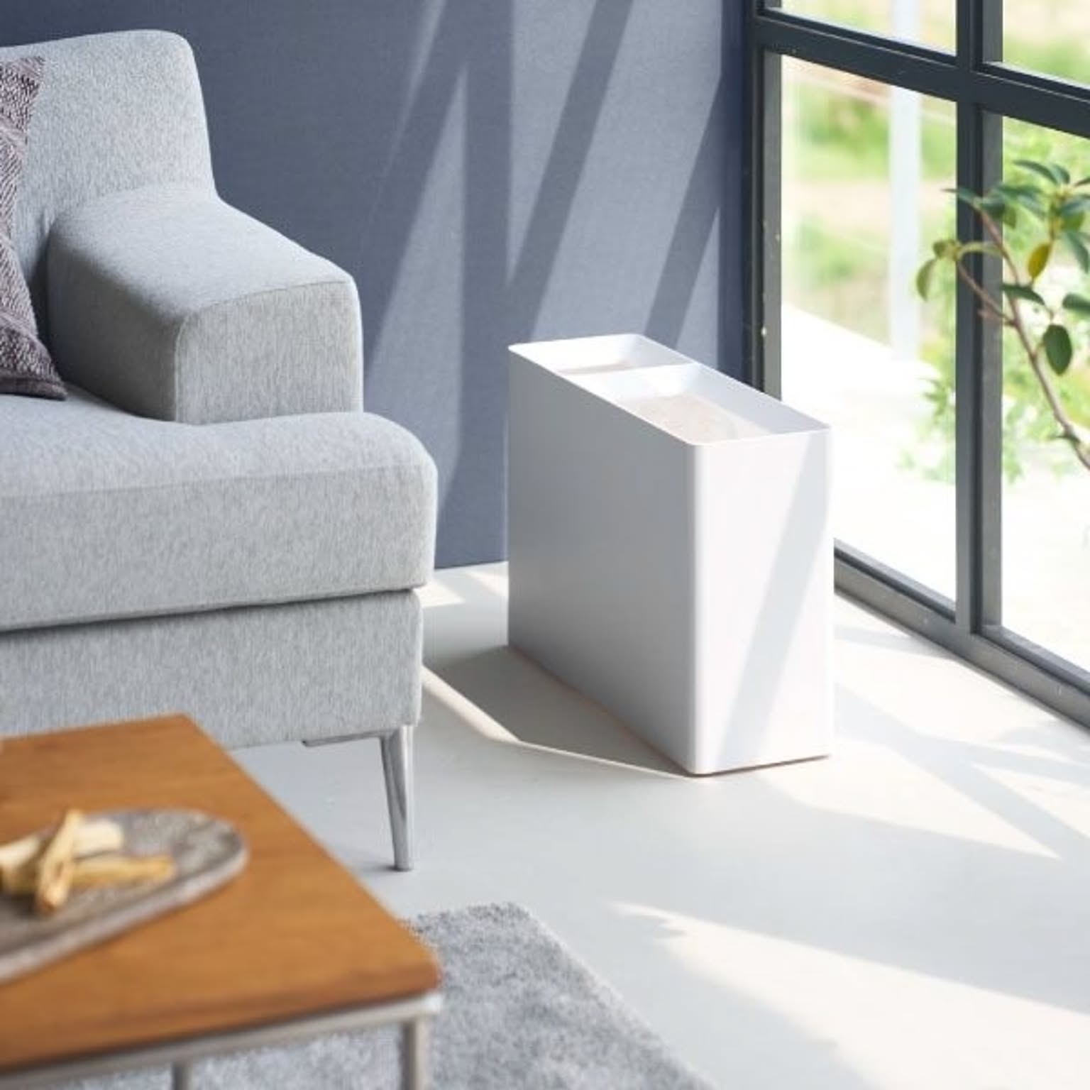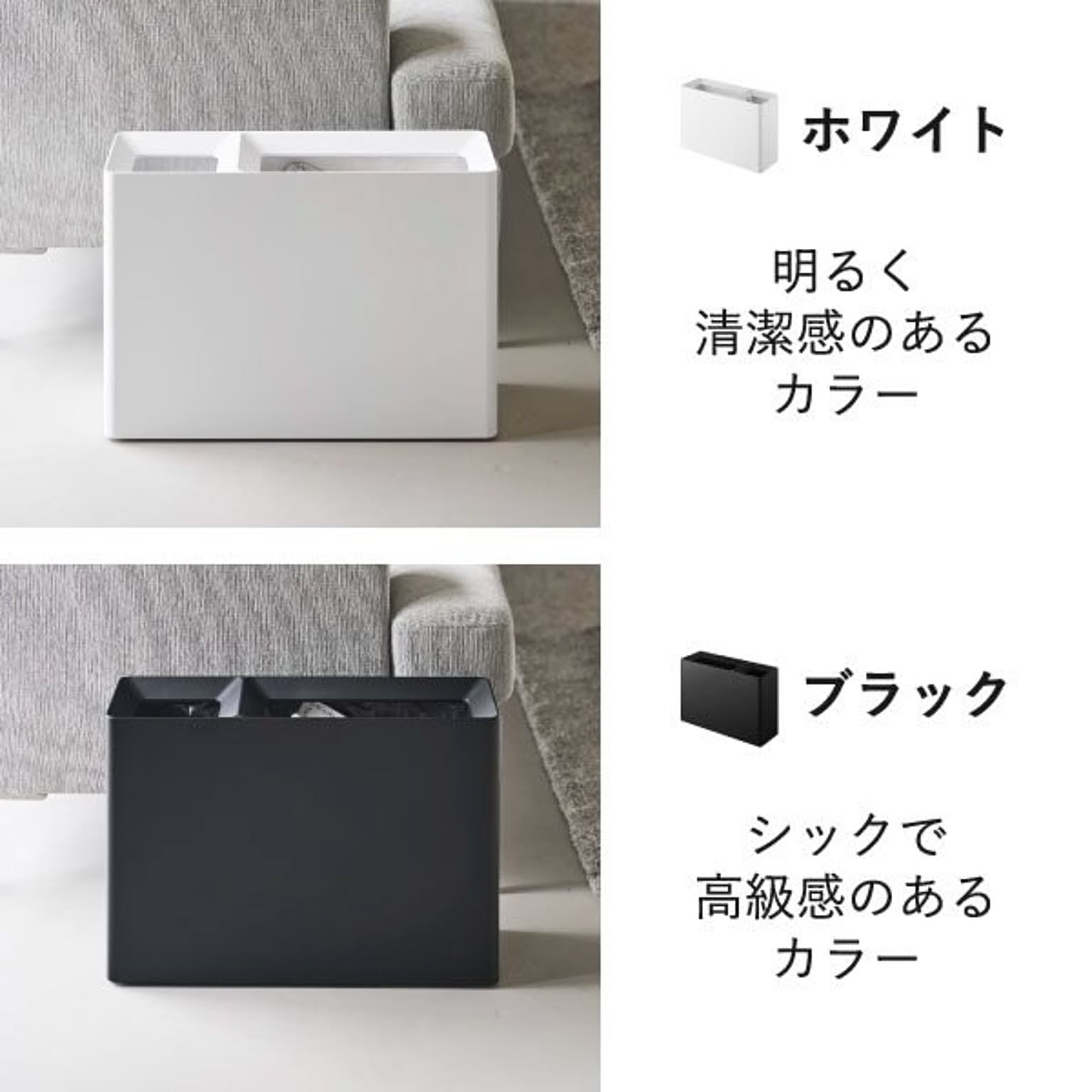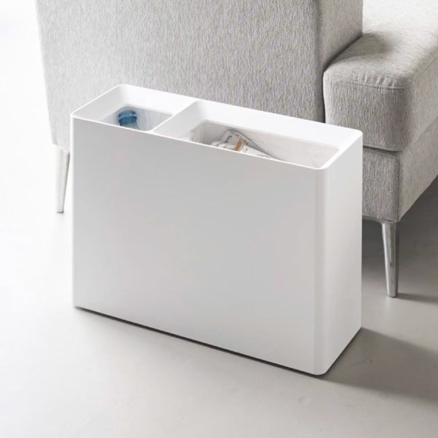 1つで2分別できるtowerシリーズのスリムでおしゃれな分別ゴミ箱です。 無駄がなくおしゃれなデザインが、リビングや寝室など、様々なインテリアに溶け込んでくれます。 分別ゴミ箱の開口部は小と大に分かれているので、分別しながらゴミ捨て可能。 小にはペットボトルや缶、大には通常の燃えるゴミ、とそれぞれ仕分けることができます。 ポリ袋をゴミ箱本体に取り付けて、上からカバーを被せるだけの簡単セット。 本体にはスリットが入っているので、楽に袋を引っ掛けることができます。 奥行きがスリムなゴミ箱だから、ソファやデスク横などのちょっとした隙間に設置可能。 分別ゴミ箱をすっぽり覆うカバーが付いているので、中の袋を隠して生活感をオフ。 フタなしタイプの分別ゴミ箱だから、捨てる動作がワンアクションで完了できます。 分別ゴミ箱にはハンドルが付いていて、ゴミを集める際もスムーズに持ち運べます。 お手入れ簡単なプラスチック製なので、いつも清潔な状態に保てます。 スタイリッシュでおしゃれなデザインのゴミ箱だから、ご家庭だけでなくホテルでも活躍。 宿泊客が容易にゴミを分別できて、ホテル側の作業効率もアップします。 スーパーやコンビニの弁当容器もストレスなく捨てることができて便利。 おしゃれな分別ゴミ箱は、ホワイトとブラックの2色からお選びいただけます。 いつもの生活に便利な分別ゴミ箱を取り入れて、よりおしゃれな空間に。