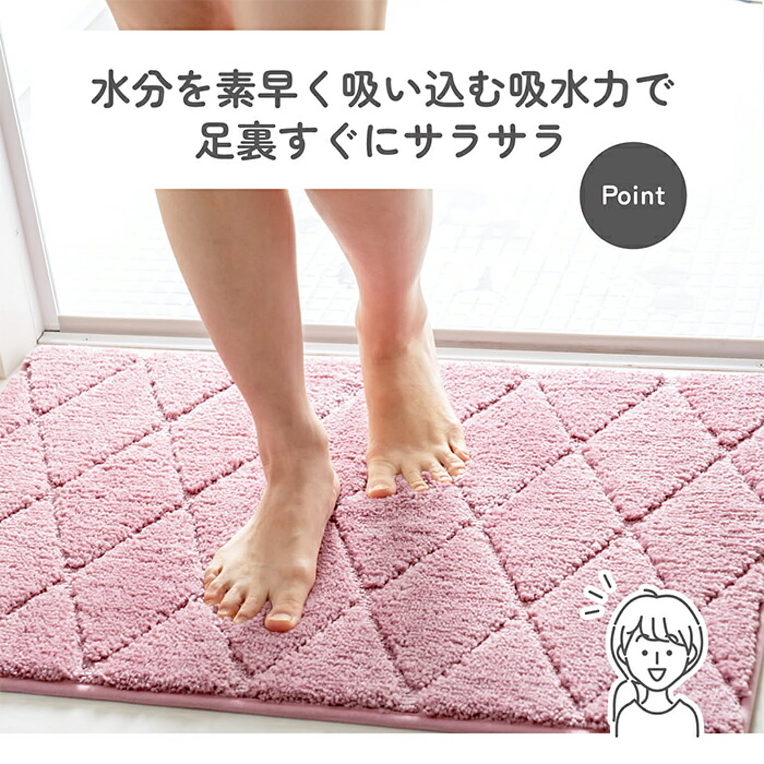 洗濯機で丸洗いができるのでお手入れが簡単に。すべり止め性能に優れたTPR素材を使用しています。抗菌基布使用でいつも清潔。