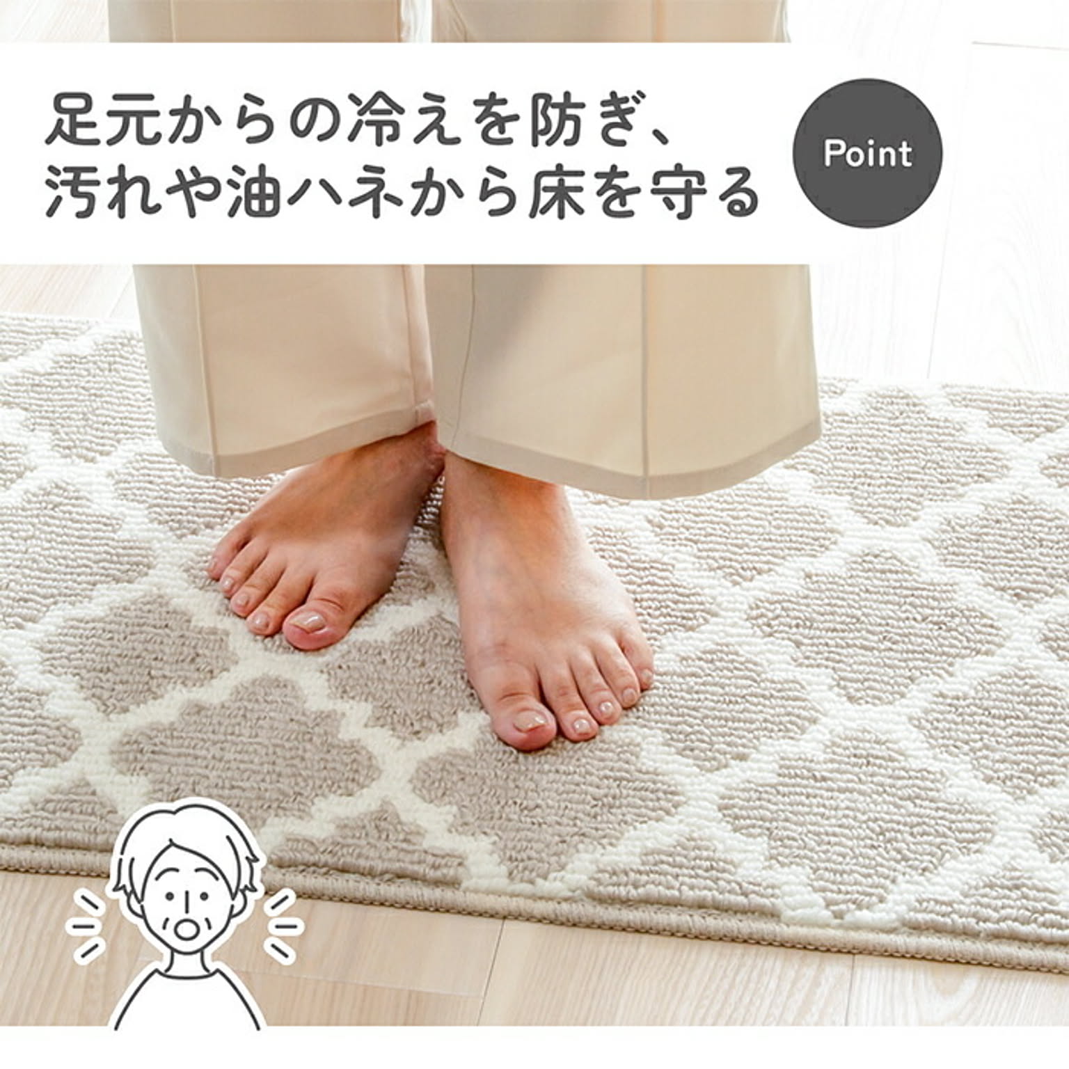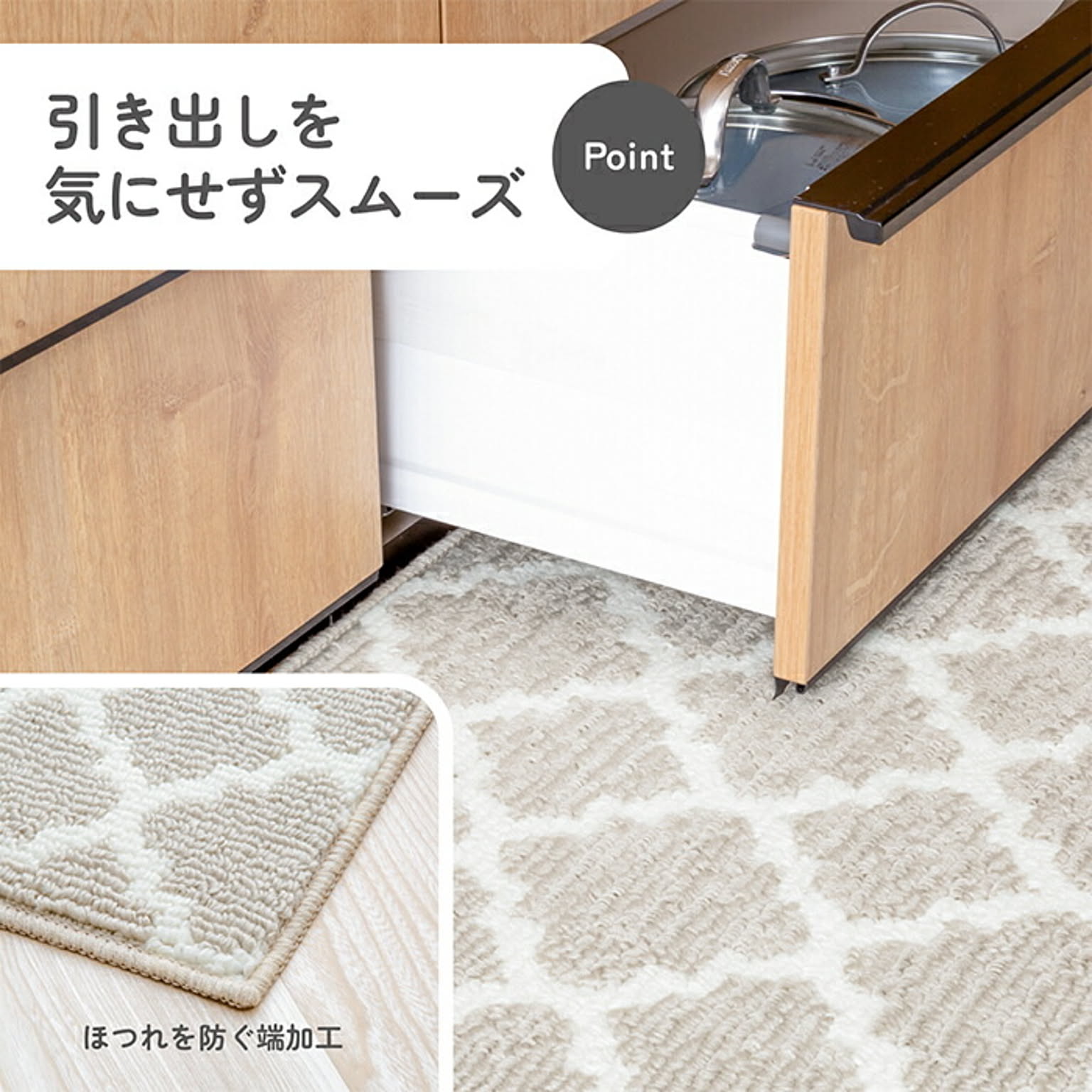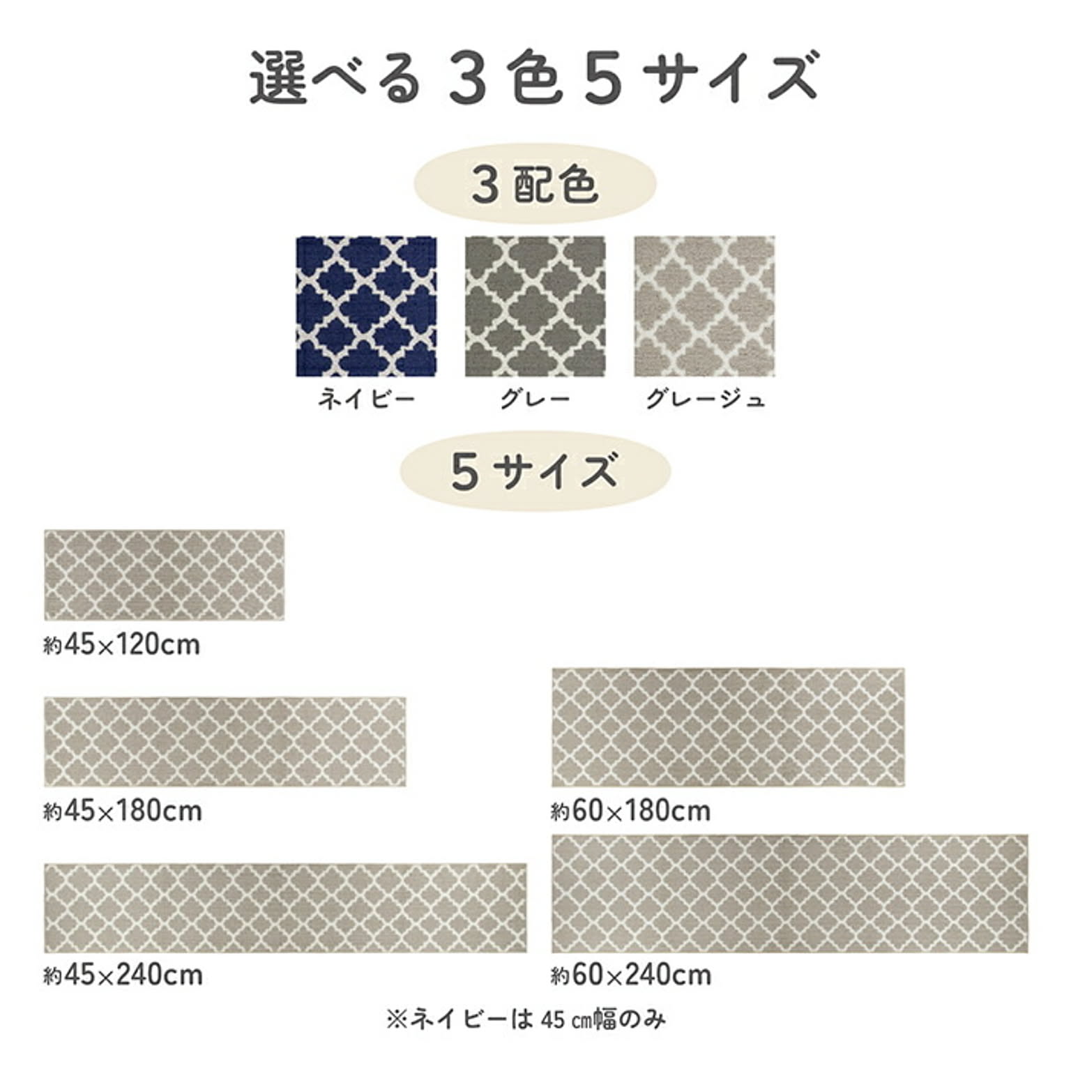 どんなキッチンにもなじむ、シンプルデザインのモロッカンキッチンマット。使いやすい定番サイズと広々使えるワイドタイプがあります(ネイビーは定番サイズのみ)。毎日のキッチンにさりげないおしゃれをプラスしませんか。