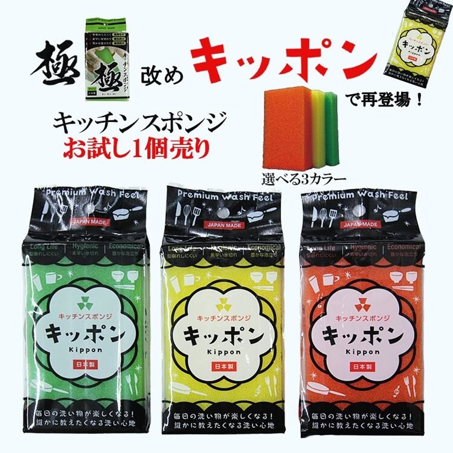 ◎極キッチンスポンジ 1個売り お試し キッポン キッチン用 3カラー 長持ち 衛生的 経済的 日本製 泡立ち 使いやすい キッチンスポンジ 極みキッチンスポンジ 極みスポンジ キッポン