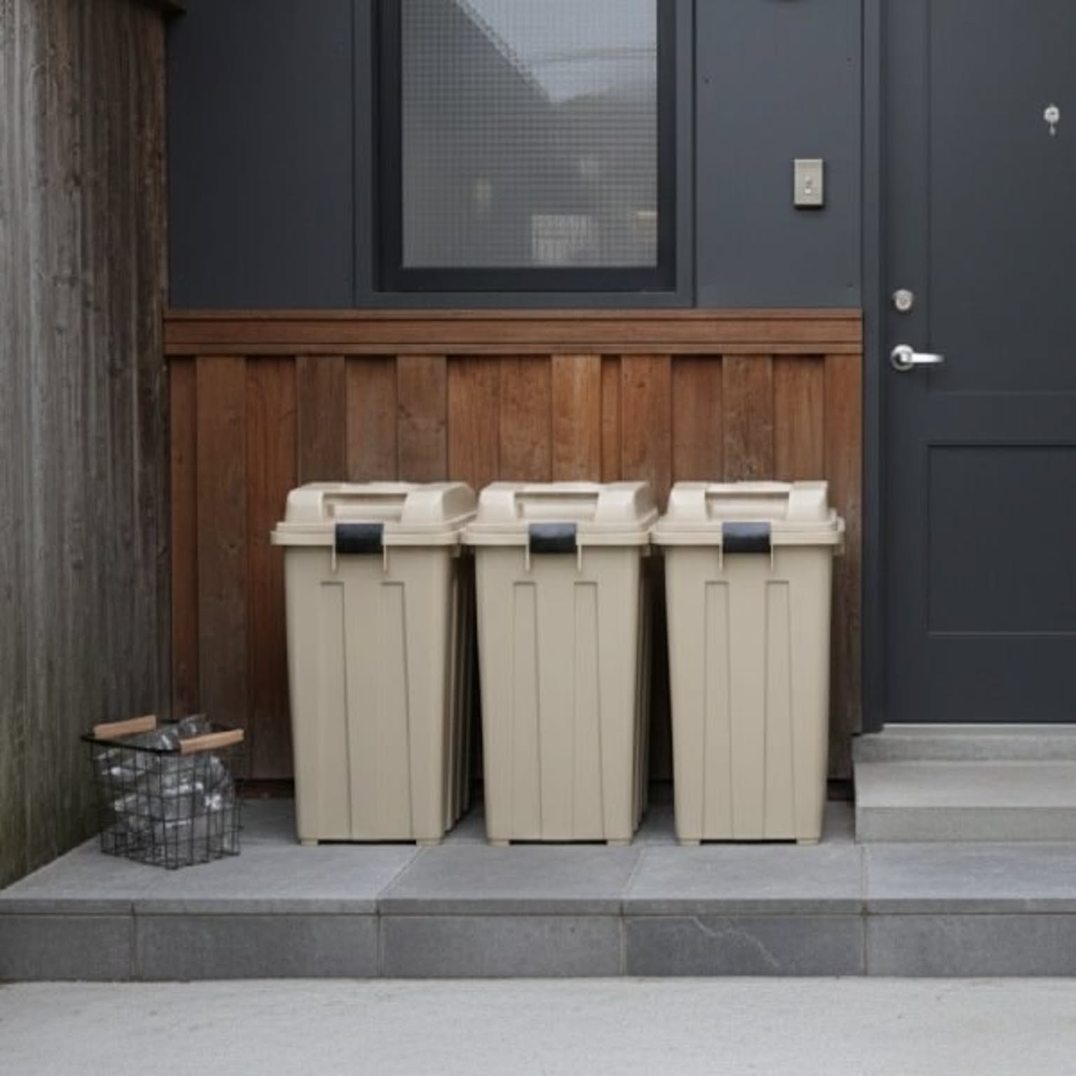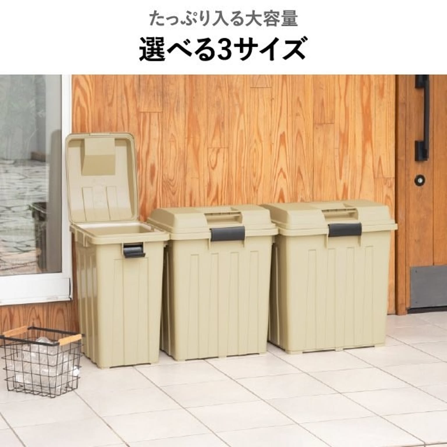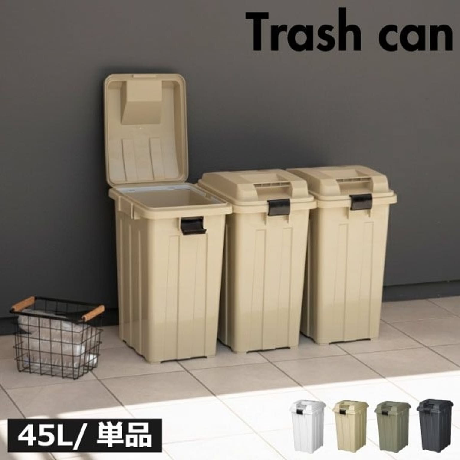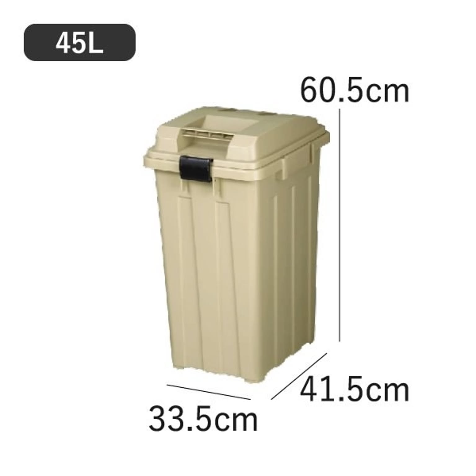 丈夫な形状で屋外に最適なゴミ箱です。凹凸のある頑丈なボディと、雨水がたまりにくい形状のふたにより、屋外でも安心して使用できます。たっぷり入る大容量設計で、屋外で出るゴミもまとめて管理できる大容量ゴミ箱です。使う場所やゴミの量に合わせて選べるため、屋外用ゴミ箱として無駄なく使えます。45Lは設置しやすく、分別用や少量のゴミ管理に便利なサイズ。ふたはロック可能で、カラスなどのイタズラや強風からもしっかりガード。ゴミ箱としてだけでなく、ガーデニング用品やアウトドア用品などの収納にも対応。大容量なので収納力があり、ゴミ箱以外の使い方ができるのも魅力です。屋外の景観に馴染むおしゃれなアースカラーを採用。おしゃれなゴミ箱だから、屋外用でも生活感を抑えて設置できます。ゴミ袋を固定できる袋止め付きで、大容量ゴミ箱でも袋がズレにくく見た目もすっきり。ガバッと大きく開くふたで、大容量のゴミもラクに捨てられます。ふたは取り外し可能なので、お手入れも簡単。清潔に保ちやすい屋外用ゴミ箱で、おしゃれさと実用性を兼ね備えた大容量ゴミ箱です。