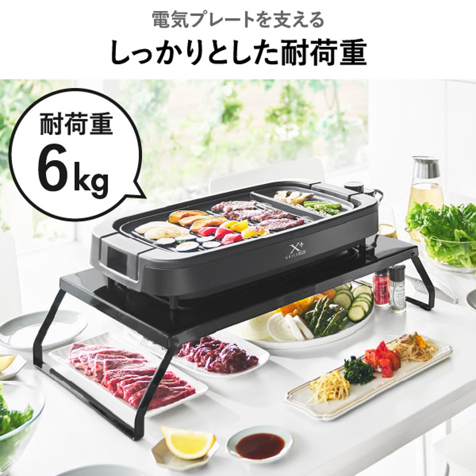 耐荷重は約6kgと、ホットプレートをしっかり支える頑丈なつくりです。