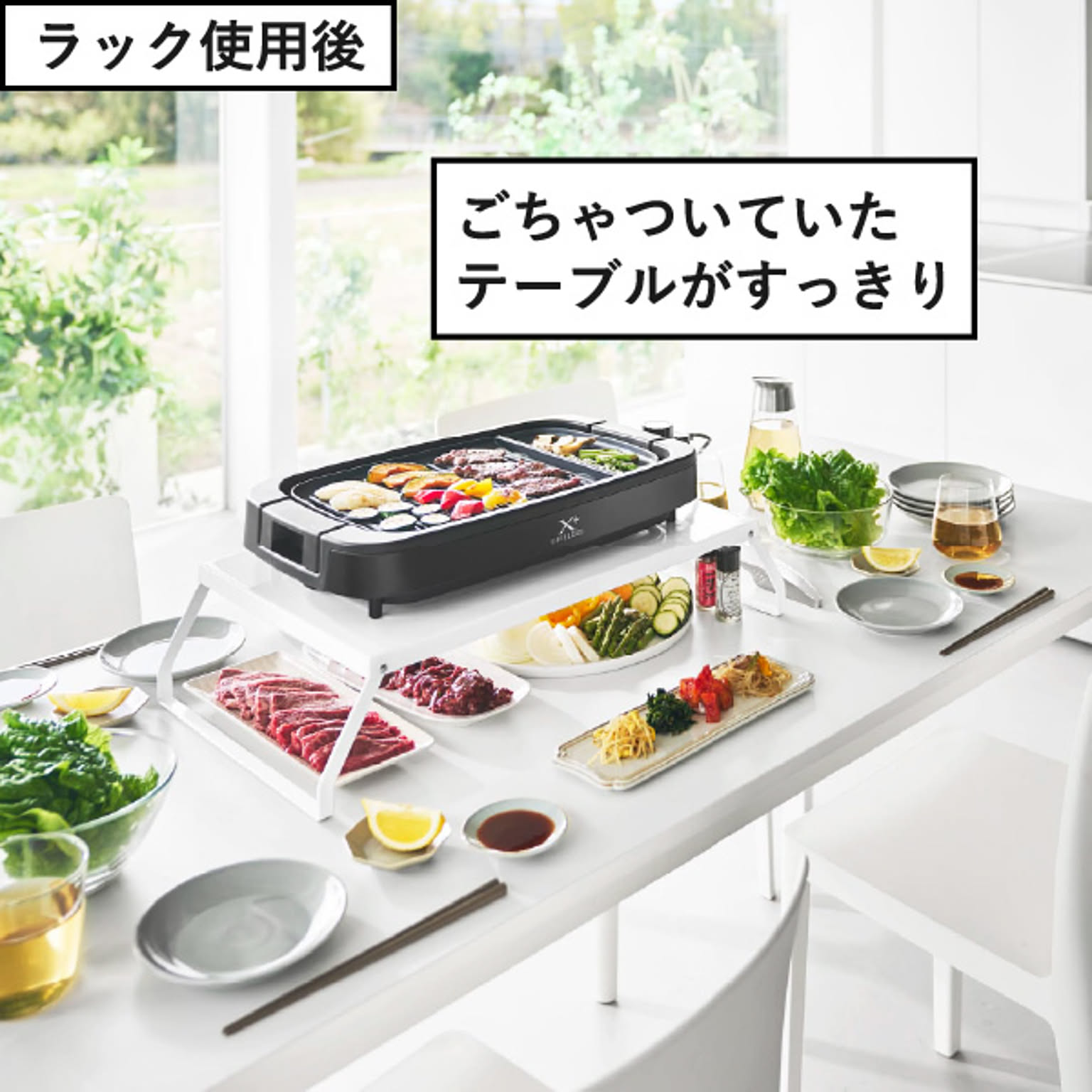 焼肉のときにごちゃつきがちな卓上がすっきり片付き、食事の時間を快適に楽しめます。